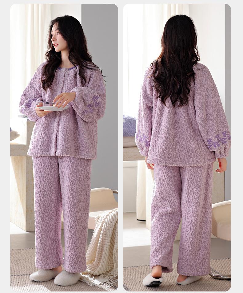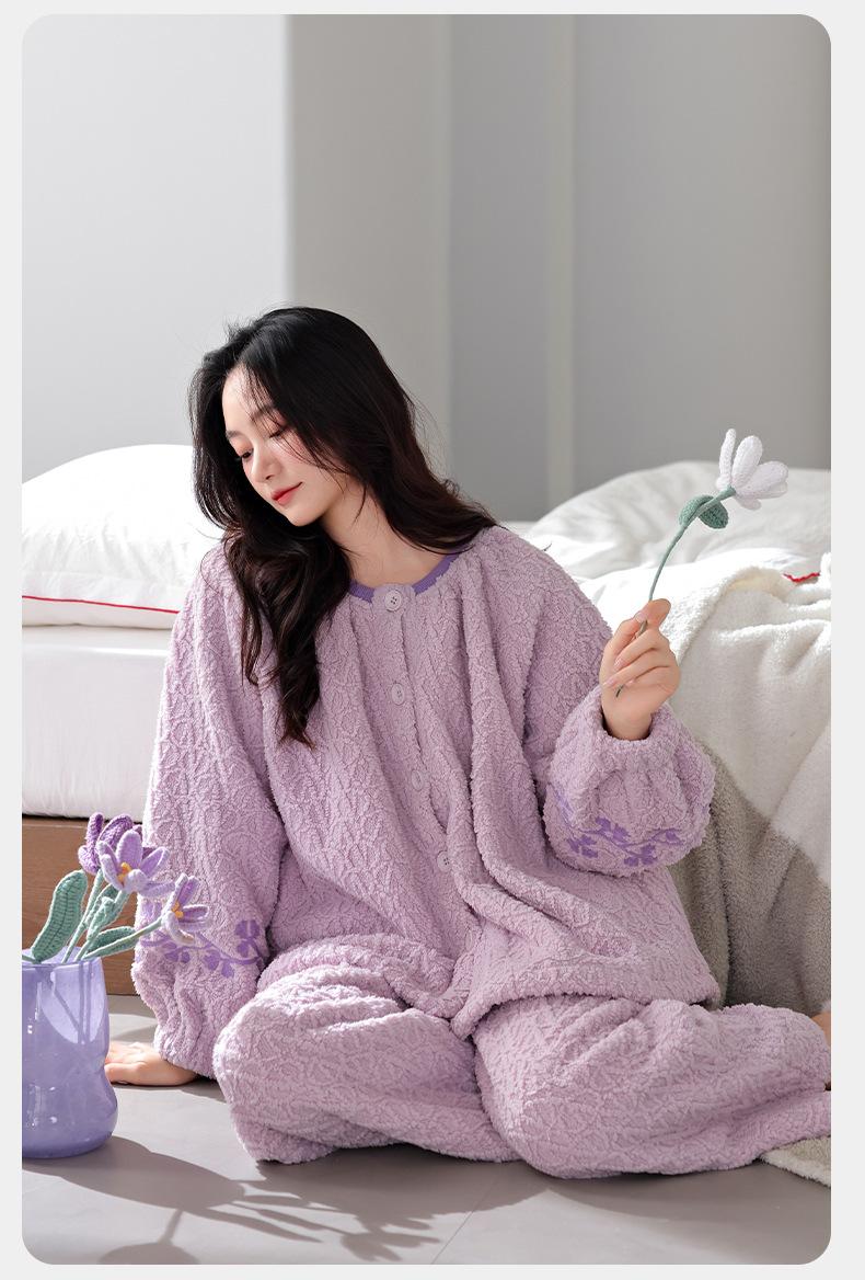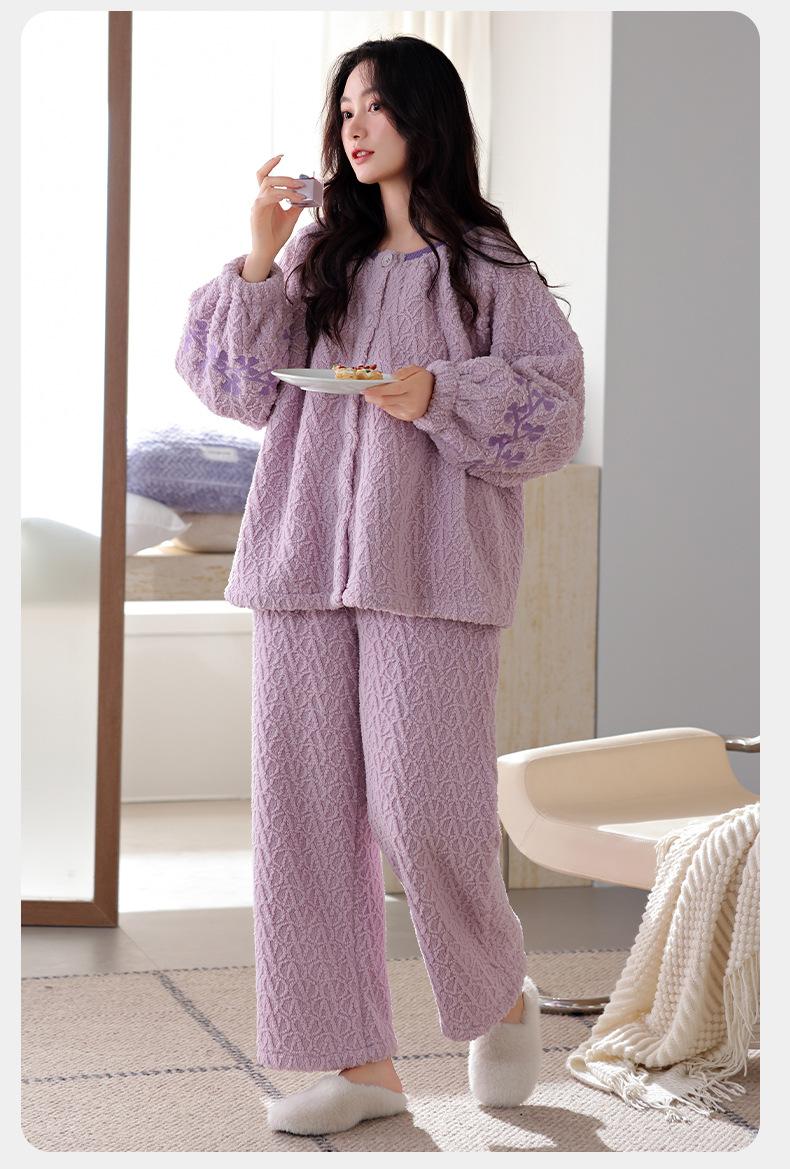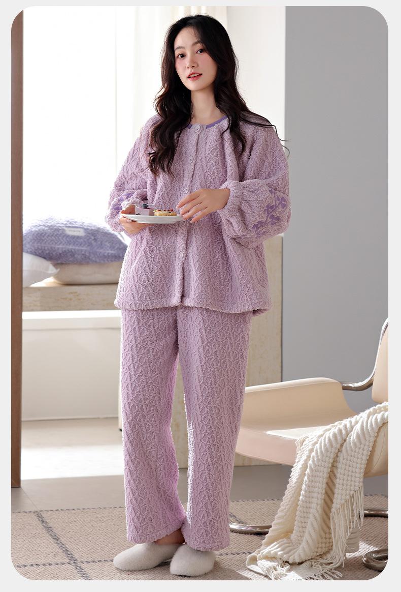 Pijama de terciopelo coral para mujer, de invierno, grueso, forrado con vellón, cálido, esponjoso, dulce princesa, franela, ropa para el hogar.