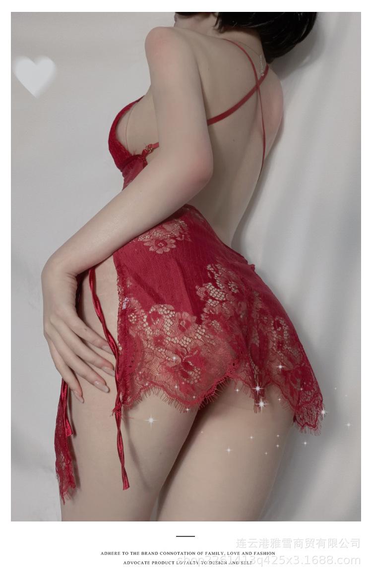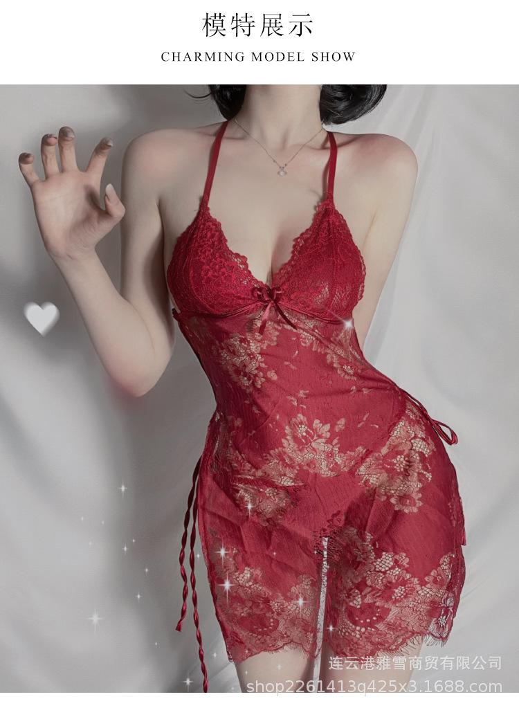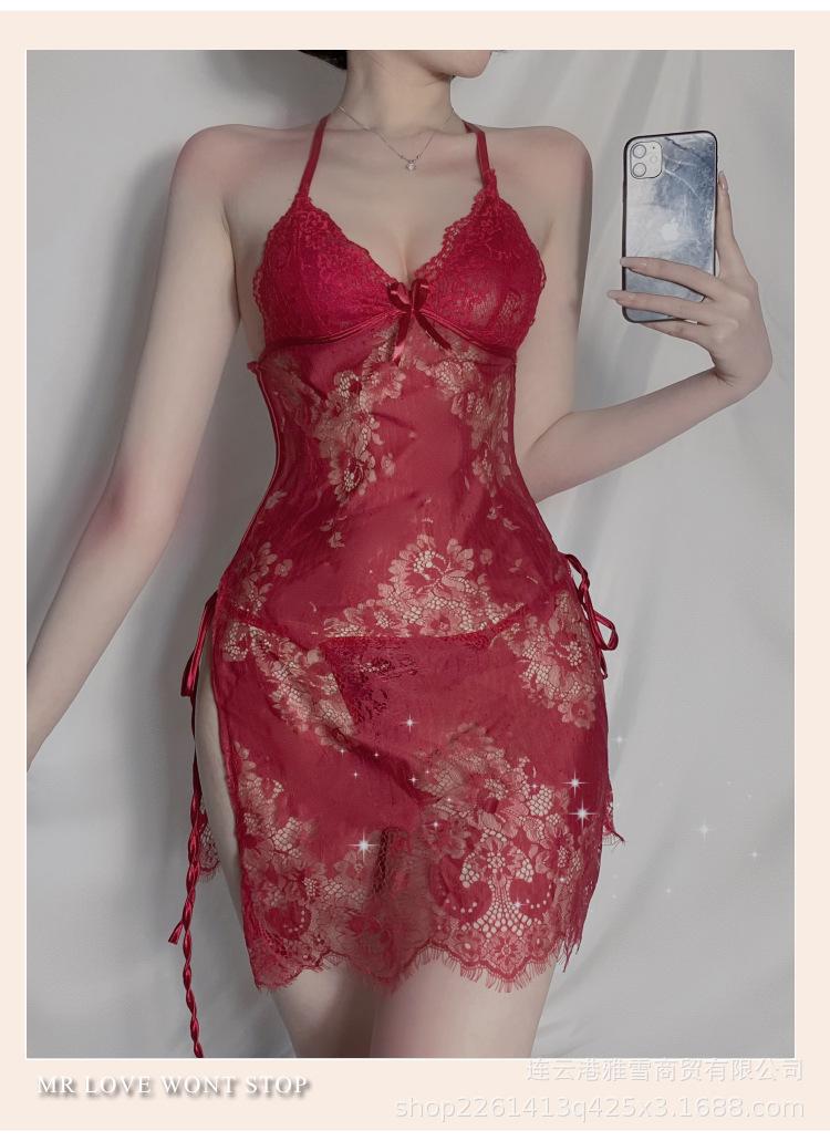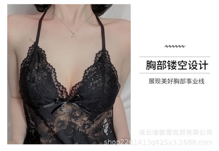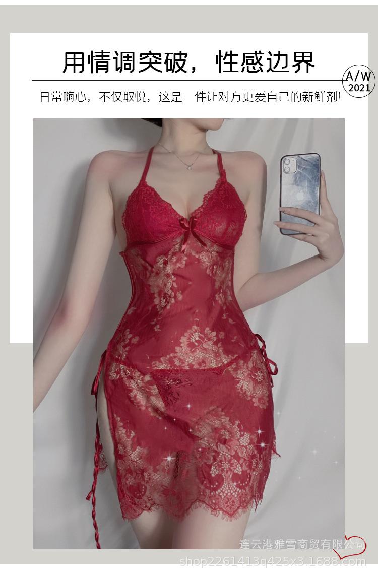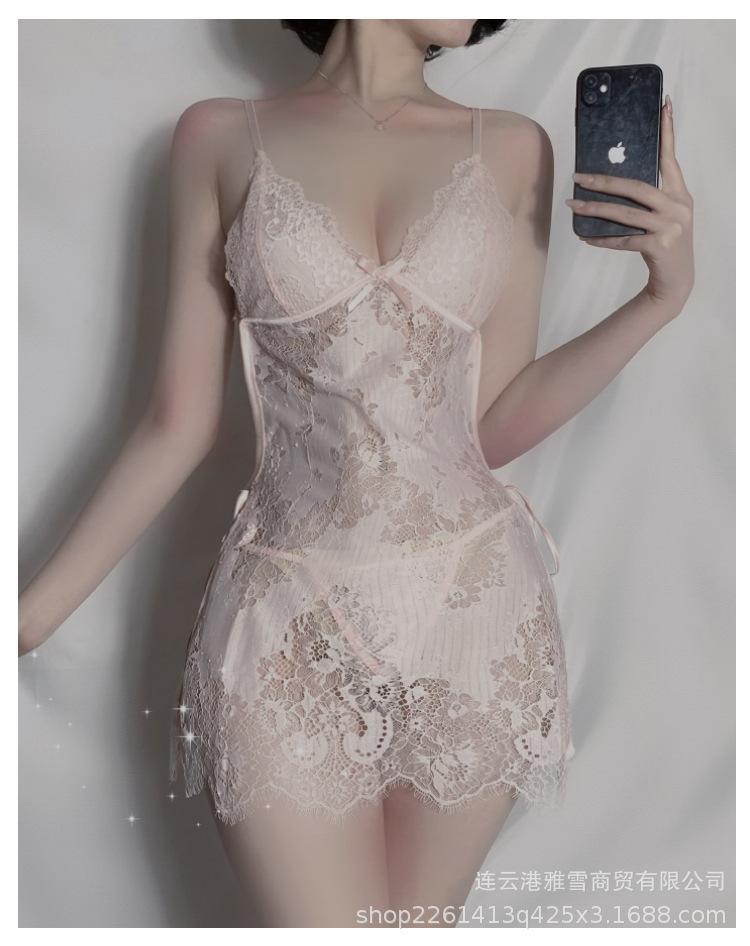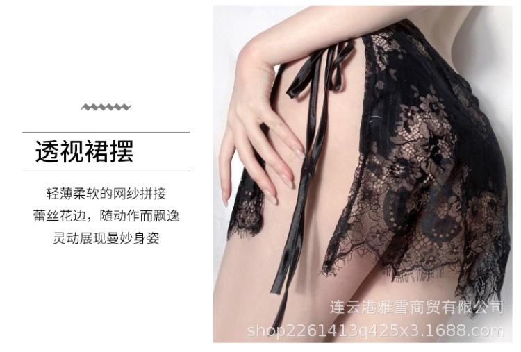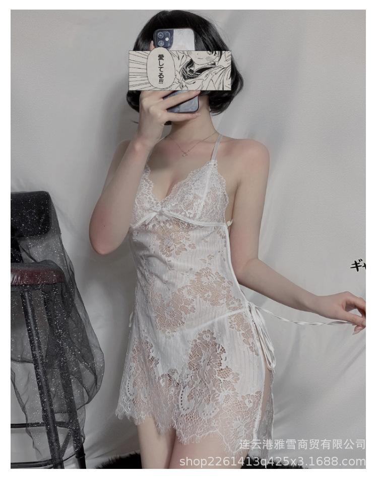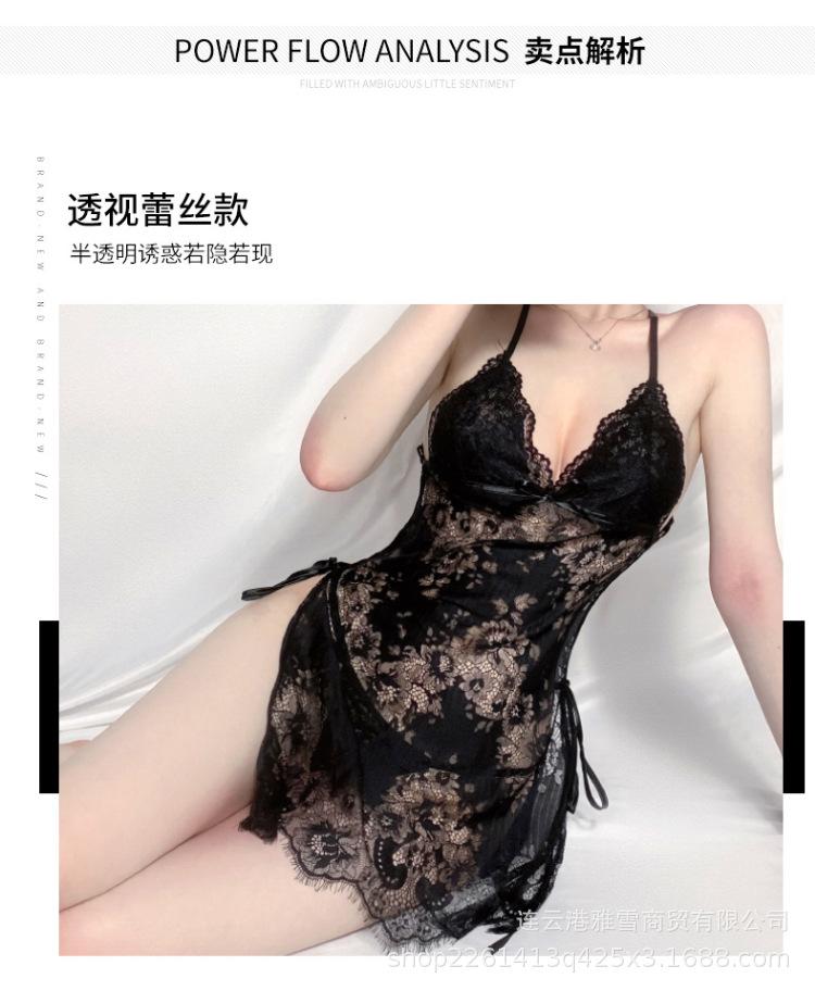 Huan Jin - Lencería sexy para mujer, falda con tirantes de encaje, camisón con perspectiva de encaje, uniforme, pijama tentador europeo y americano