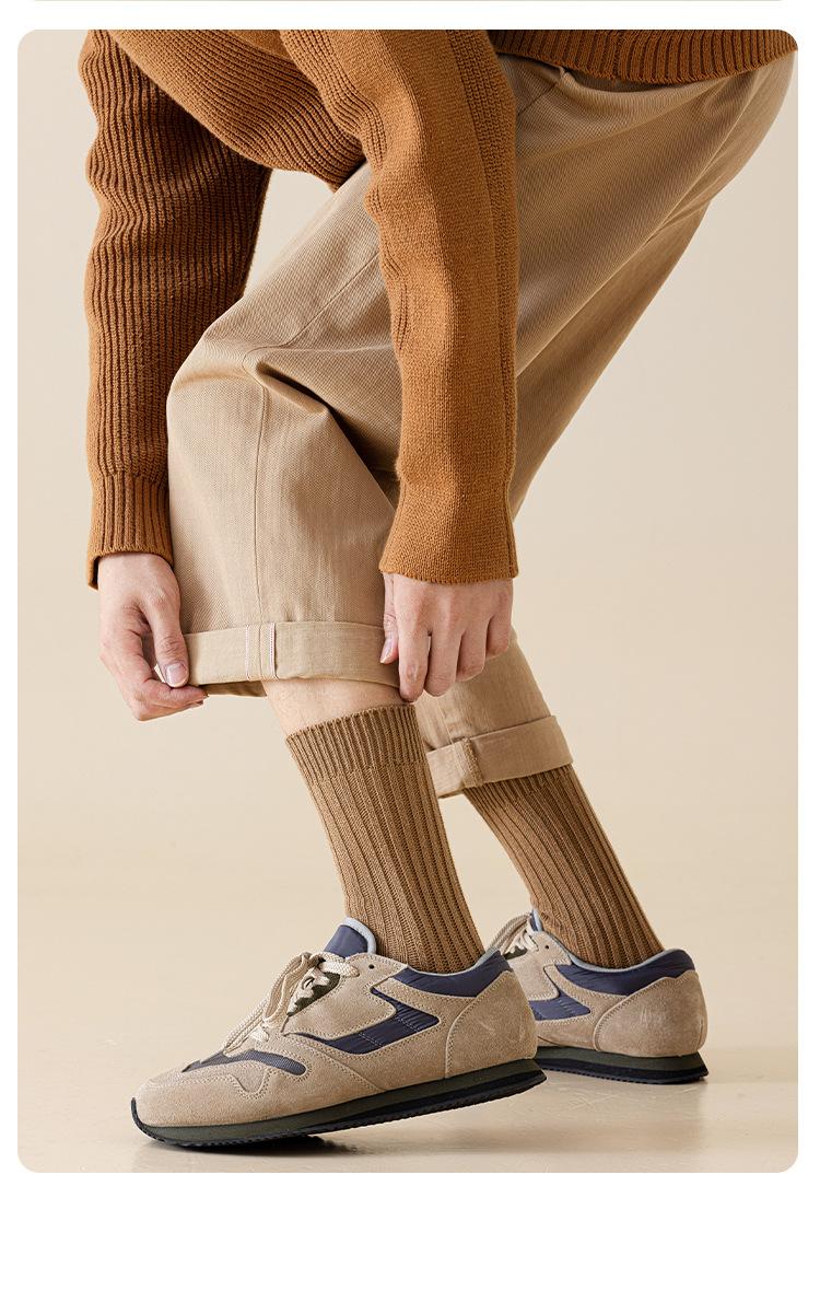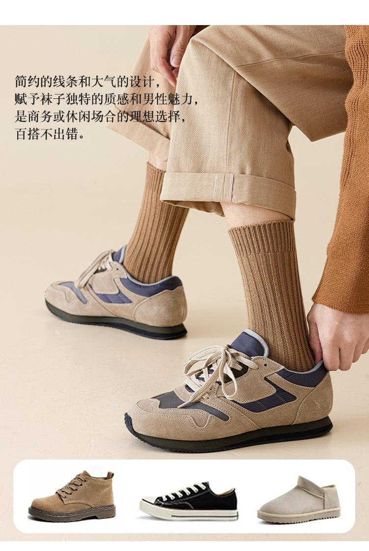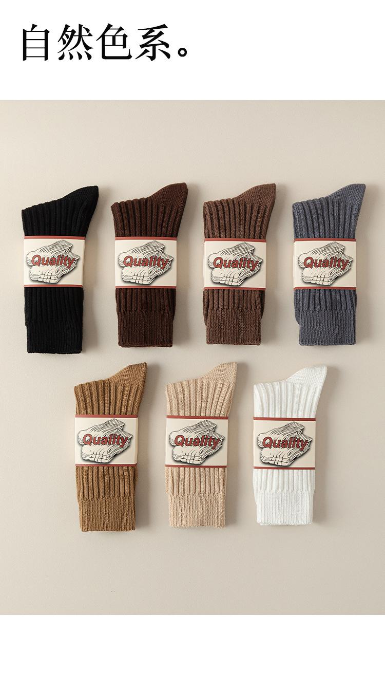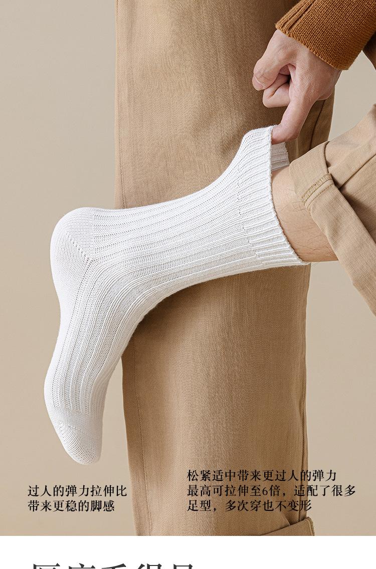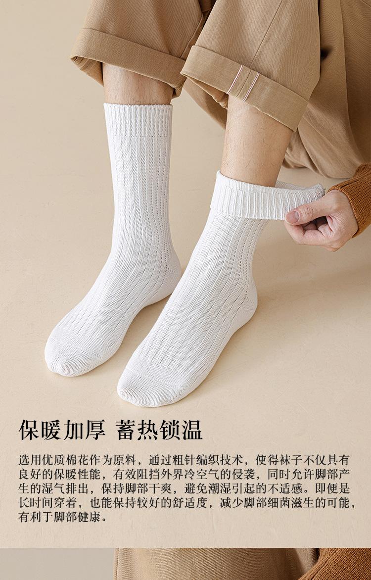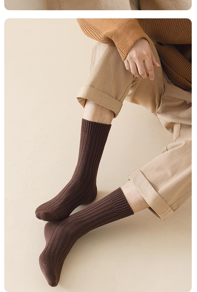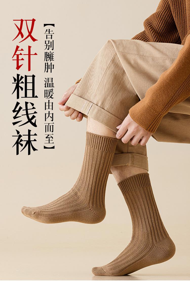 Calcetines de hombre de doble aguja, informales, versátiles, gruesos, absorbentes del sudor, de algodón, de color liso, tallas grandes, para otoño e invierno, de cintura alta.