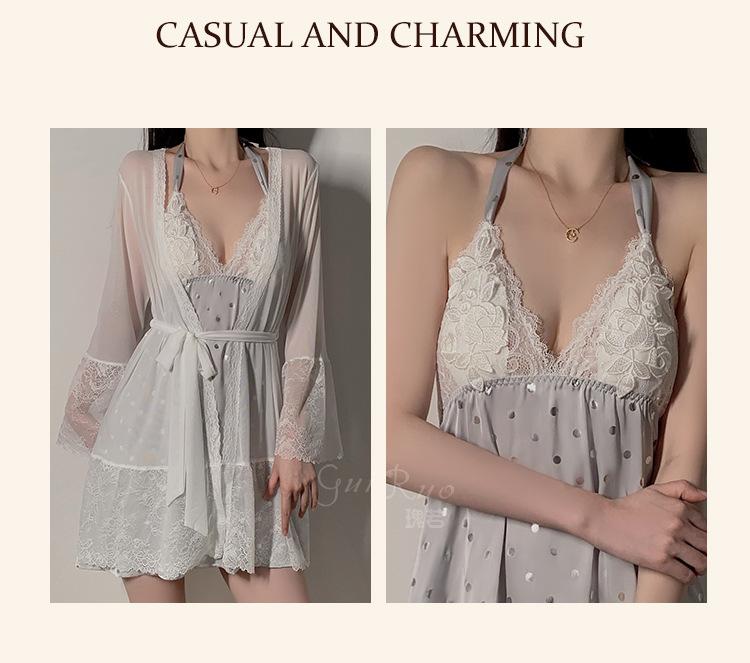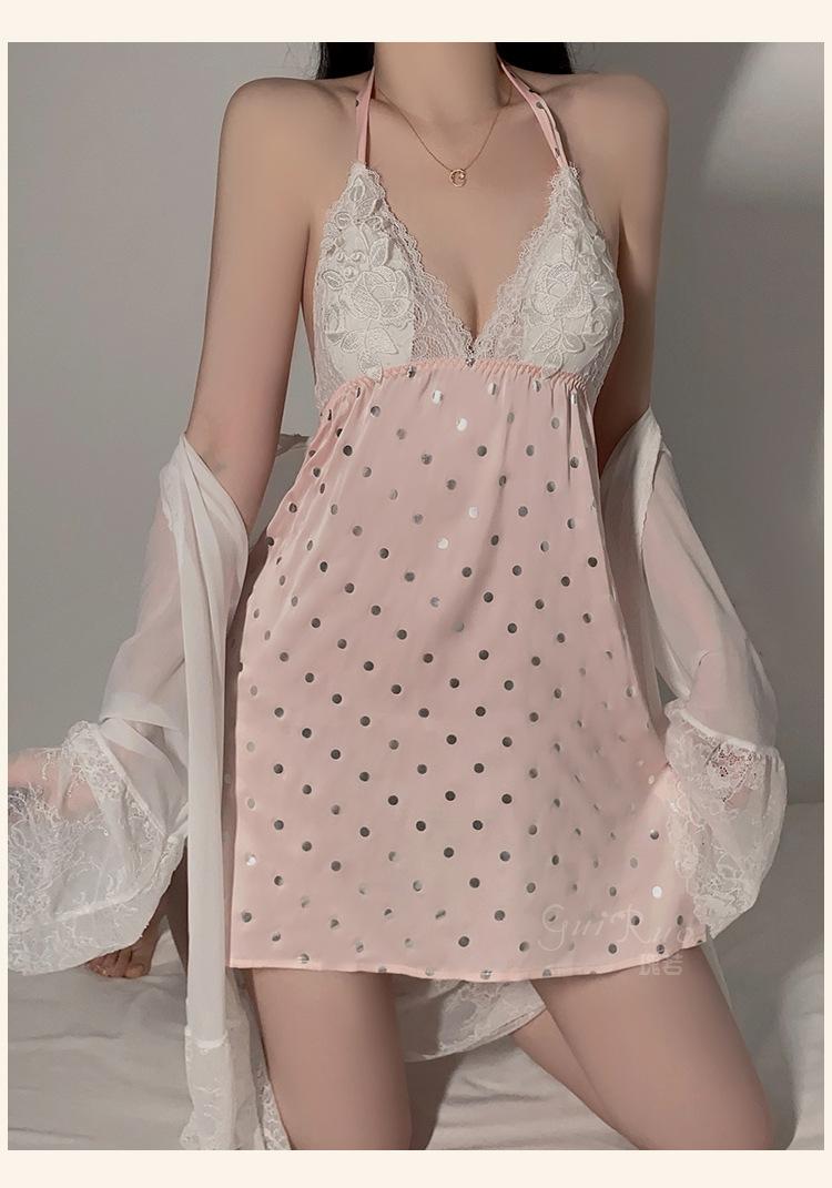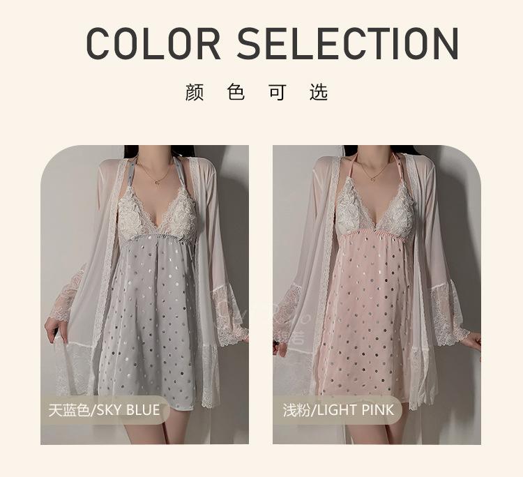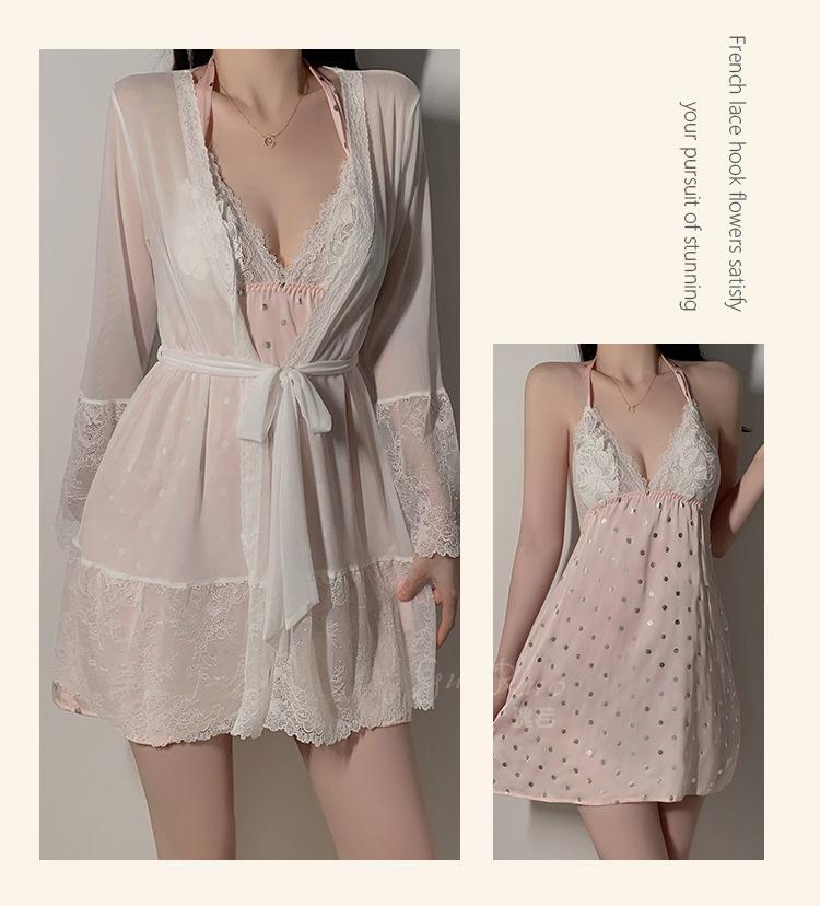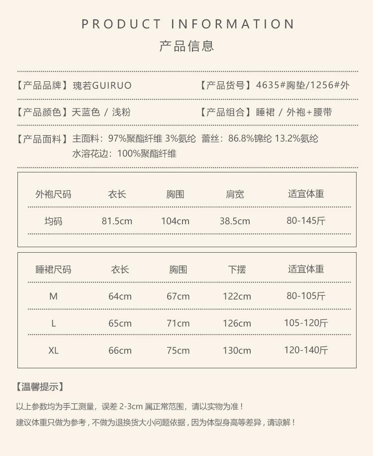 4635 light pink (nightgown), 1256 white (robe + belt), 4635 sky blue (nightgown), 1256 white (robe + belt)