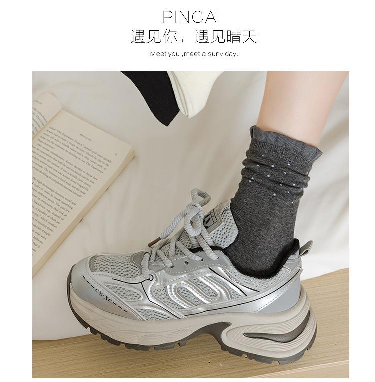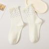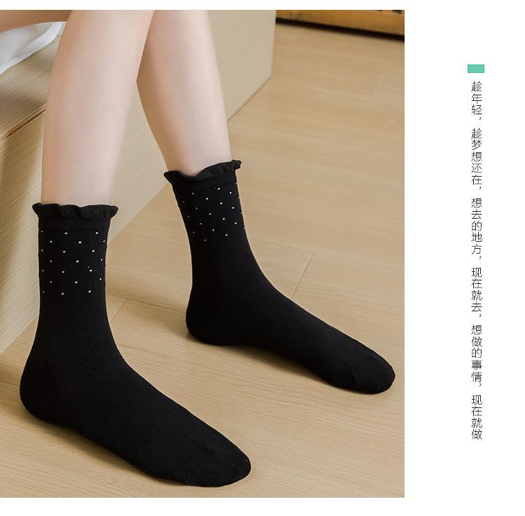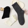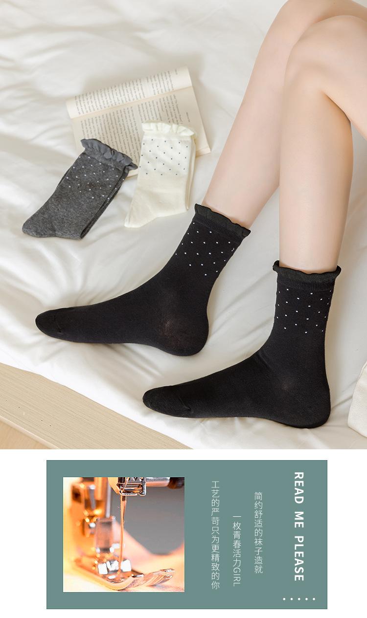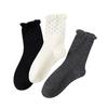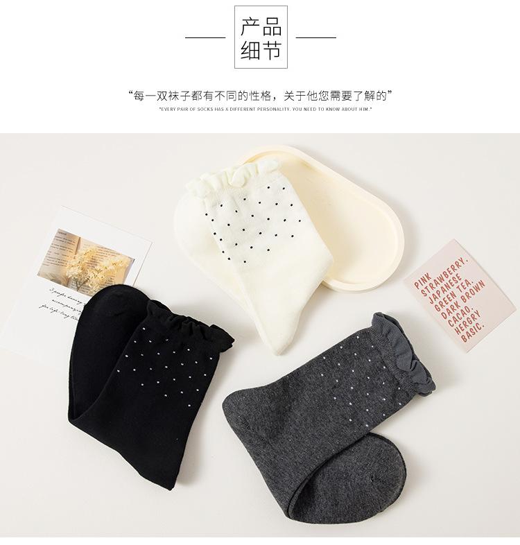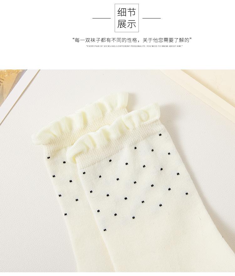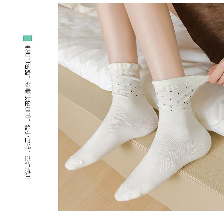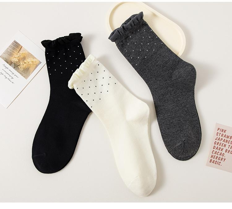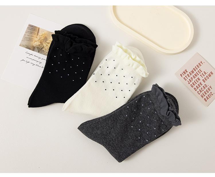 Calcetines Blancos con Lunares Ondulados Calcetines de Media Caña para Niños Calcetines de Algodón de Color Sólido con Rizos y Pies Lindos Calcetines Apilados Japoneses Calcetines de Primavera y Otoño