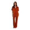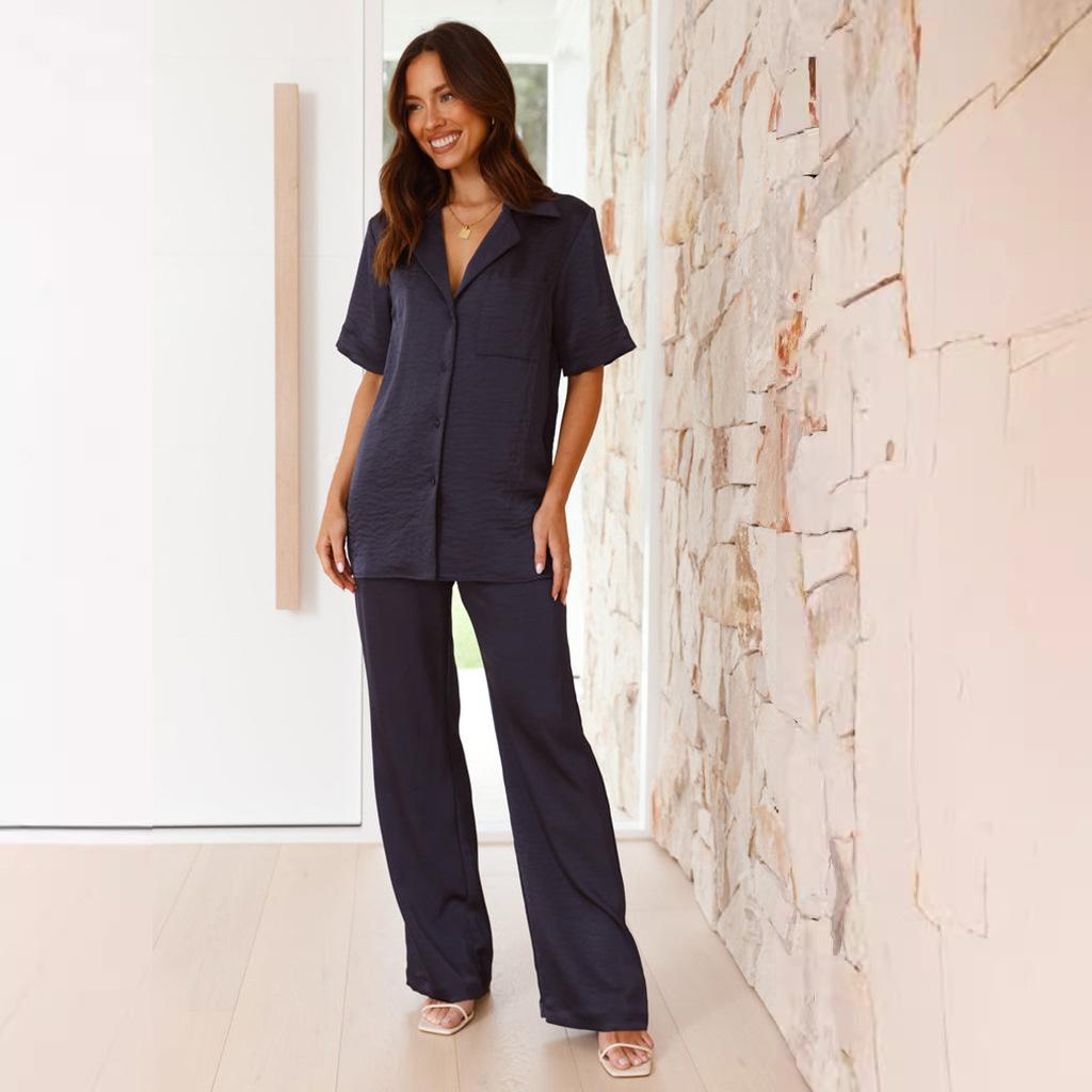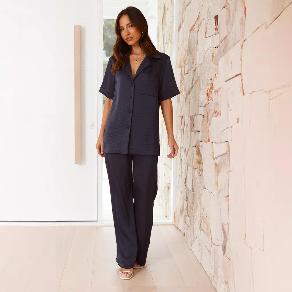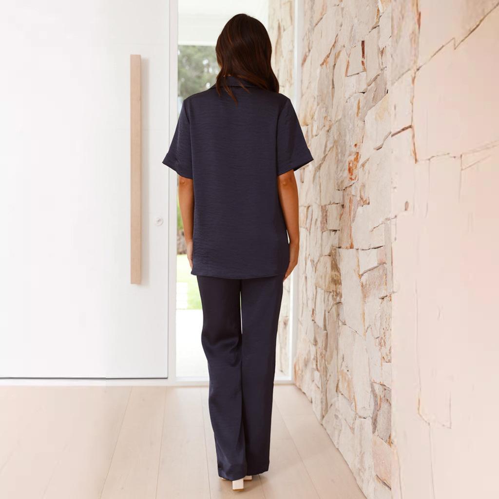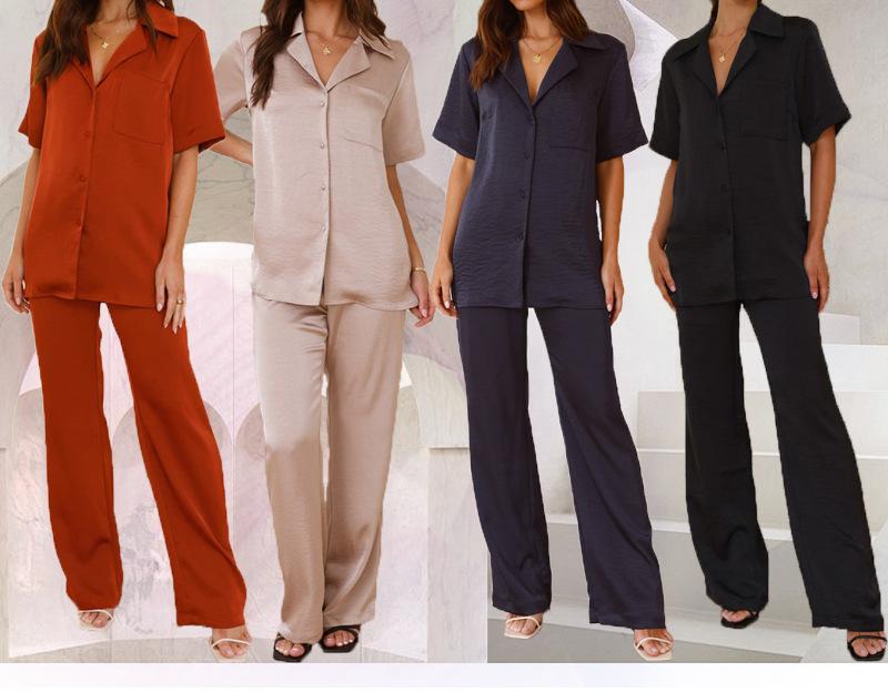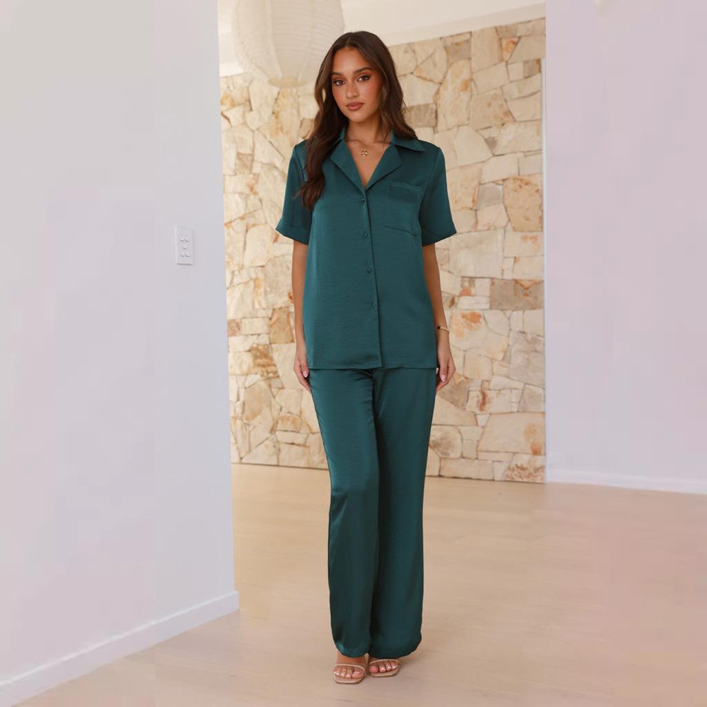 Pijama informal cómodo de manga corta para mujer, nuevo conjunto de pijamas de color liso con solapa para el hogar, disponible en Amazon.