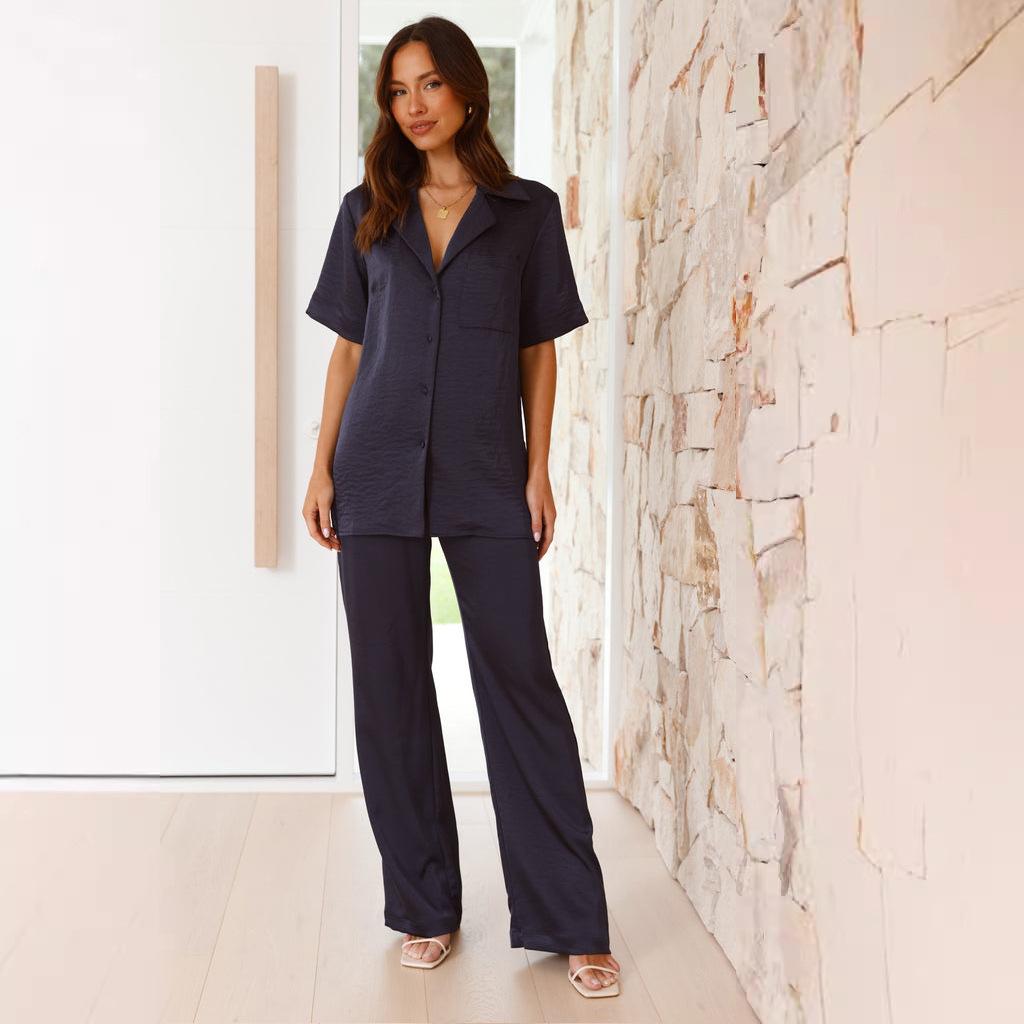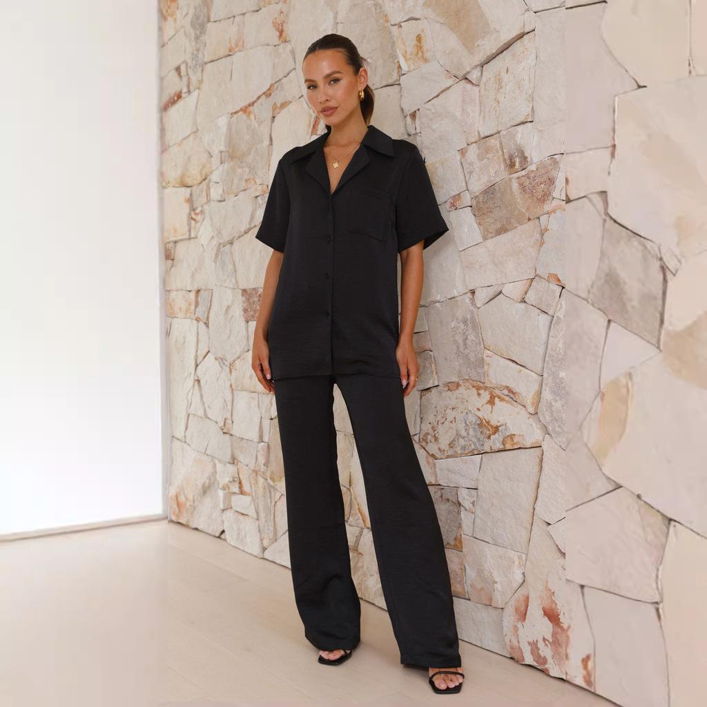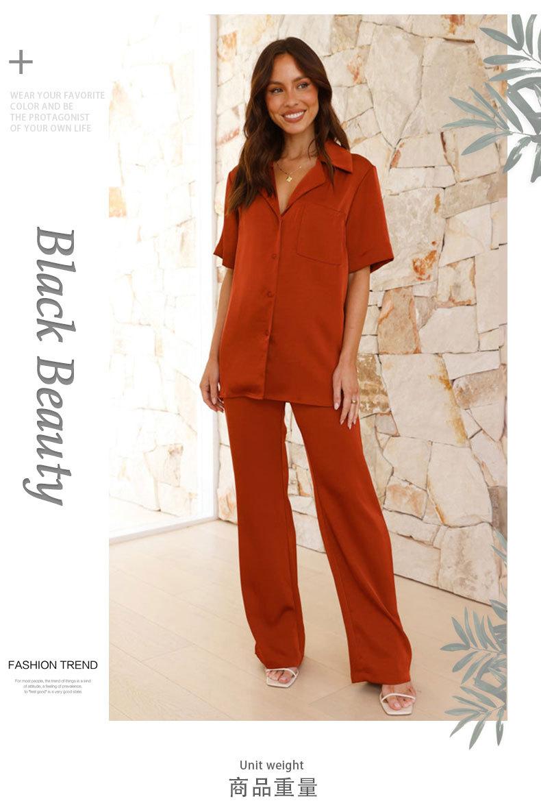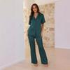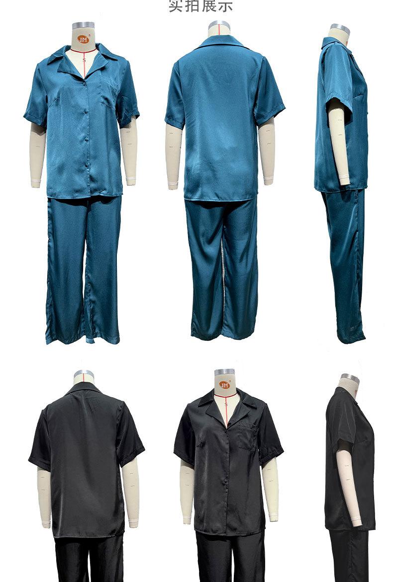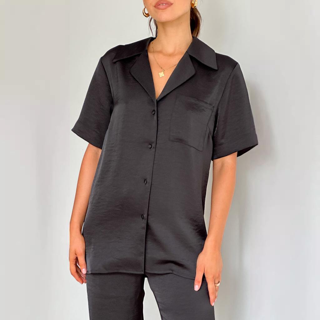 Pijama informal cómodo de manga corta para mujer, nuevo conjunto de pijamas de color liso con solapa para el hogar, disponible en Amazon.