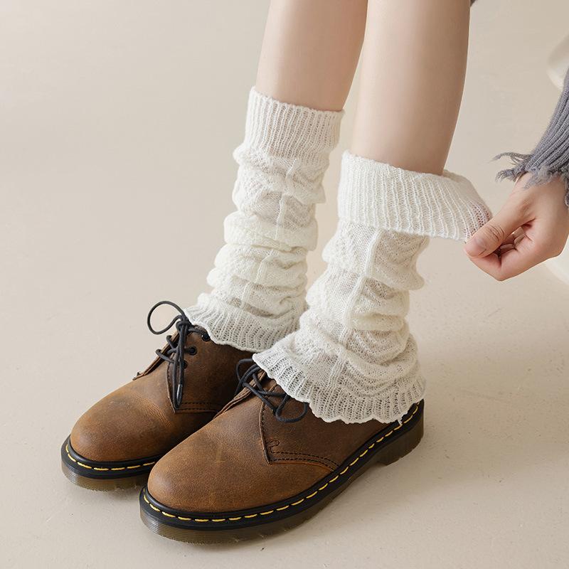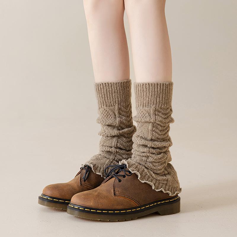 Calcetines japoneses de otoño e invierno para mujer, calcetines de media pantorrilla, calcetines de color sólido, cálidos, de moda, con encaje, conjunto de pierna torcida, venta al por mayor, Joker