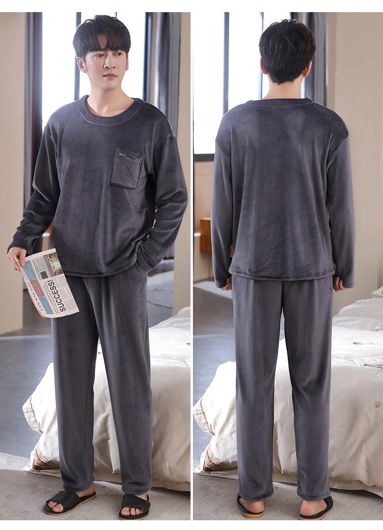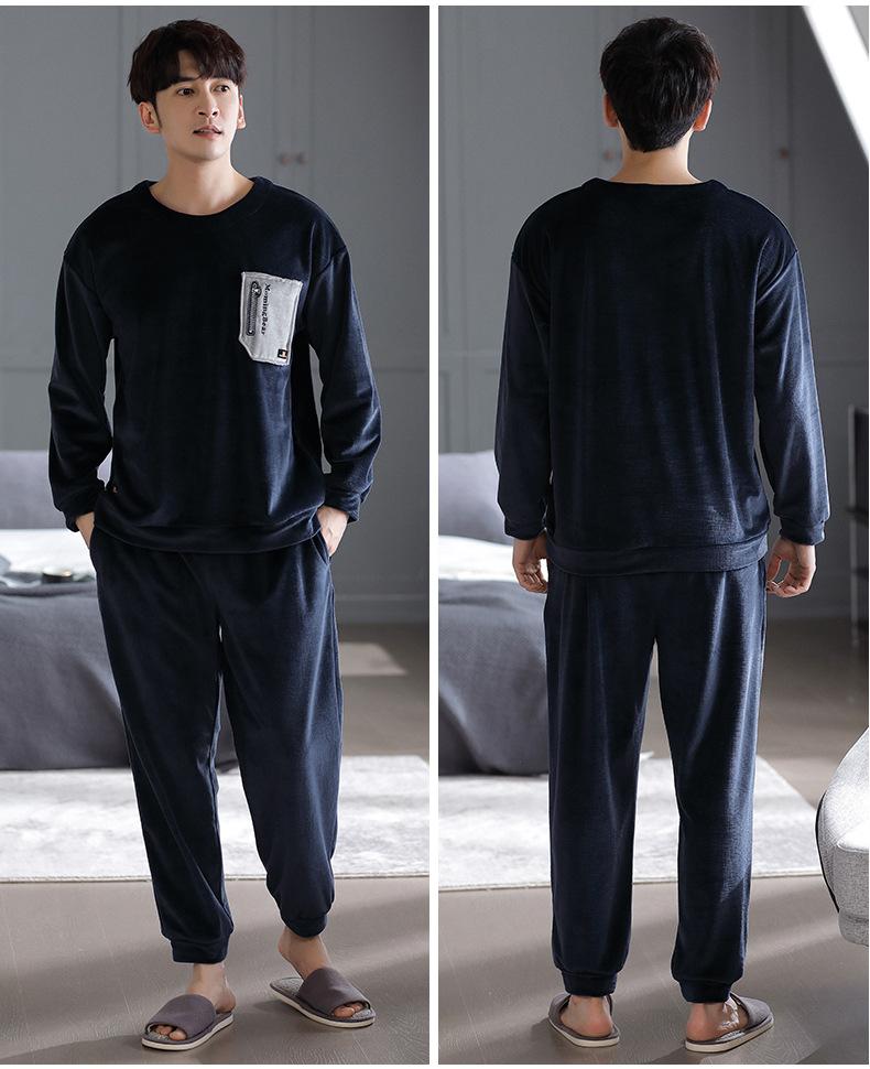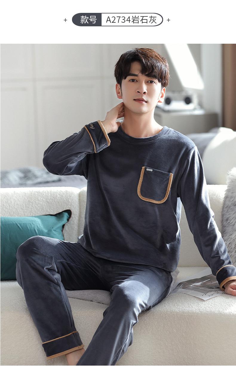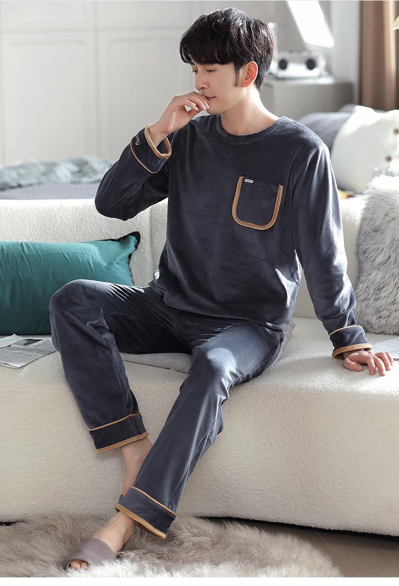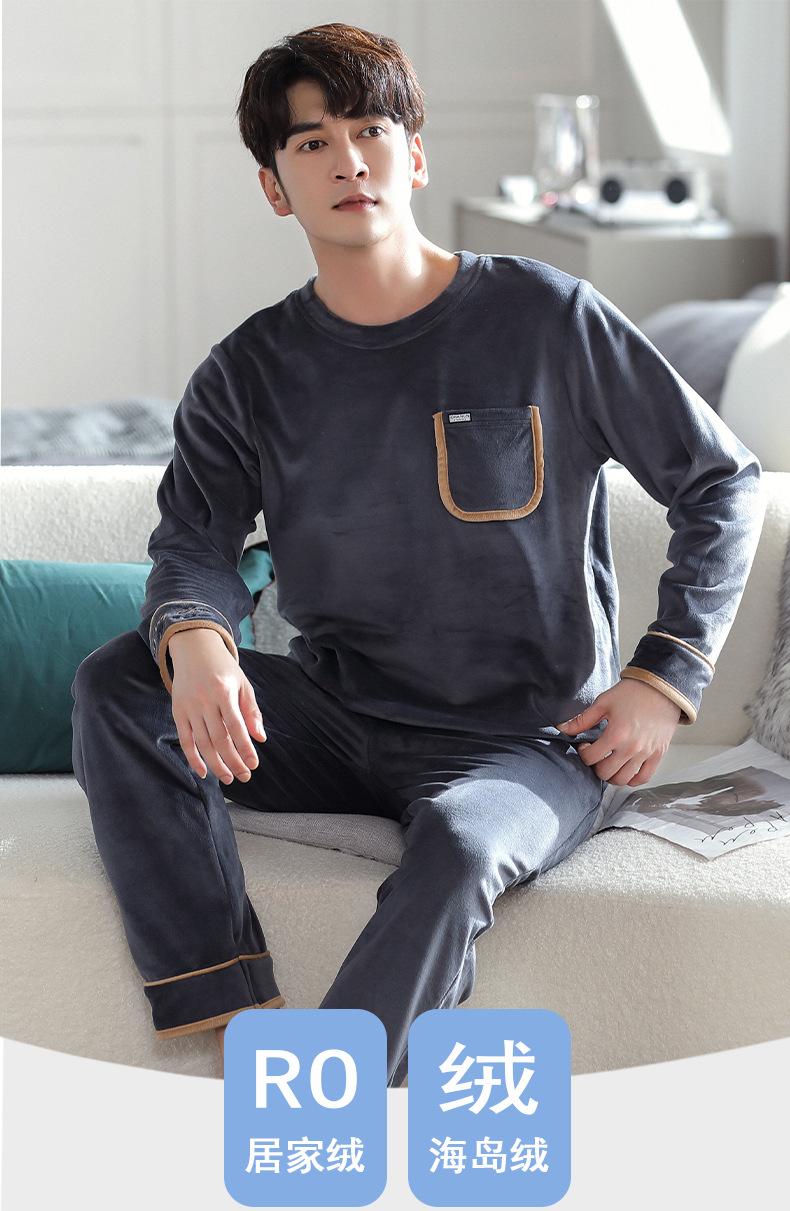 Pijamas de terciopelo de isla para hombre, otoño e invierno, de manga larga, ropa cálida para el hogar, primavera y otoño, prendas de vestir gruesas, traje de moda para hombre