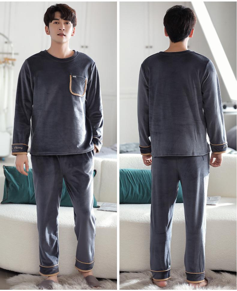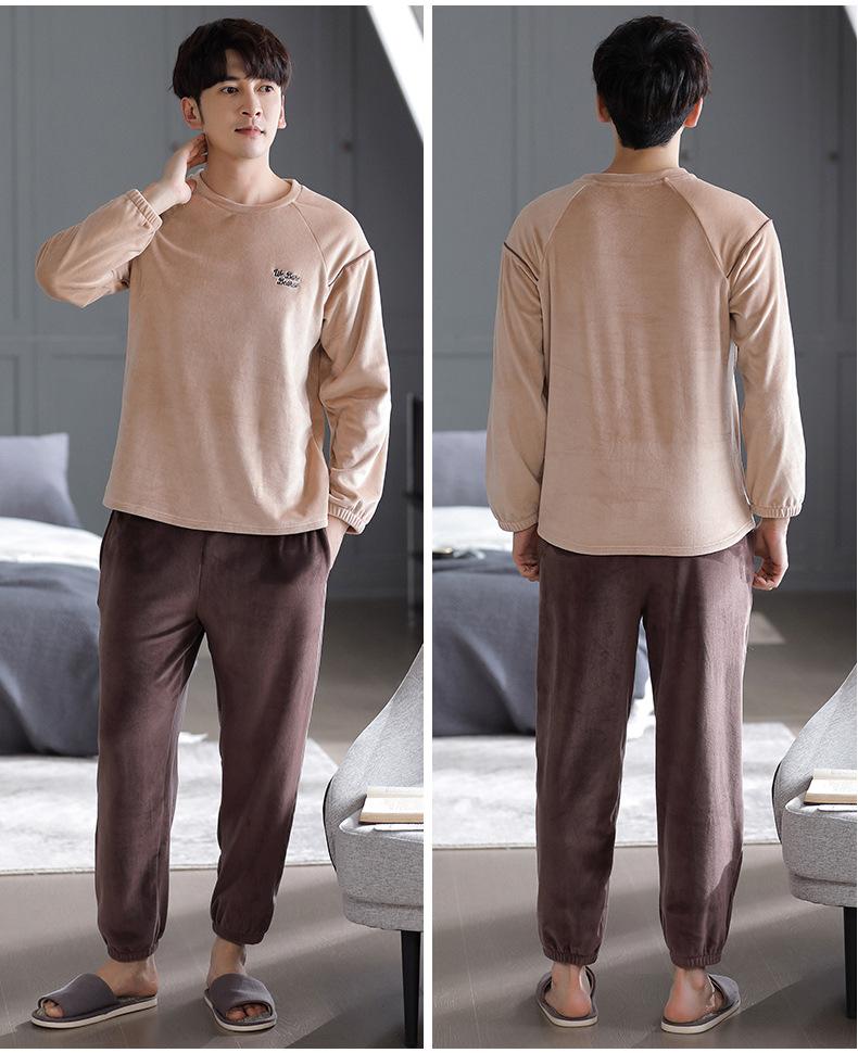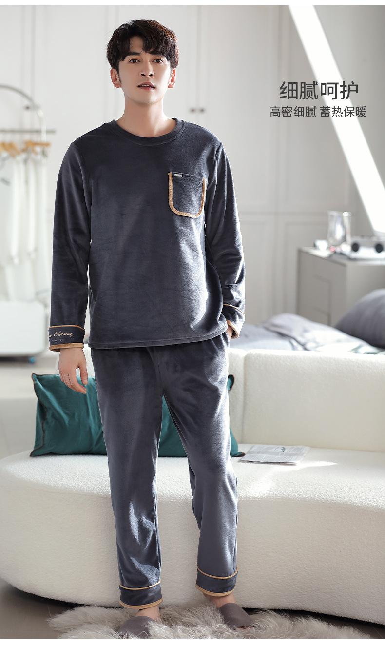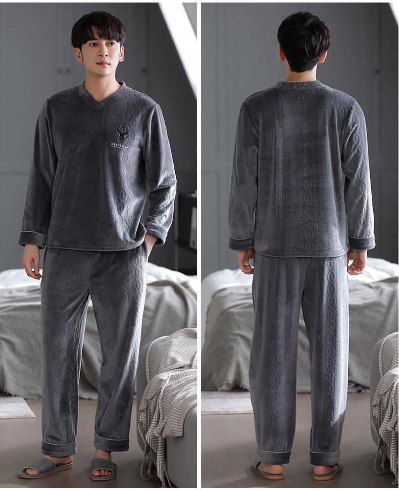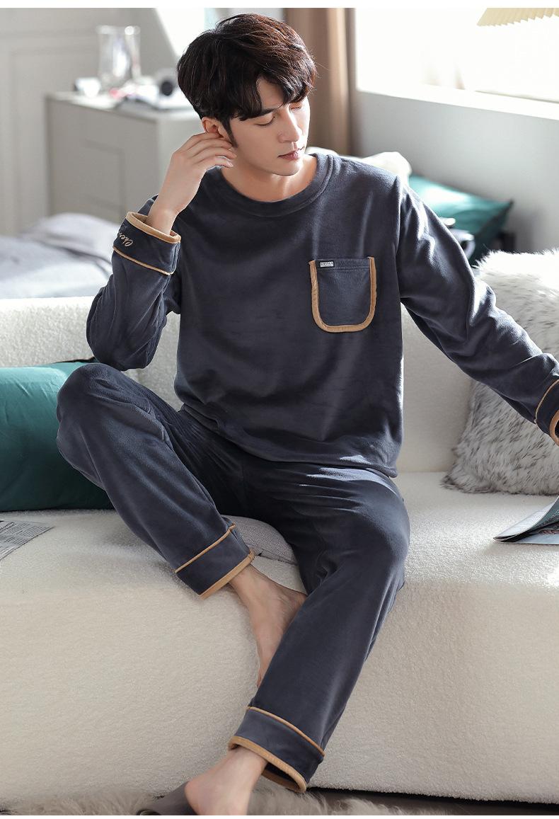 Pijamas de terciopelo de isla para hombre, otoño e invierno, de manga larga, ropa cálida para el hogar, primavera y otoño, prendas de vestir gruesas, traje de moda para hombre