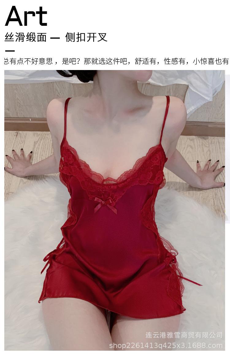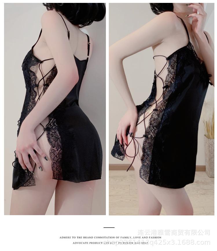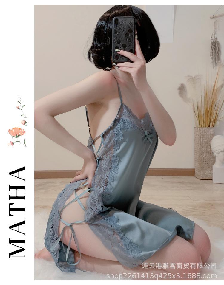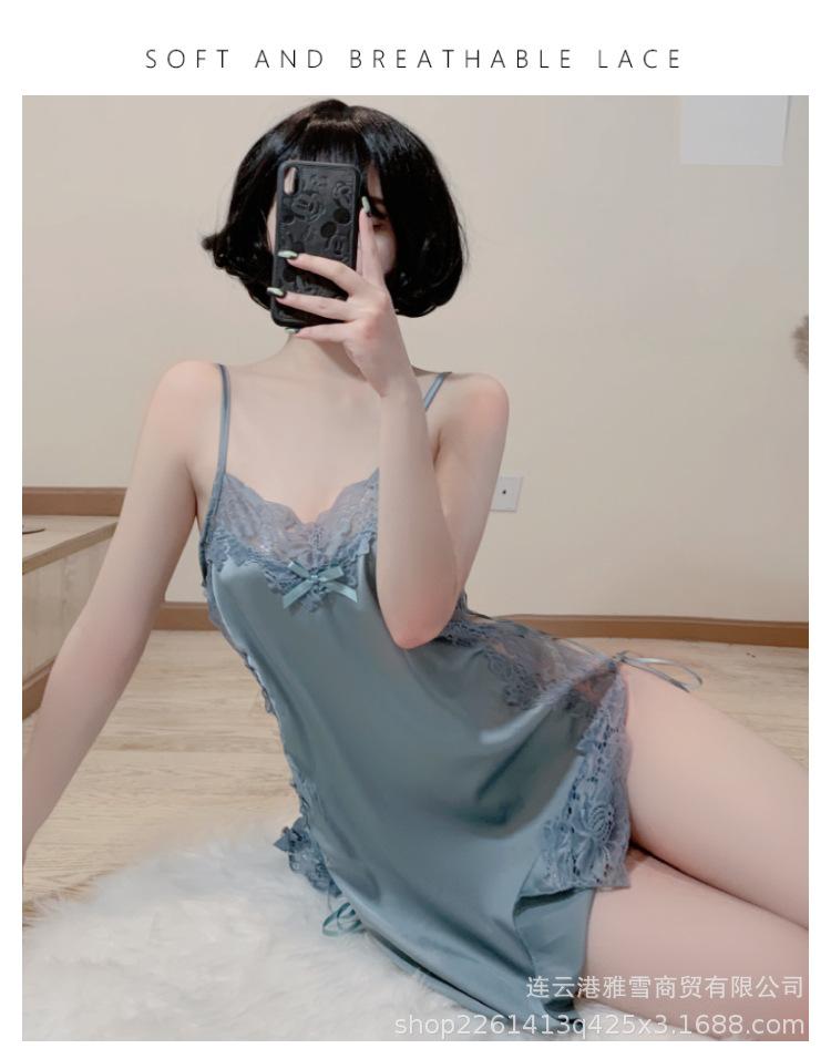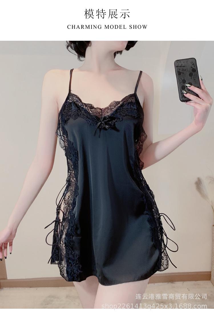 Compra Pijama sexy con solapa Huan para mujer, camisón de encaje con tirantes, escote en V profundo, espalda descubierta, abertura lateral, ropa de casa con tirantes al por mayor en Joom.pro