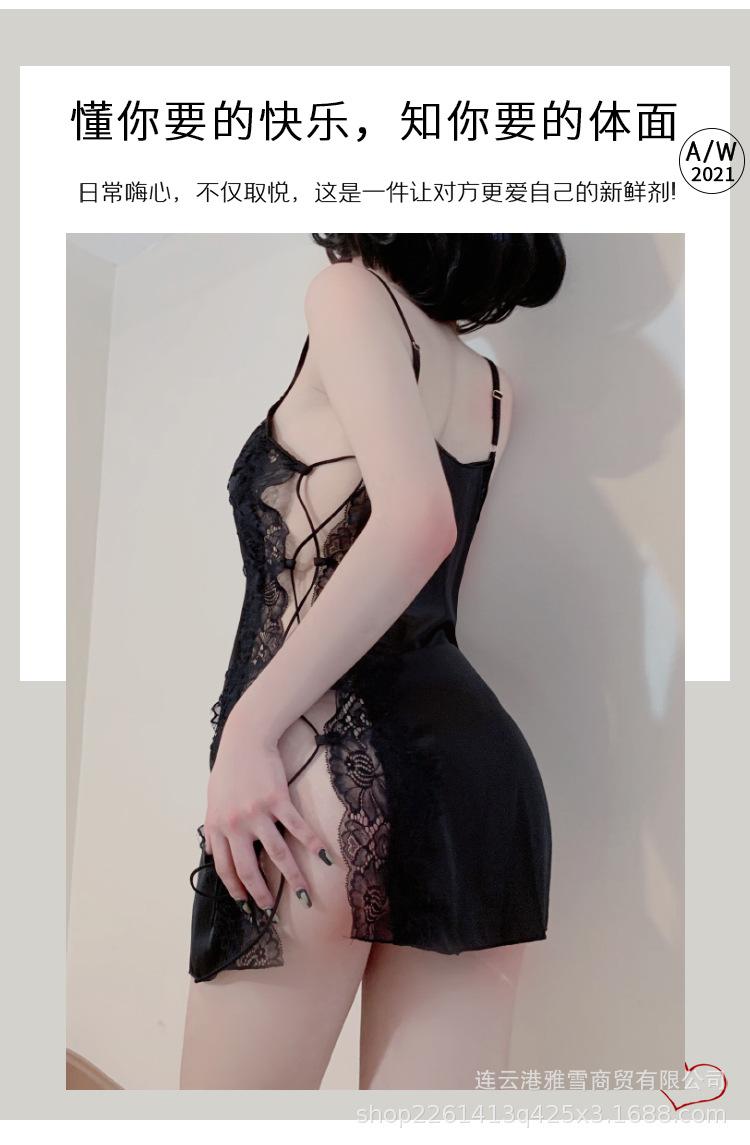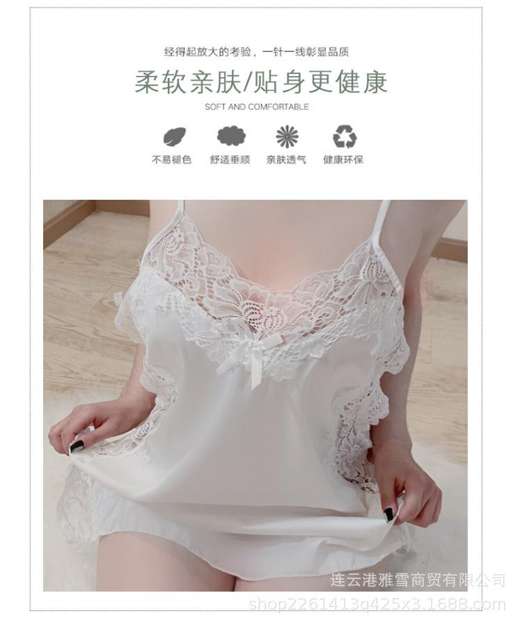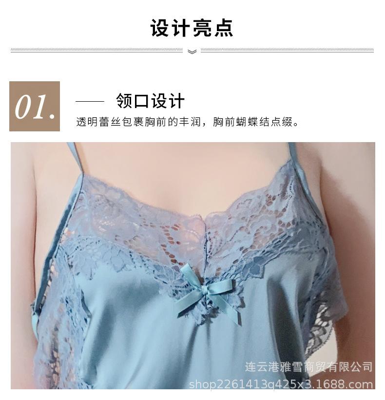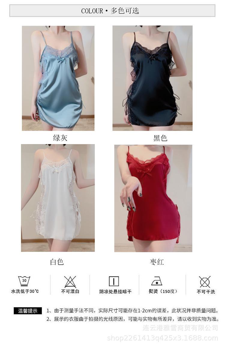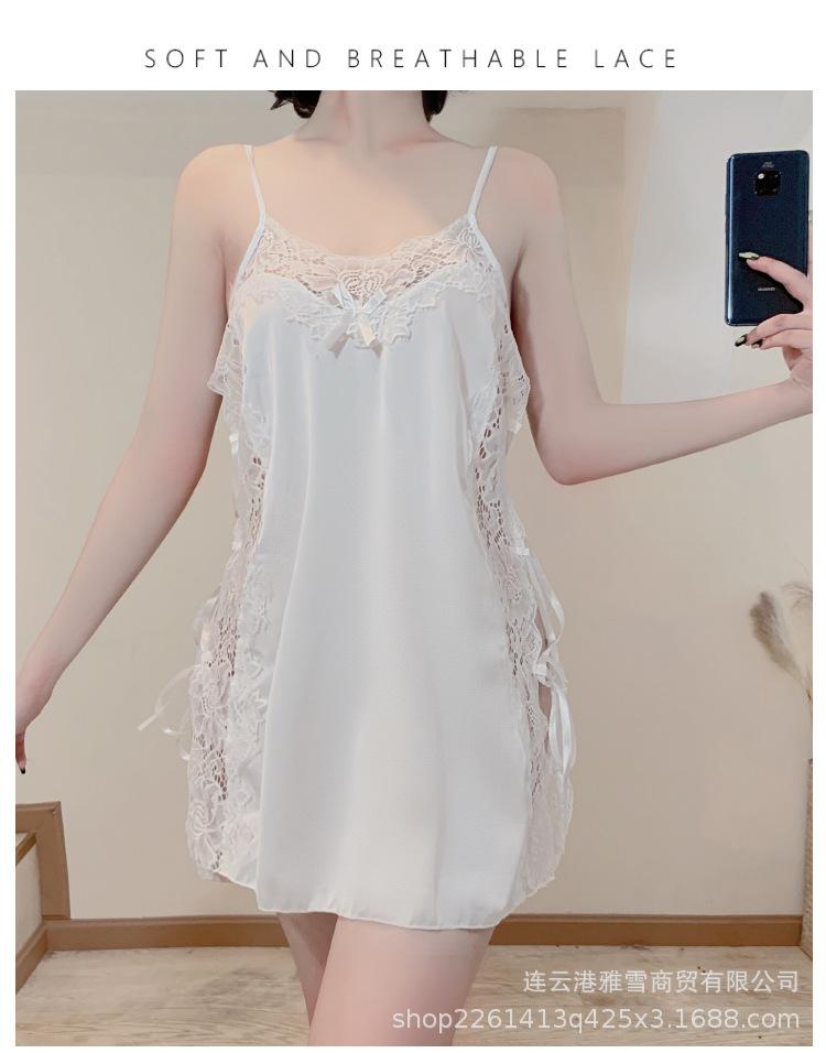 Compra Pijama sexy con solapa Huan para mujer, camisón de encaje con tirantes, escote en V profundo, espalda descubierta, abertura lateral, ropa de casa con tirantes al por mayor en Joom.pro