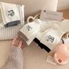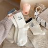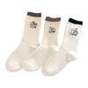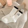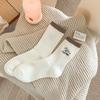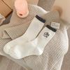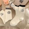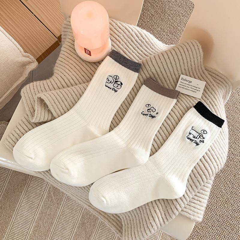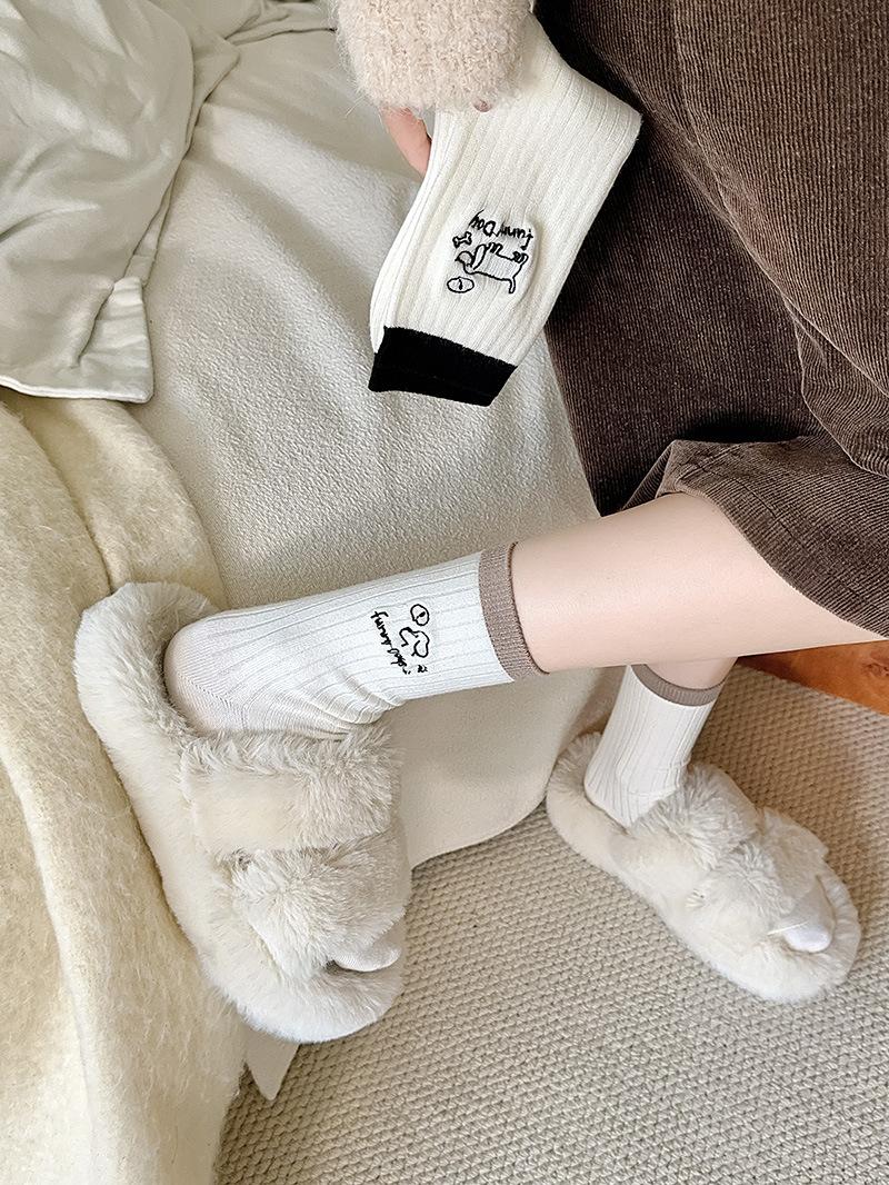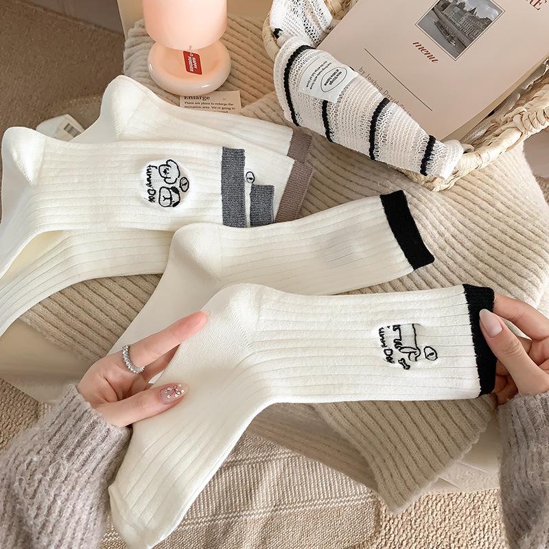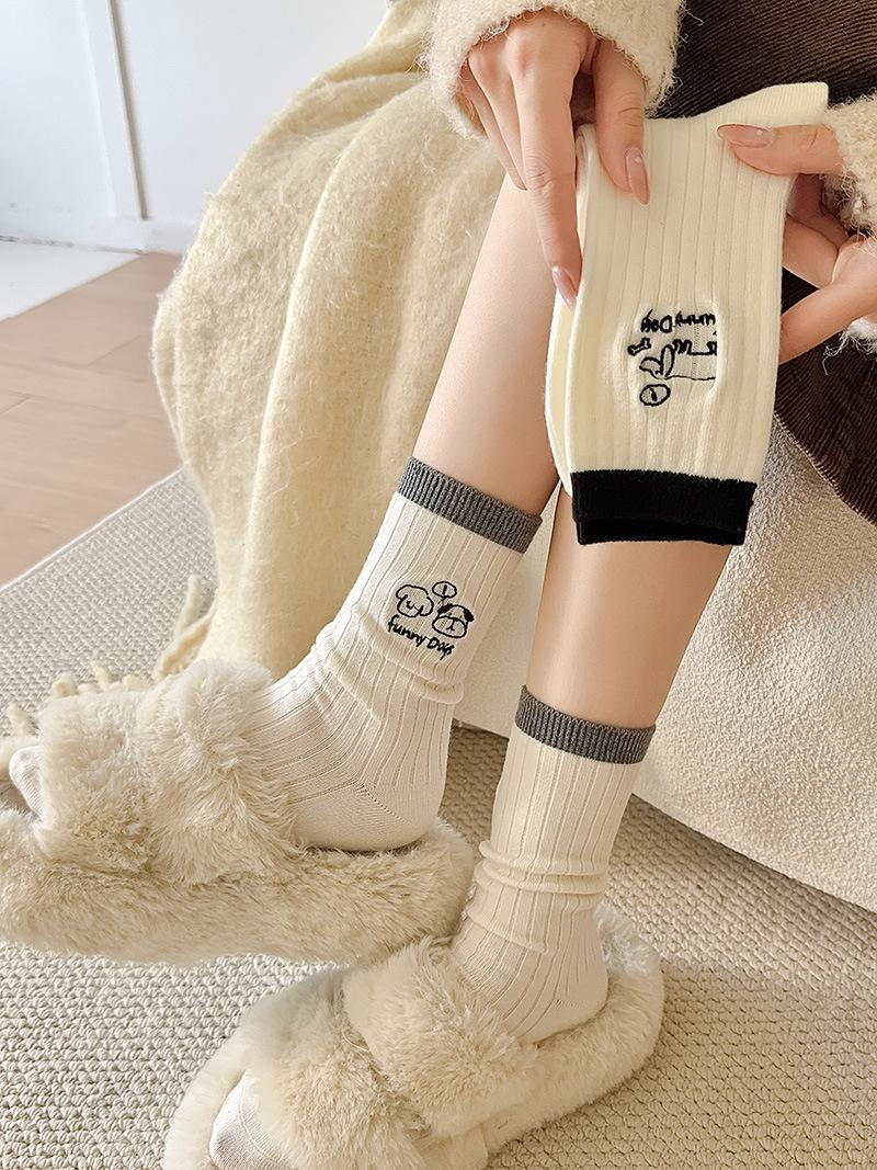 Calcetines con bordado de cachorro, rayas verticales de doble aguja, calcetines de tubo medio, calcetines gruesos y cálidos a juego para mujer, calcetines de estilo ins para otoño e invierno.