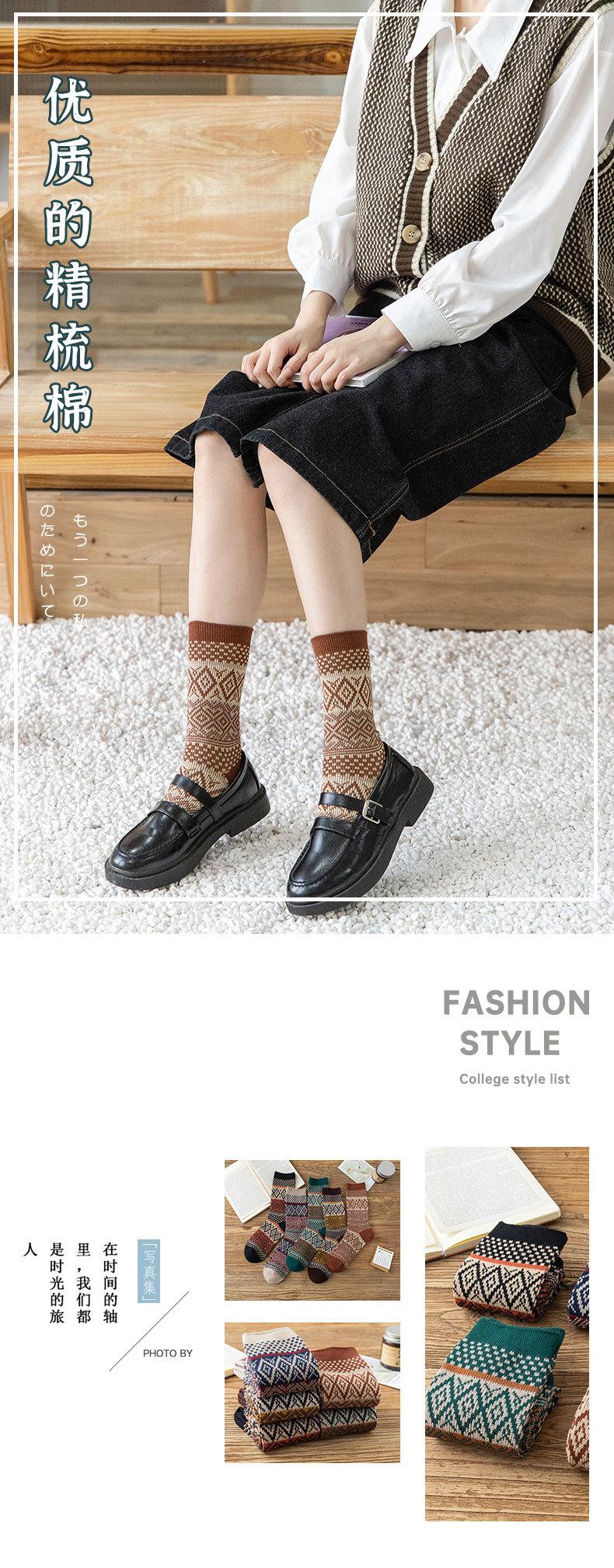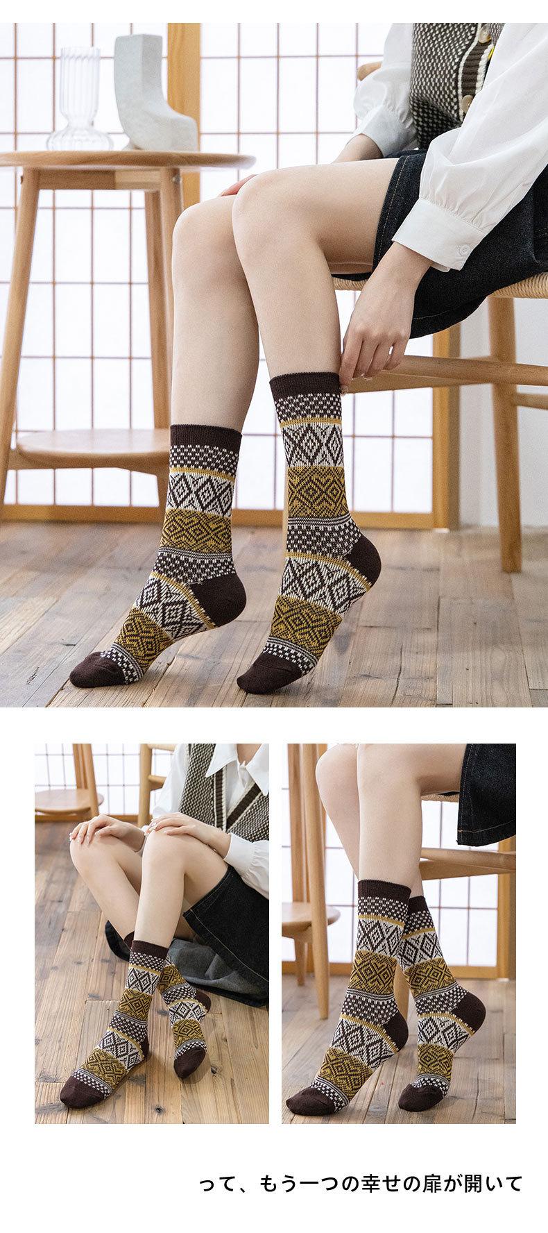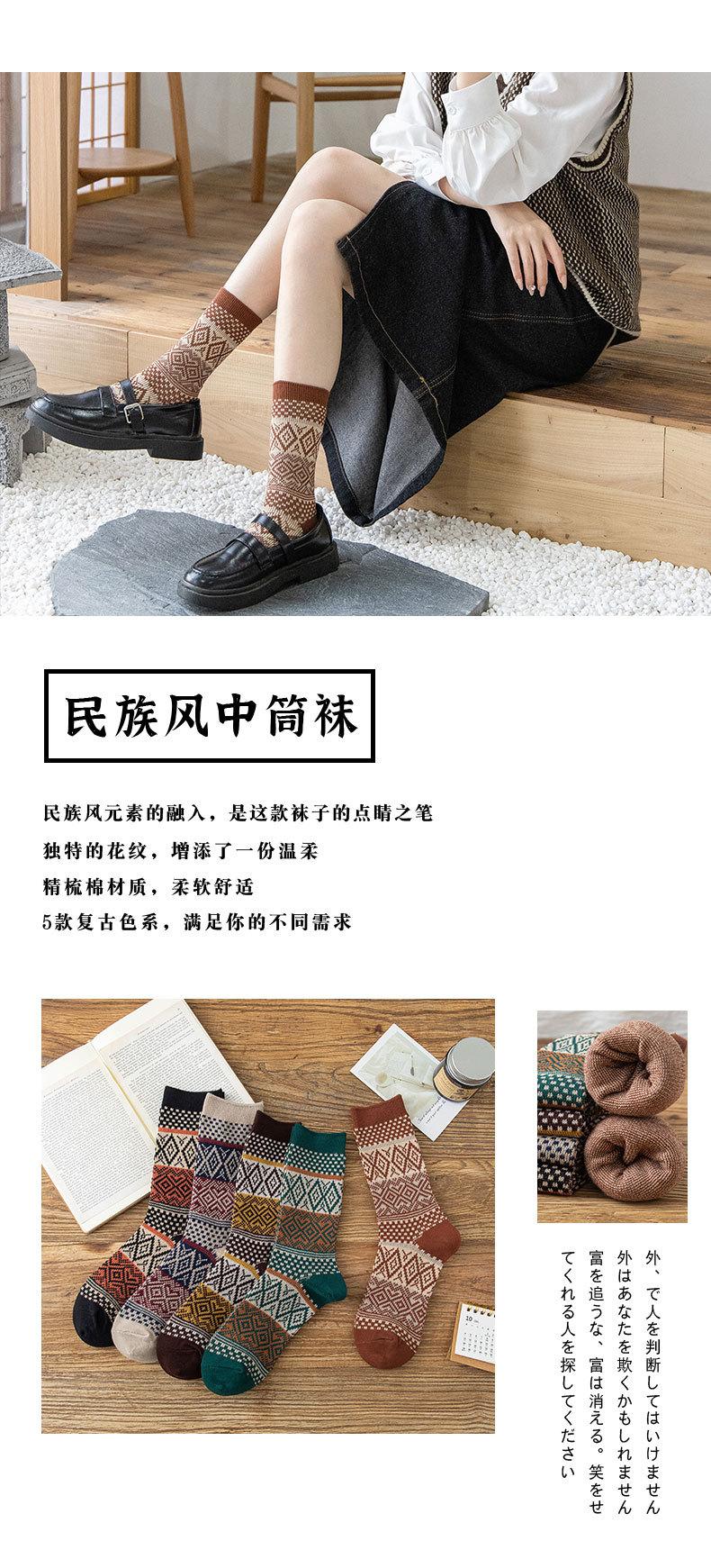 Calcetines nuevos de Otoño e Invierno para Mujer para Comercio Exterior, Calcetines Gruesos Cálidos, Calcetines de Media Caña Estilo Étnico, Calcetines Slouch de Estilo Japonés con Bloques de Color Retro