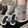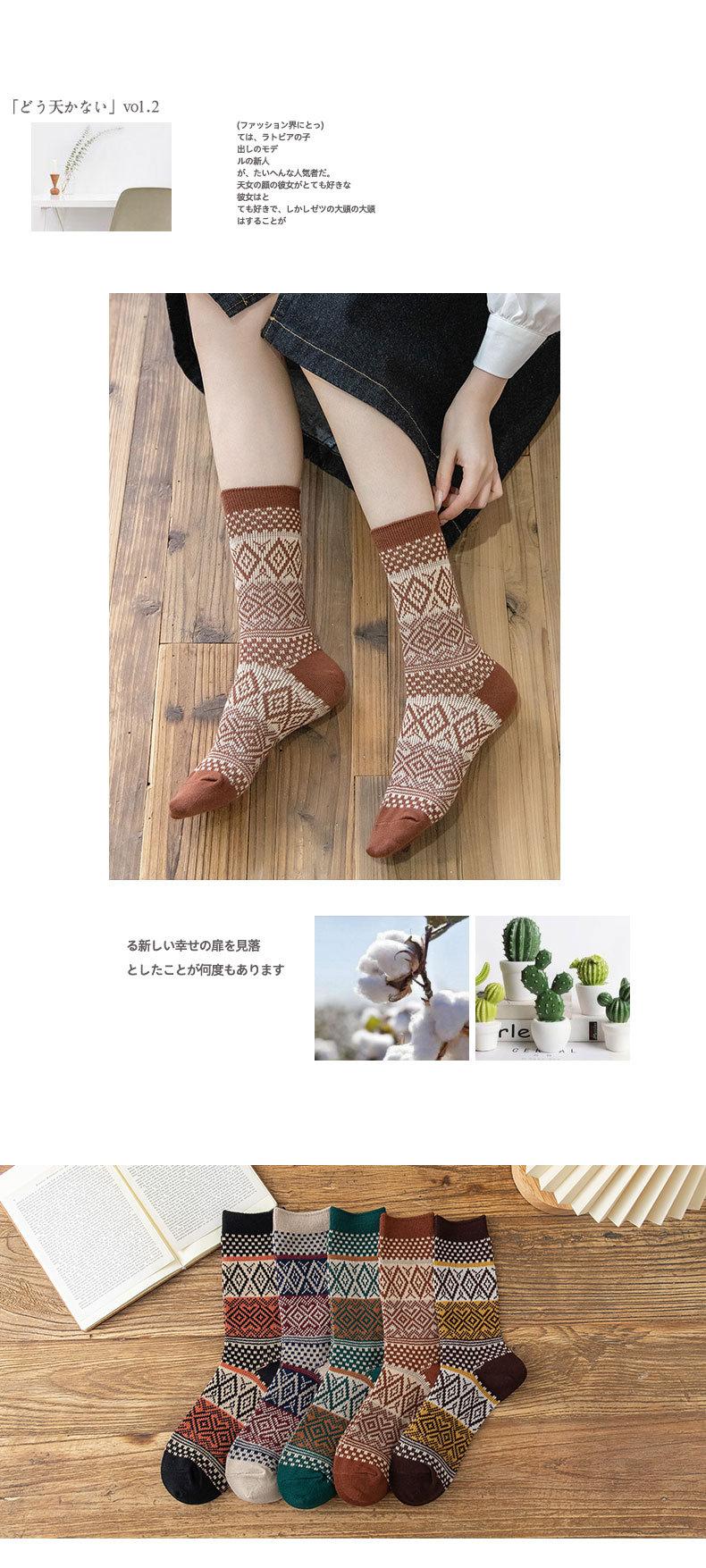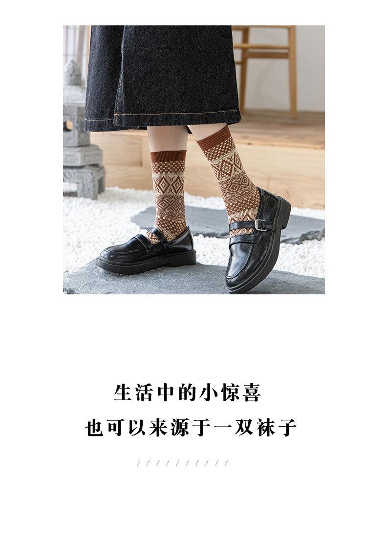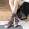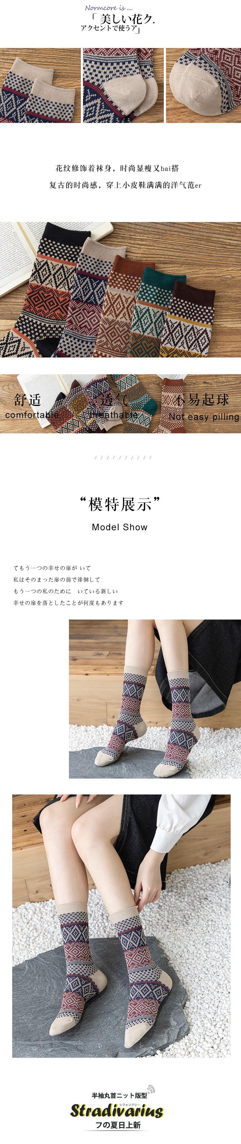 Calcetines nuevos de Otoño e Invierno para Mujer para Comercio Exterior, Calcetines Gruesos Cálidos, Calcetines de Media Caña Estilo Étnico, Calcetines Slouch de Estilo Japonés con Bloques de Color Retro
