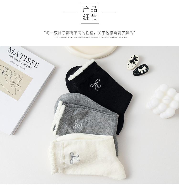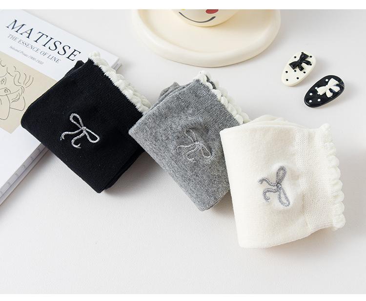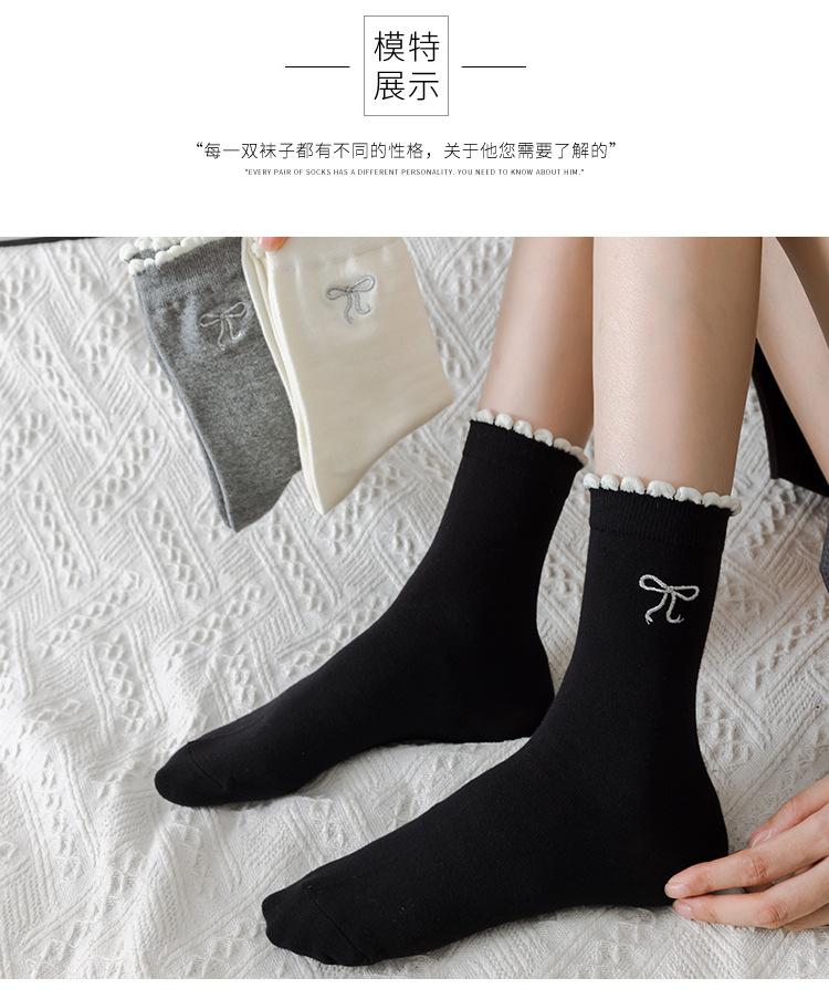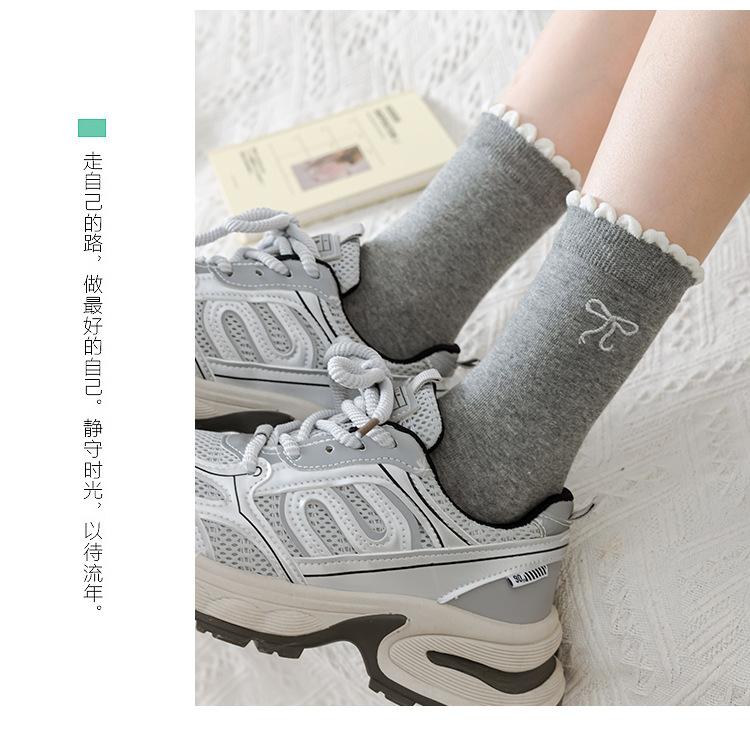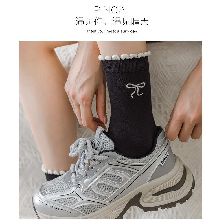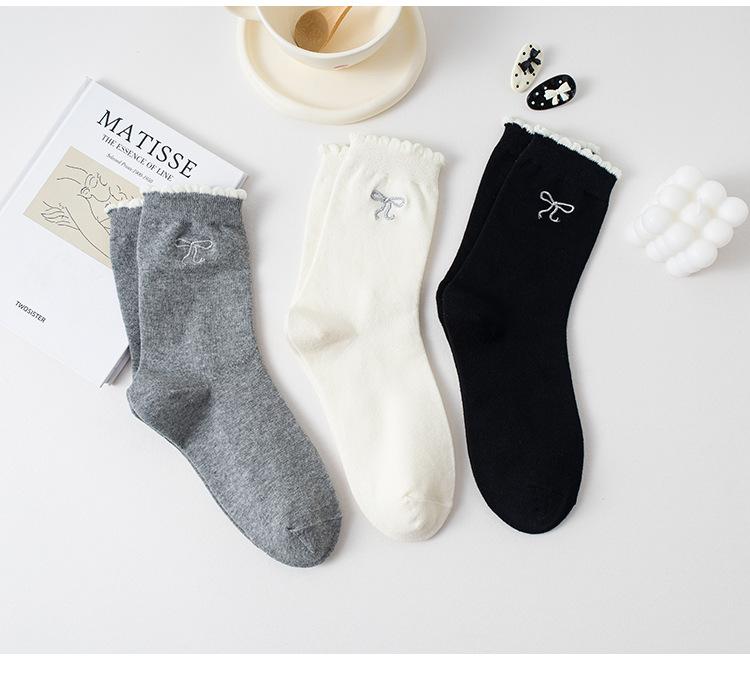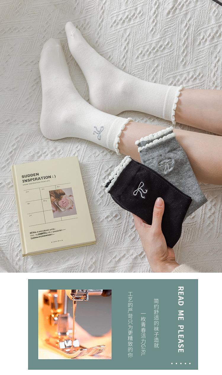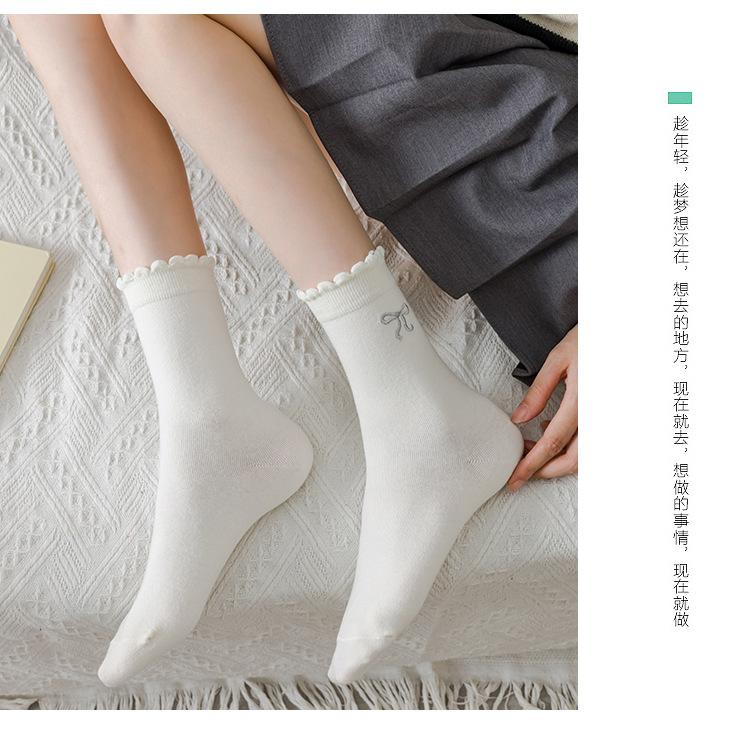 Compra Calcetines de mujer de primavera y otoño, calcetines de mediados de otoño, calcetines de burbuja con lazo bordado, dulces y elásticos, ropa de ambiente de estilo coreano al por mayor en Joom.pro