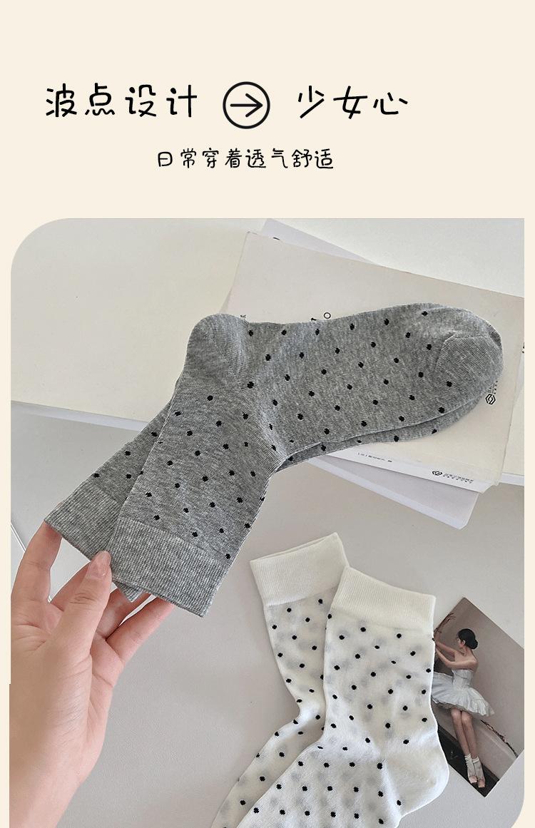 Compra Calcetines de Lunares de Onda Blanca para Mujer Verano Delgados de Media Caña Algodón Borde Rizado Lindo Japonés Pilas Gris Media de Verano al por mayor en Joom.pro