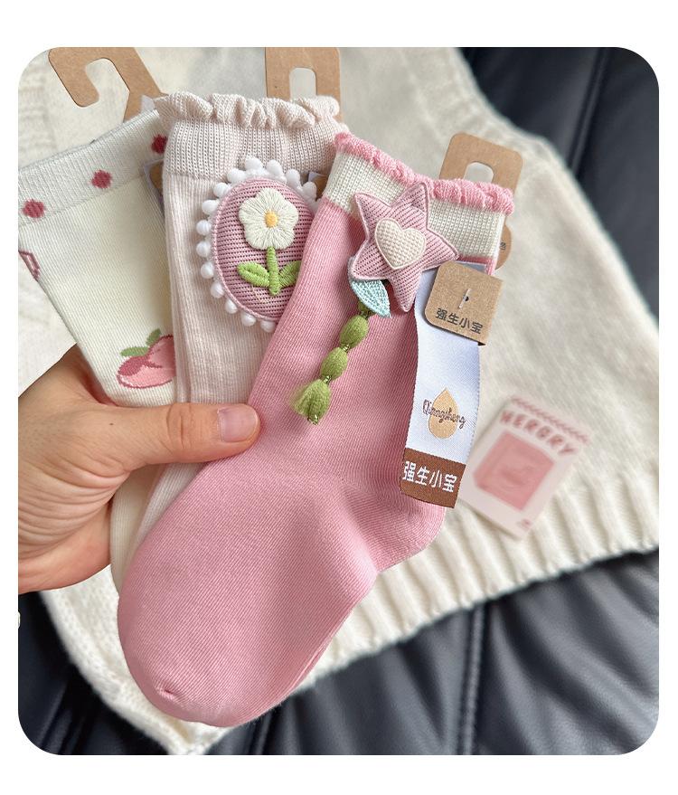 Calcetines para niños calcetines de tubo dulces de otoño para niños calcetines de princesa sin costuras de encaje para bebés calcetines de algodón para niños grandes al por mayor