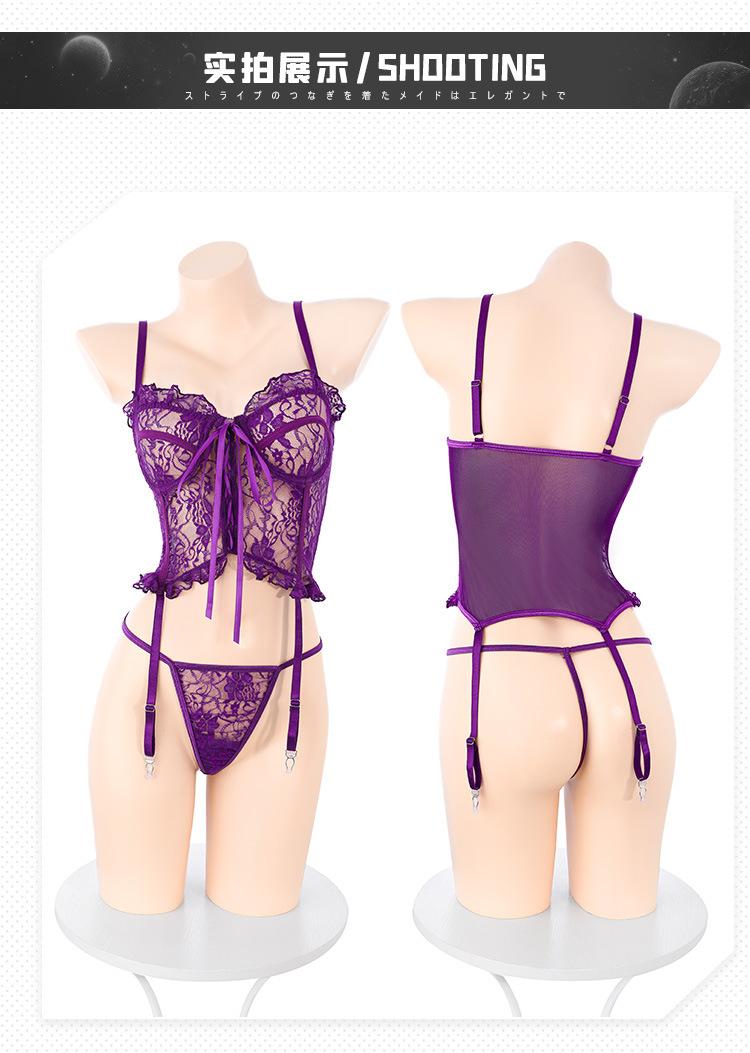 ◆Flor del Deseo◆Morado [Chaleco con Aros y Liguero + Tanga] 6977890230418 (Límite de Precio 49)