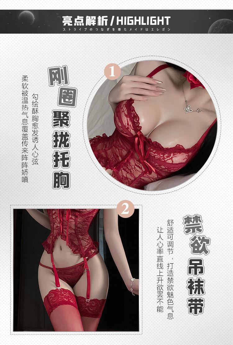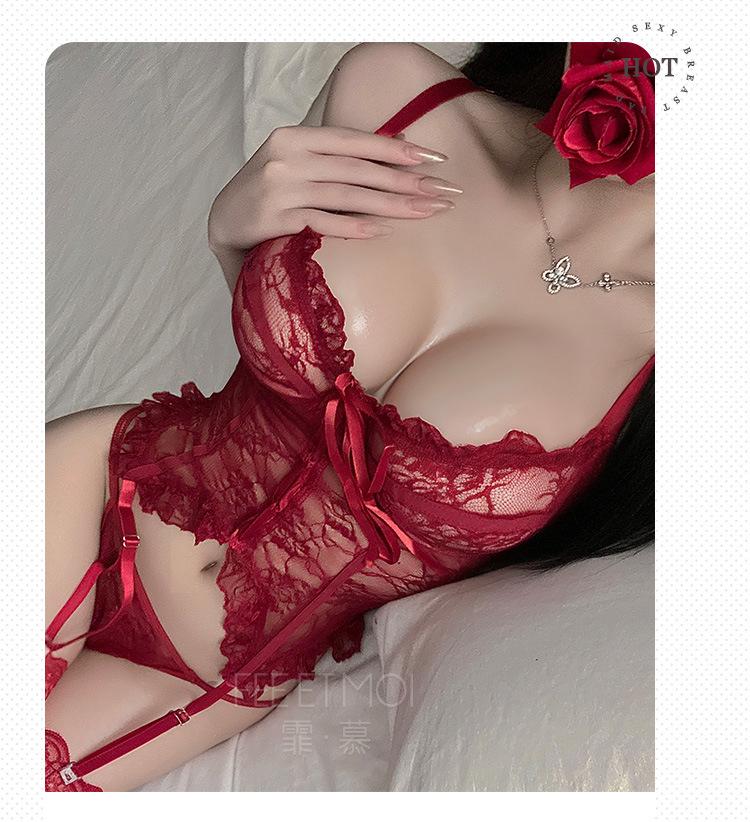 ◆Flor del Deseo◆Rojo vino [chaleco con aros y liguero + tanga] 6977890230395 (precio limitado 49)