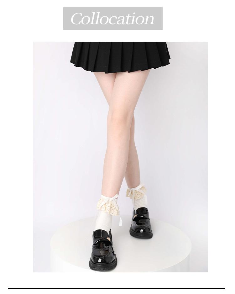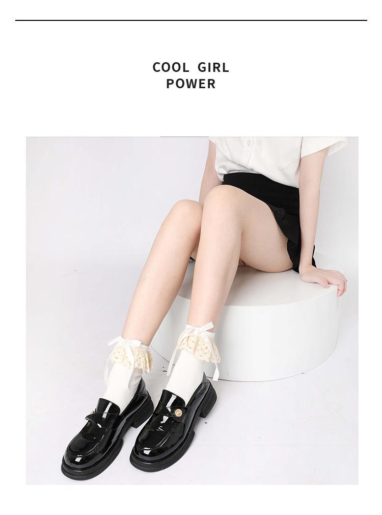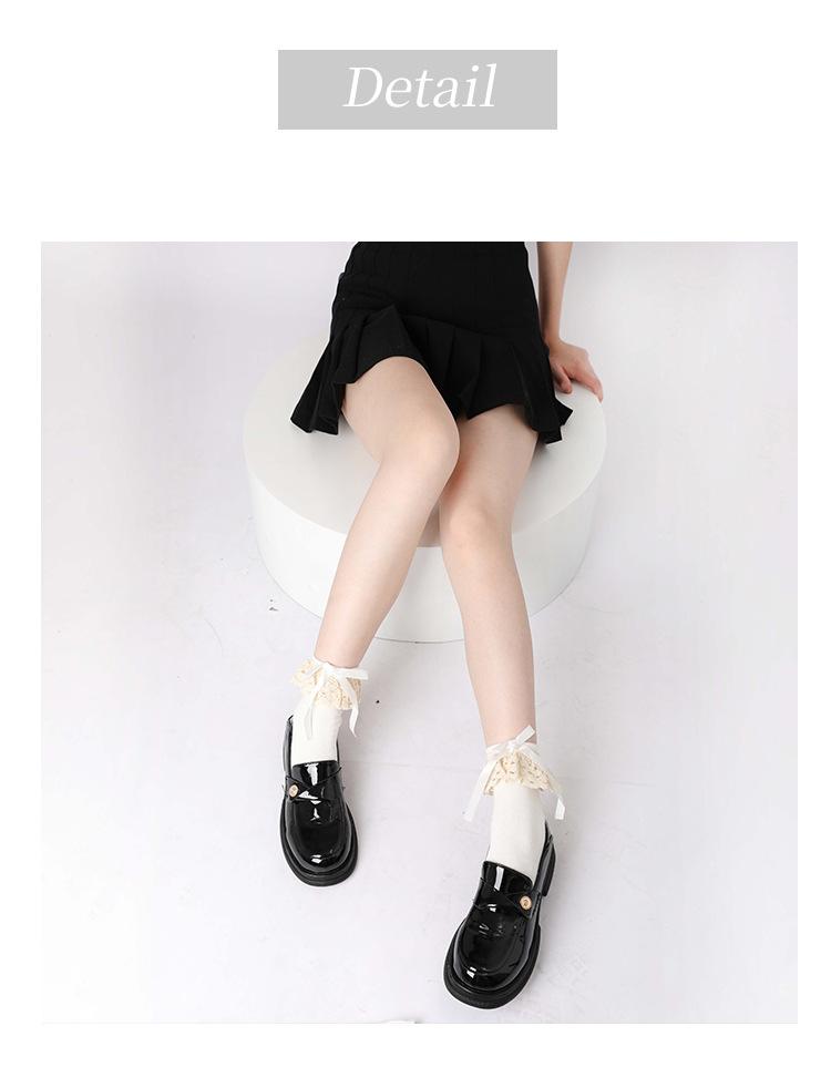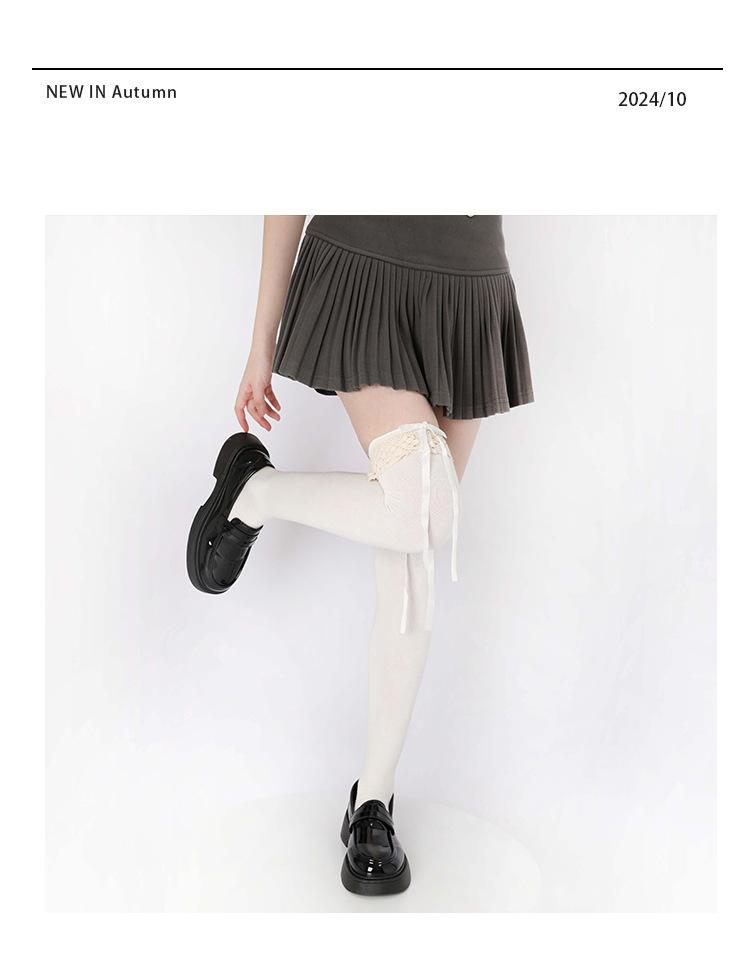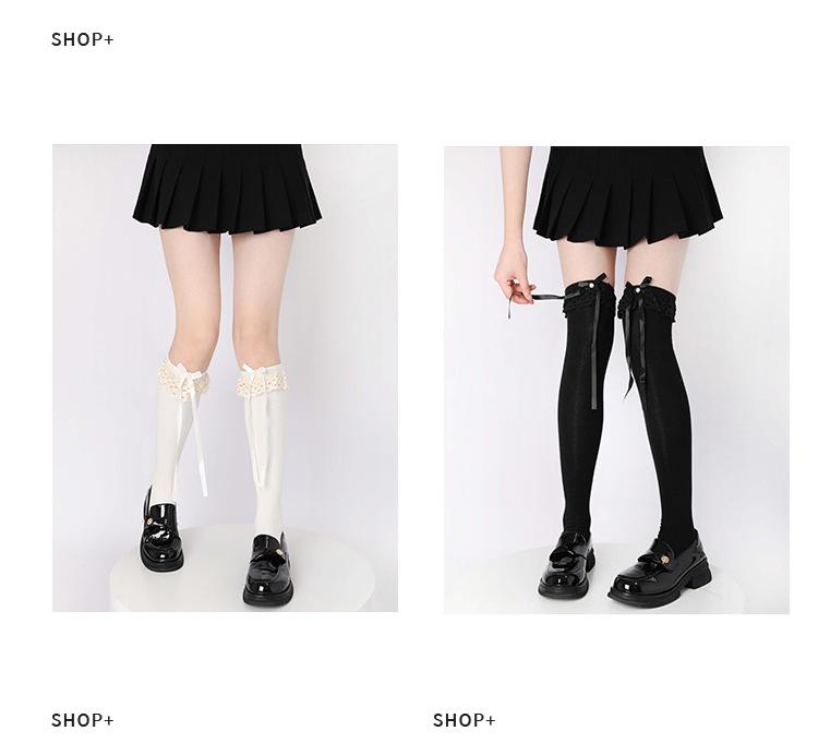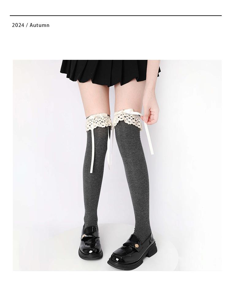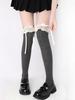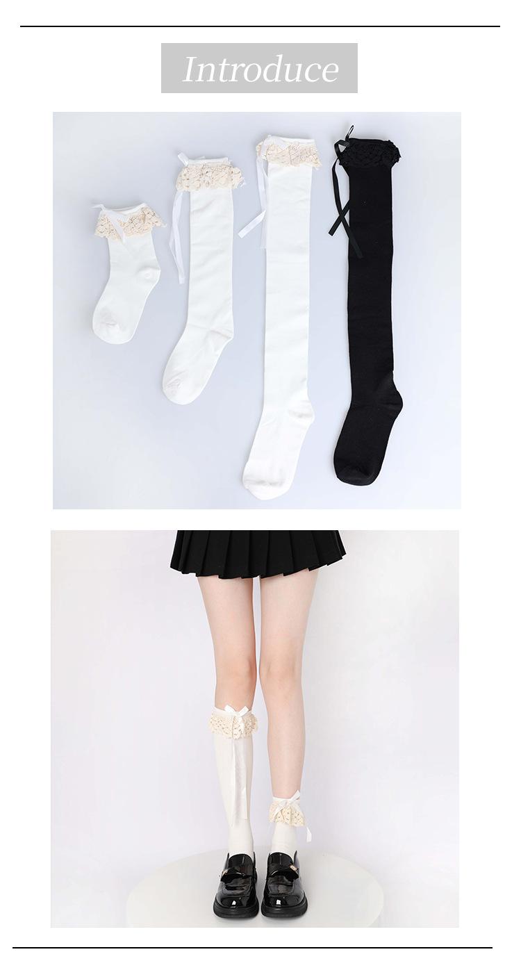 Calcetines hasta la rodilla con lazo blanco, dulces calcetines japoneses Lolita de pantorrilla, calcetines de encaje JK de longitud media de algodón