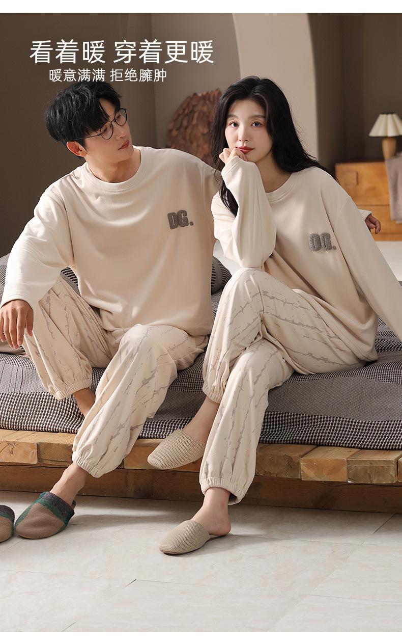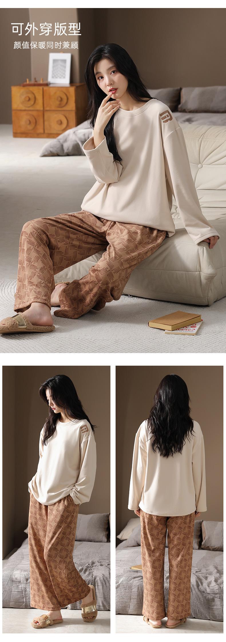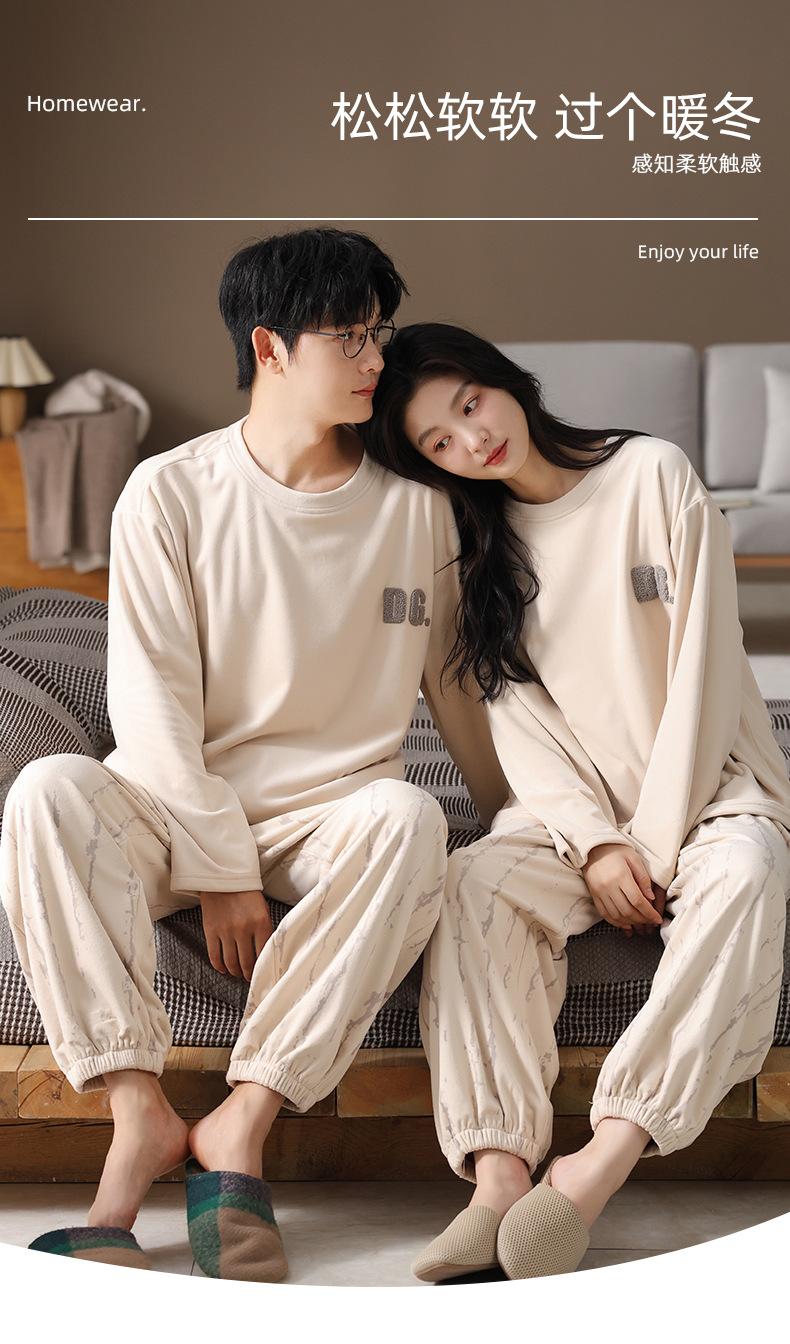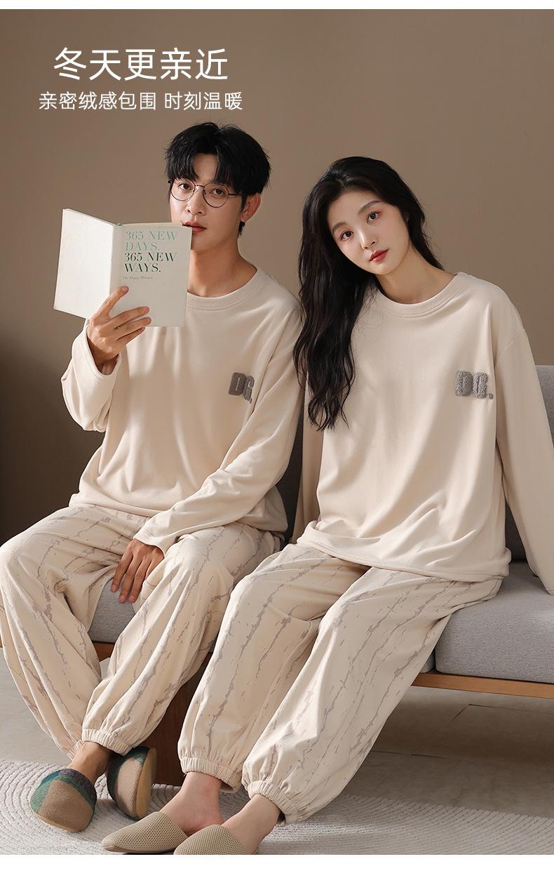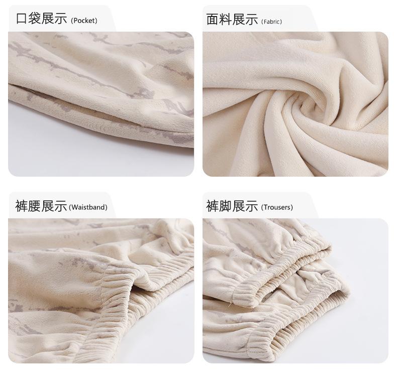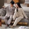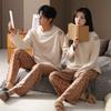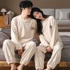 Pijamas de Pareja de Terciopelo de Invierno Isla Jersey Cuello Redondo Cálido Manga Larga Ropa de Abrigo Holgada Casual Juvenil Ropa para el Hogar