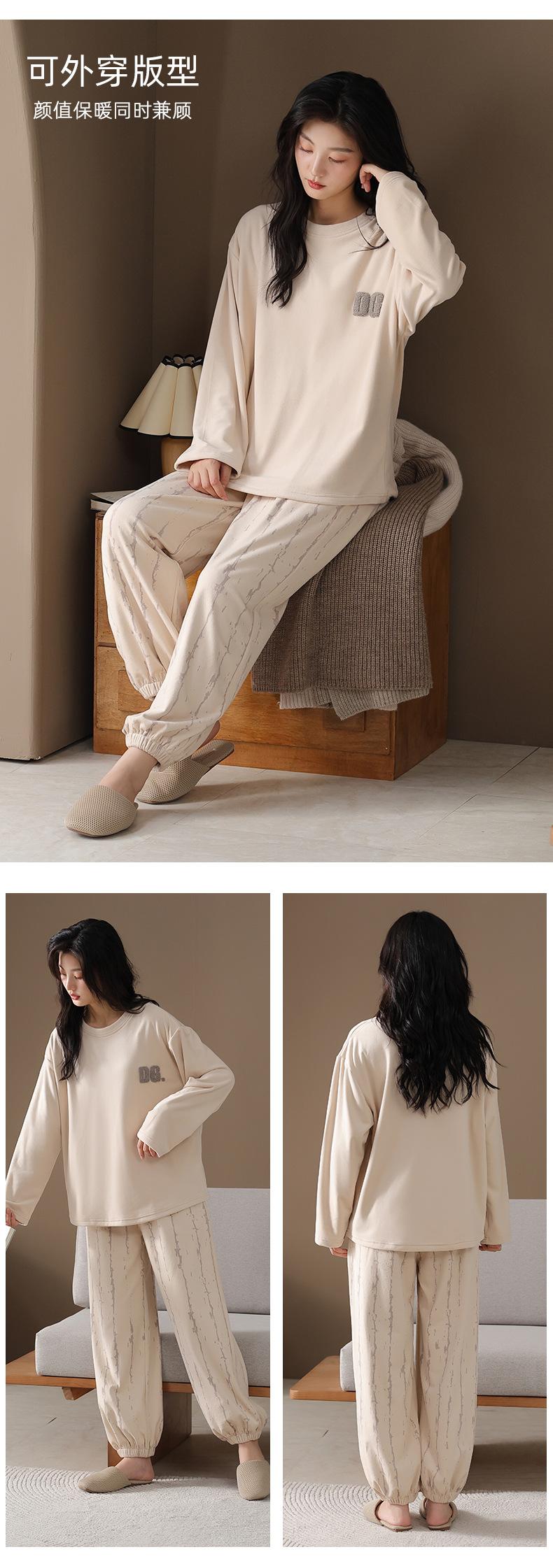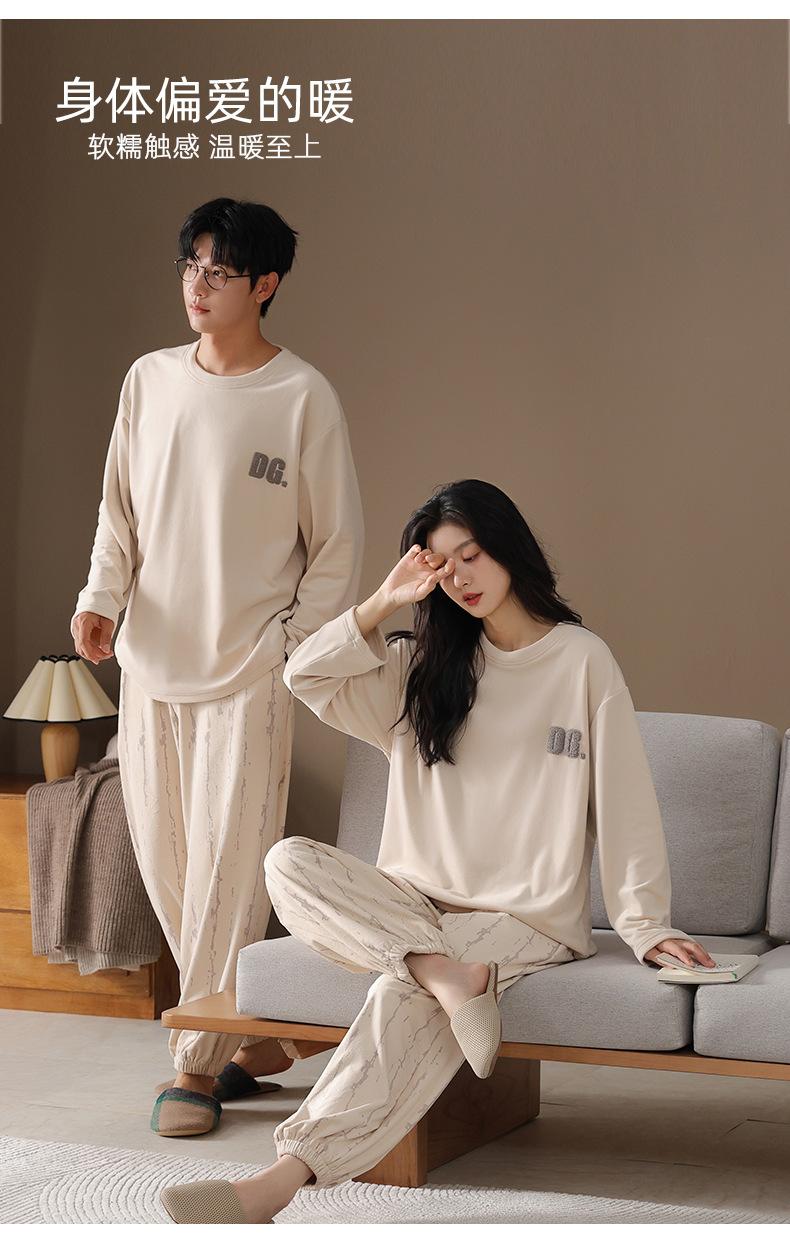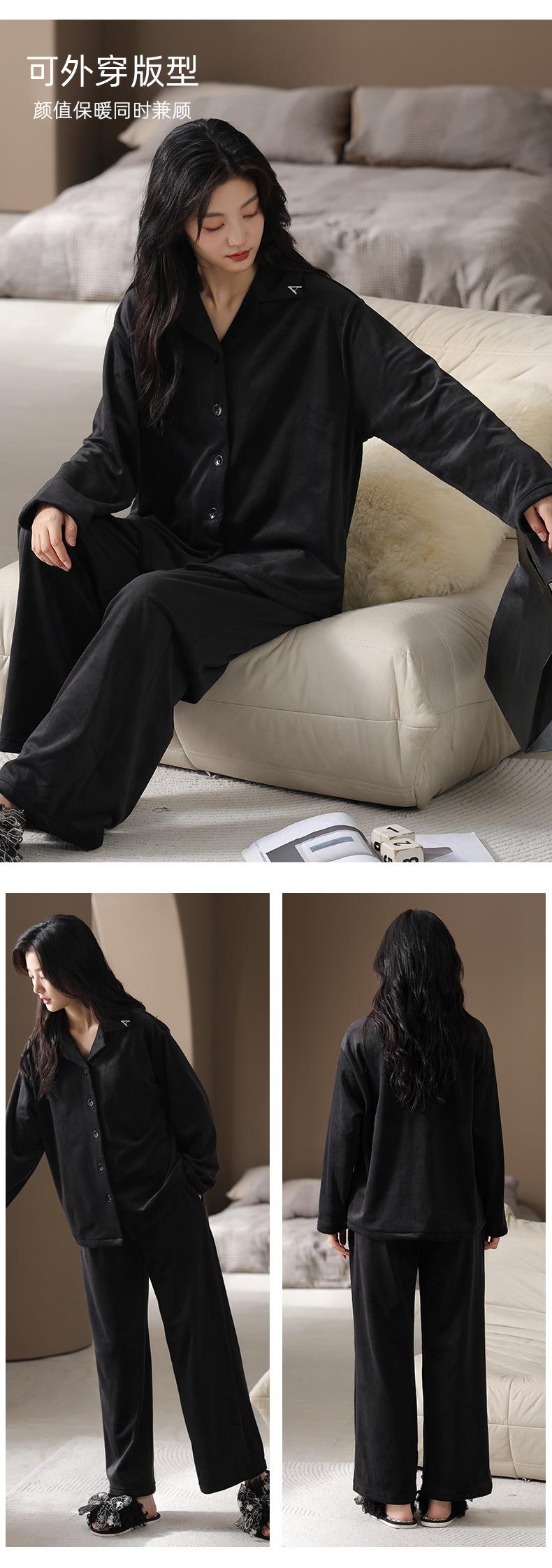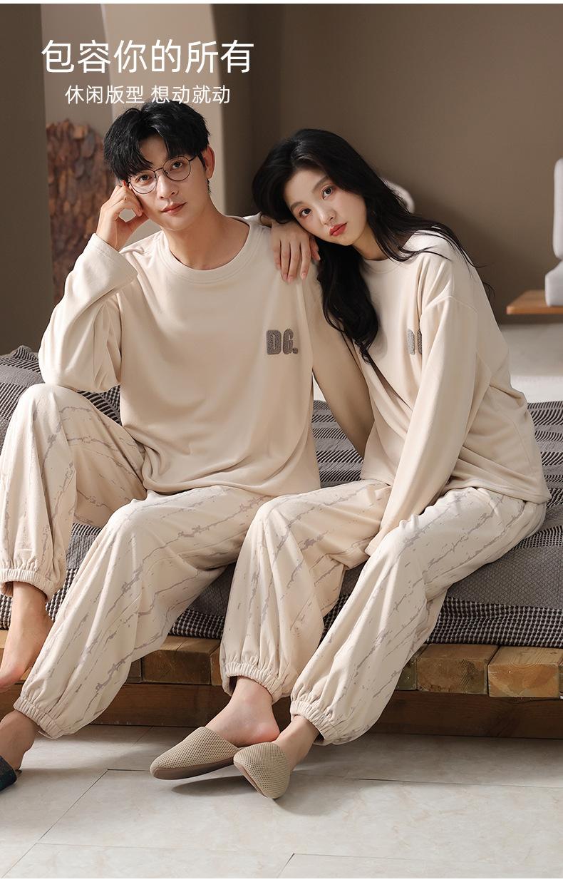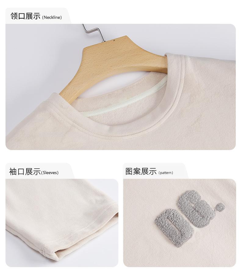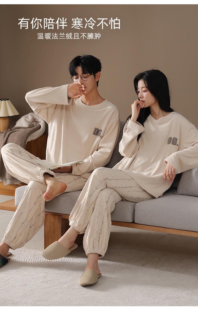 Pijamas de Pareja de Terciopelo de Invierno Isla Jersey Cuello Redondo Cálido Manga Larga Ropa de Abrigo Holgada Casual Juvenil Ropa para el Hogar