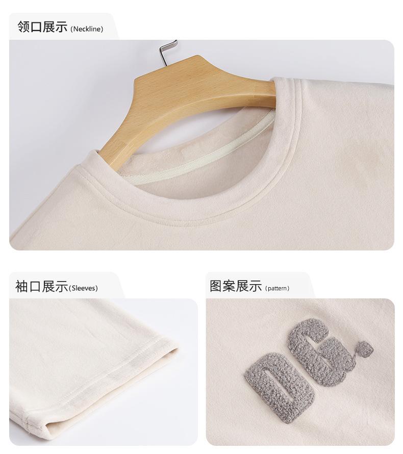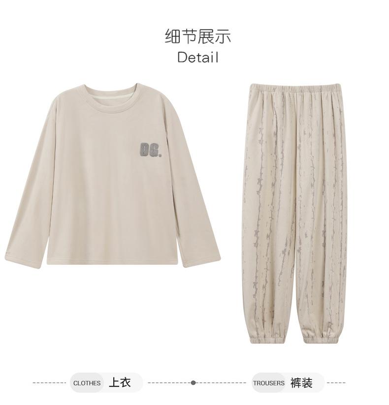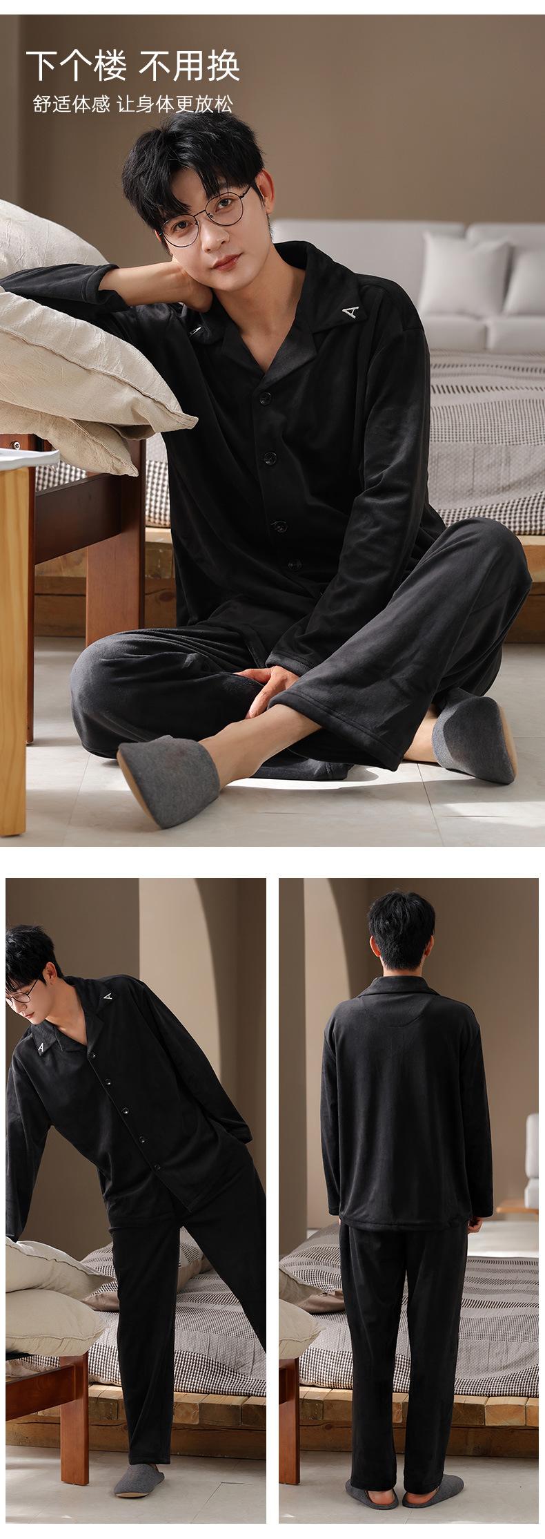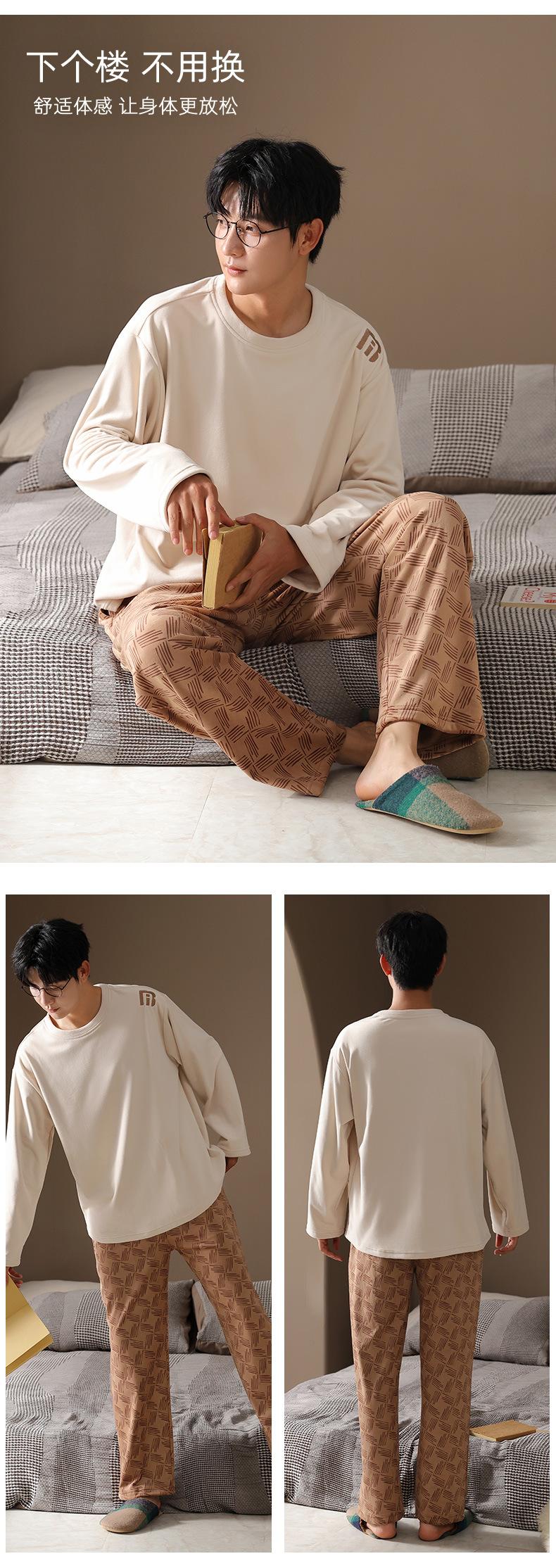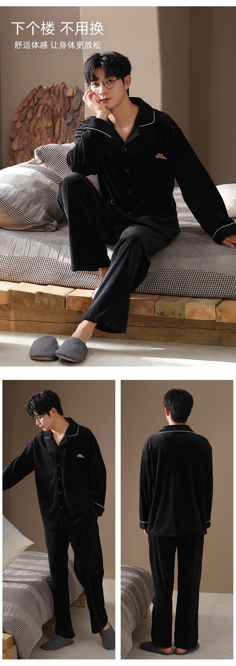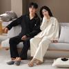 Pijamas de Pareja de Terciopelo de Invierno Isla Jersey Cuello Redondo Cálido Manga Larga Ropa de Abrigo Holgada Casual Juvenil Ropa para el Hogar