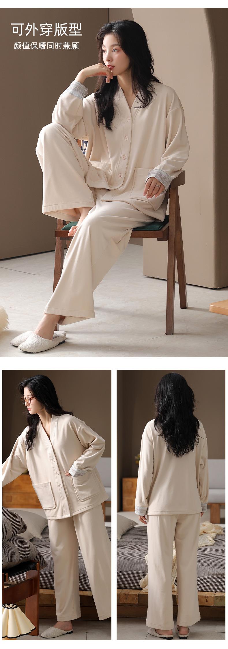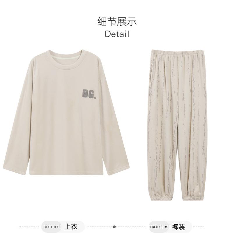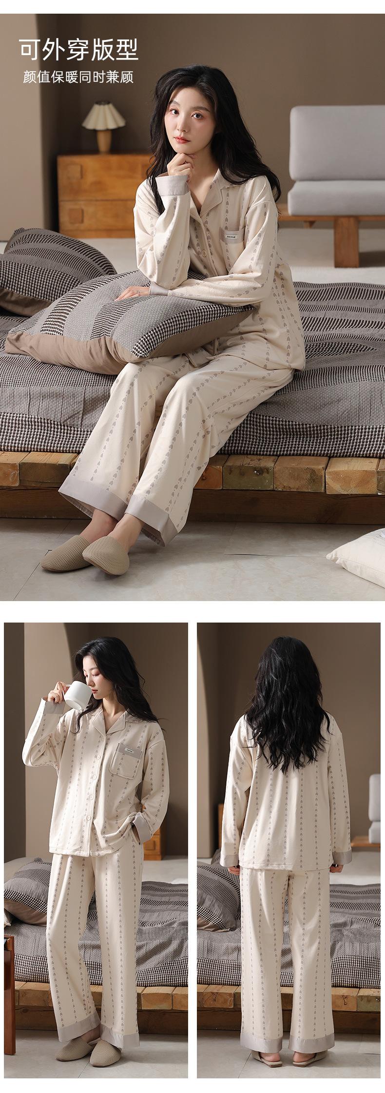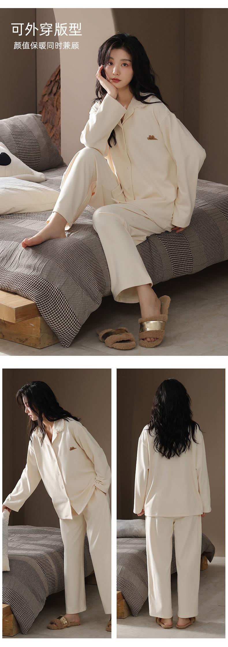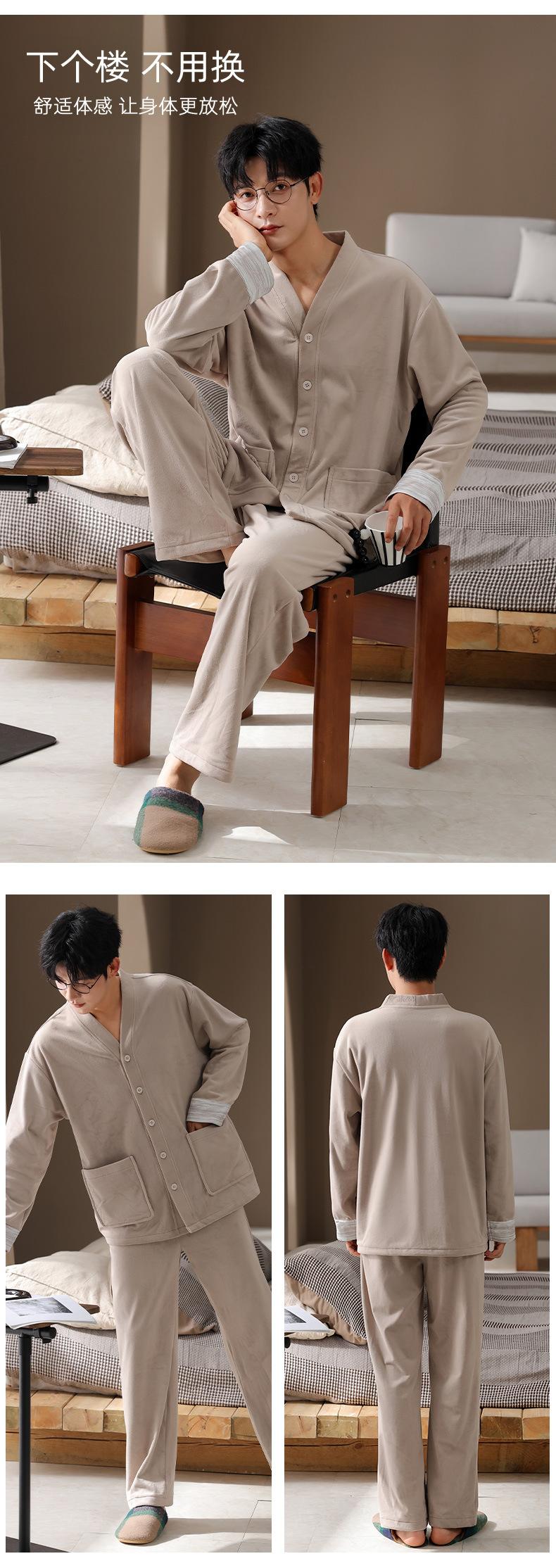 Pijamas de Pareja de Terciopelo de Invierno Isla Jersey Cuello Redondo Cálido Manga Larga Ropa de Abrigo Holgada Casual Juvenil Ropa para el Hogar