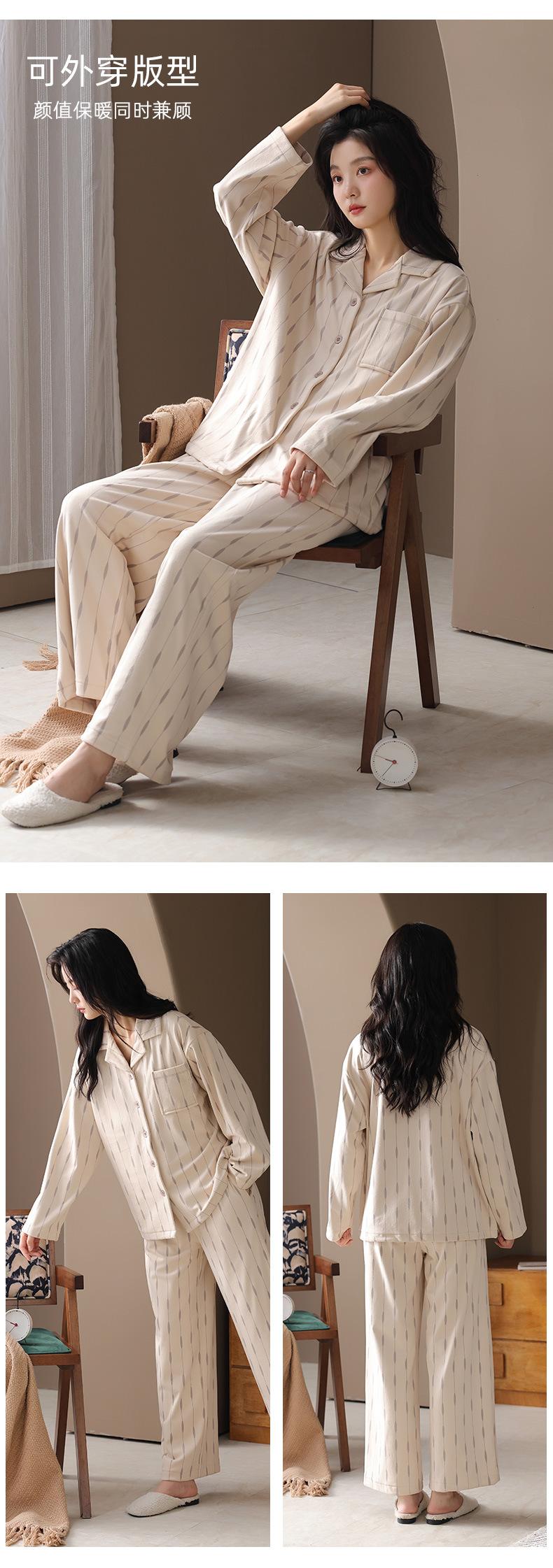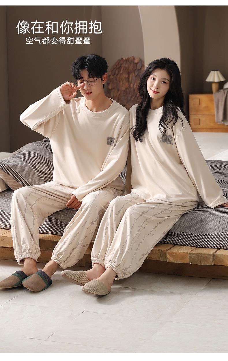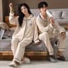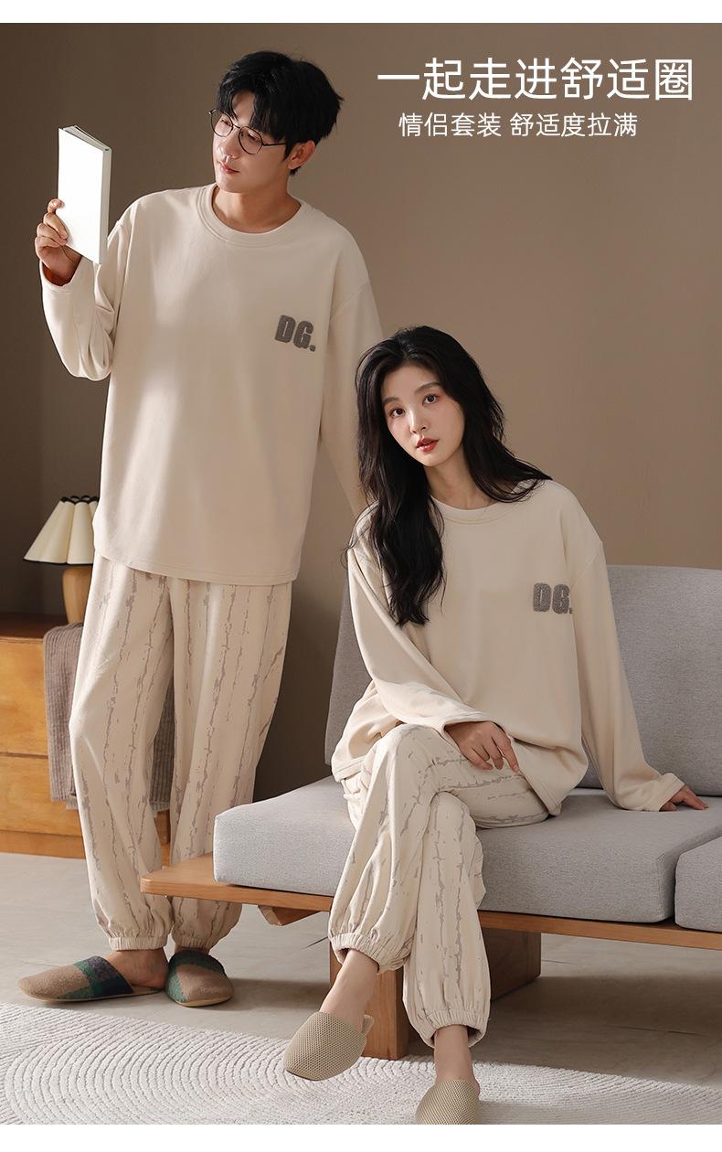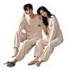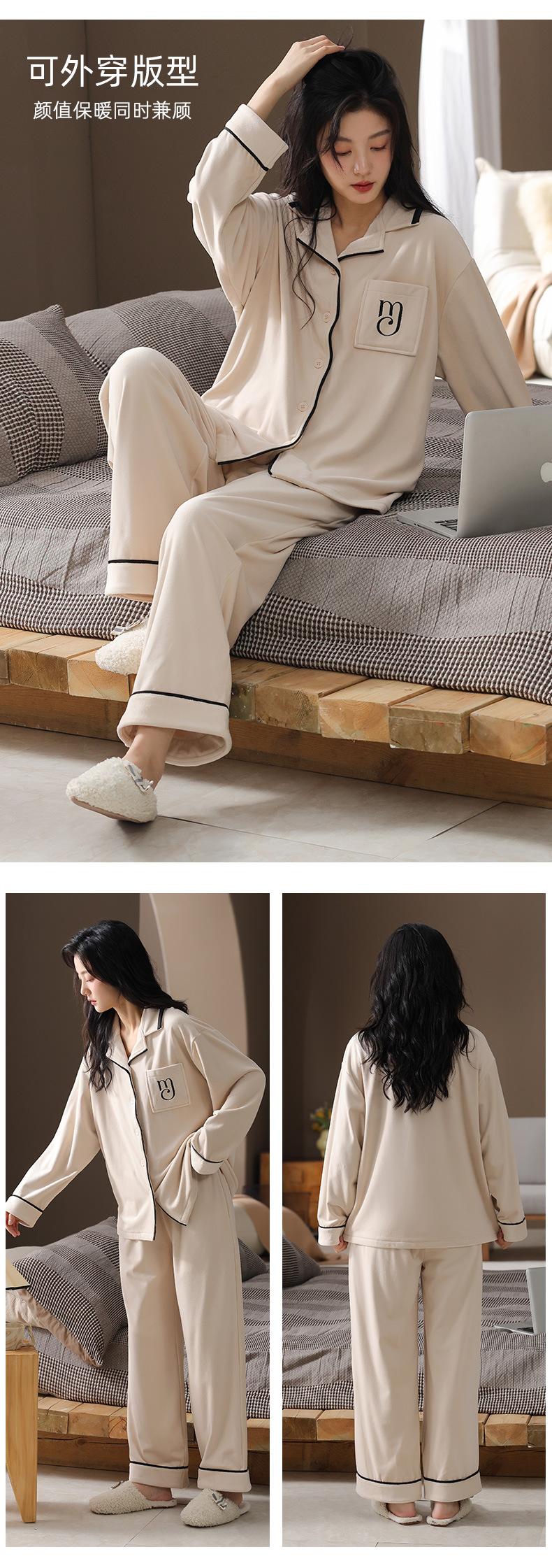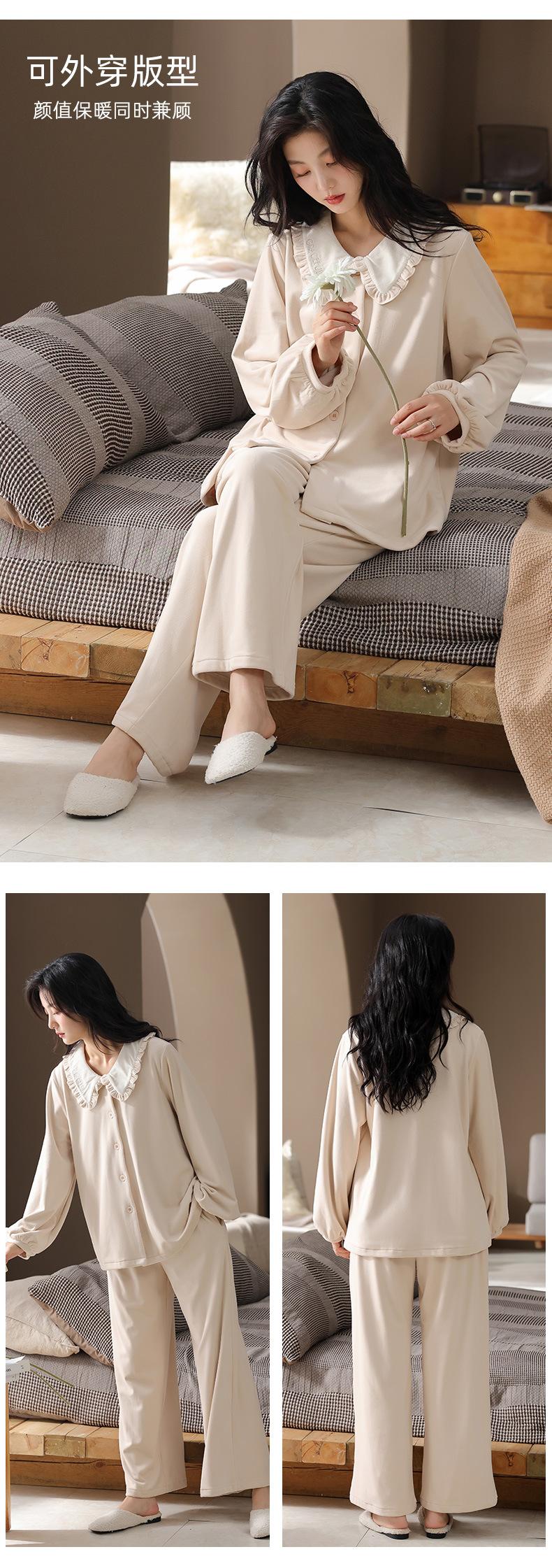 Pijamas de Pareja de Terciopelo de Invierno Isla Jersey Cuello Redondo Cálido Manga Larga Ropa de Abrigo Holgada Casual Juvenil Ropa para el Hogar