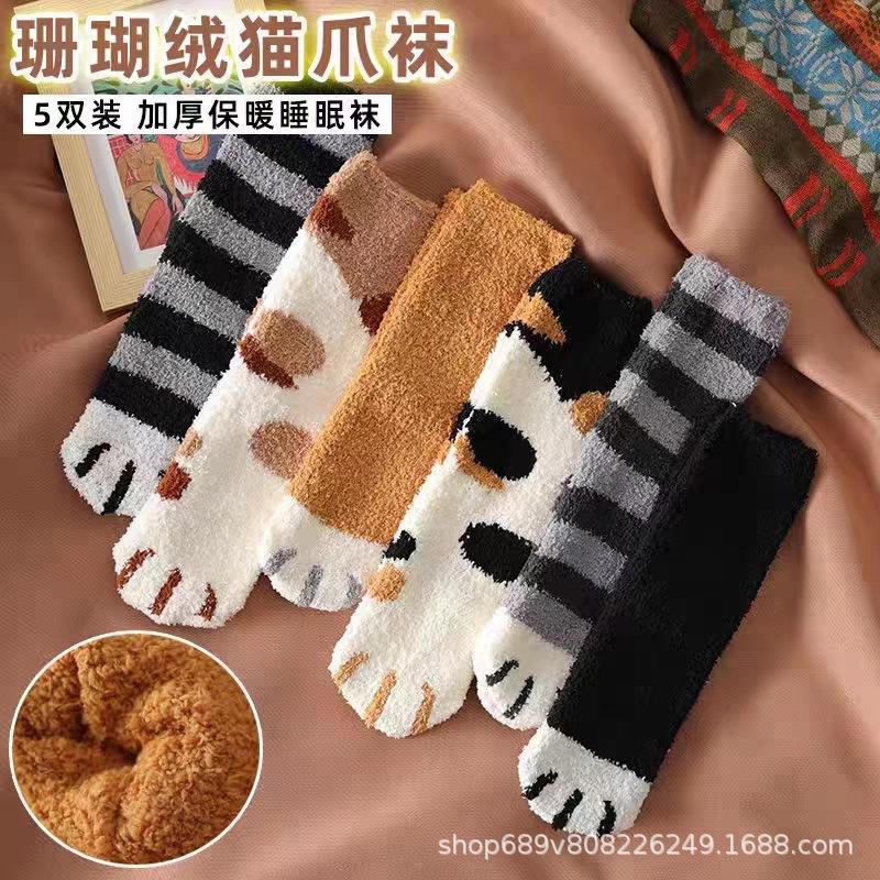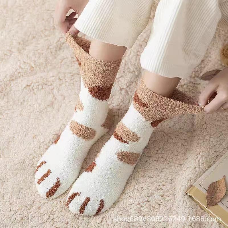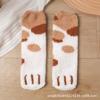 Calcetines de felpa para mujer de forro polar de coral otoño e invierno calcetines cálidos gruesos calcetines de piso pata de gato lindos para el hogar para dormir calcetines de mujer