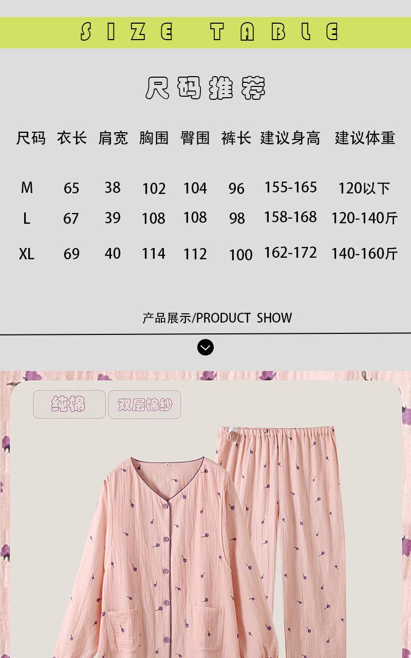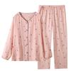 Ropa de Luna de Primavera y Otoño Pijamas para Mujer Gasa de Algodón de Doble Capa Algodón Ajustable Ropa para el Hogar de Lactancia Postparto para Mujeres Embarazadas