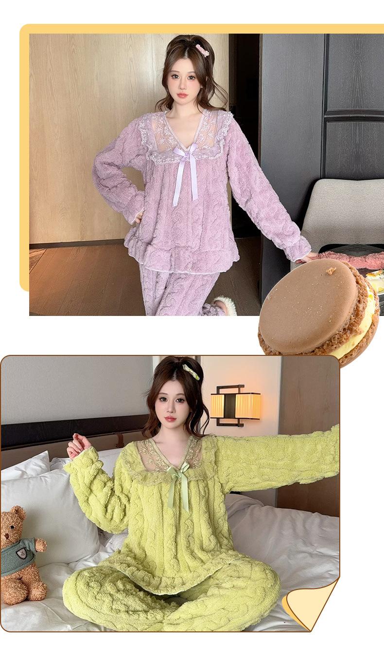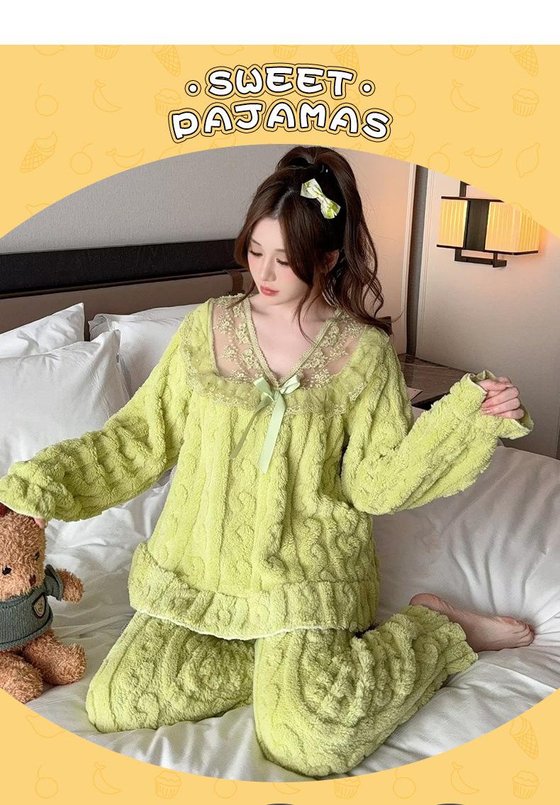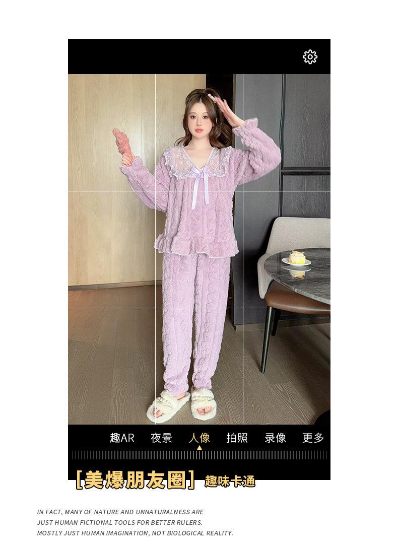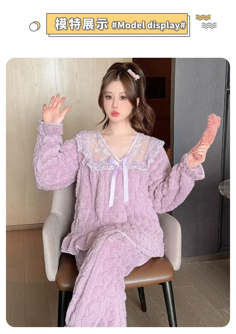 Pijamas femeninos estilo princesa otoño e invierno terciopelo coral grueso forrado con vellón lindo 2023 nuevo traje de franela ropa de hogar