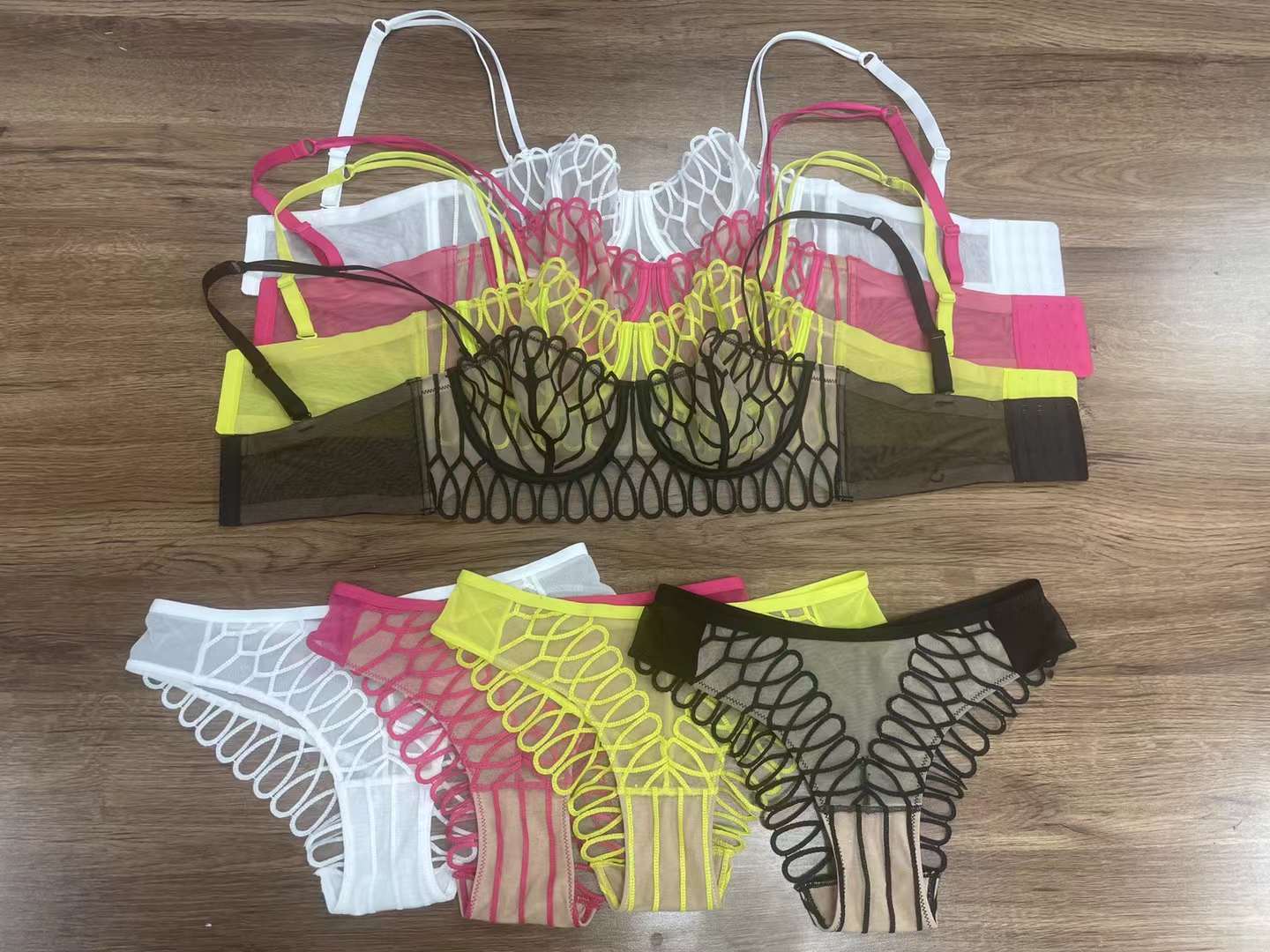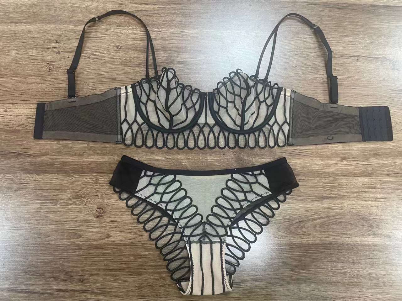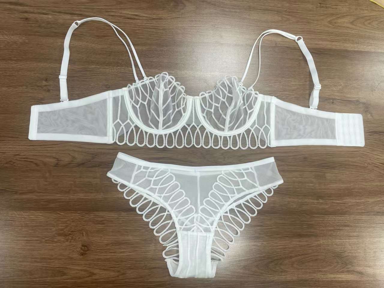 Ropa Interior Estilo Francés para Mujer Sexy Ultradelgada Malla Encaje Bordado Ropa Interior Envoltura de Pecho Pecho Grande Pequeño Anticaída Traje de Sujetador