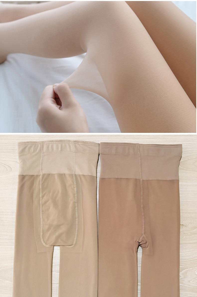 Artefacto de Pierna Desnuda de Doble Capa para Mujer en Otoño e Invierno, Leggings Falsos Semitransparentes, Cualquier Corte con Forro Polar, Medias Panty Translúcidas Negras con Sensación de Desnudez