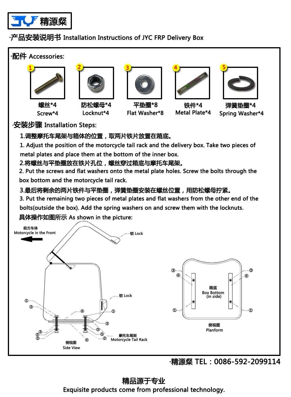 2. Esta caja trasera es universal. Se puede instalar en cualquier automóvil con un portaequipajes trasero. No se hacen agujeros por defecto al salir de fábrica. Después de recibir la caja trasera, haga agujeros en el fondo de la caja según los agujeros del portaequipajes trasero y luego fíjela con pernos. Se incluyen pernos y otros accesorios utilizados para la instalación.