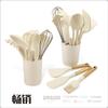 Utensilios de cocina de silicona de 7 piezas, cuchara de cocina vertical, pala, cuchara de sopa combinada, estante de almacenamiento antiadherente, juego de 7 piezas
