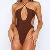 Traje de Baño Popular Europeo y Americano de Una Pieza Bikini de Color Sólido de Una Pieza con Lazado Cruzado Espalda Hermosa Traje de Baño Sexy Comercio Exterior