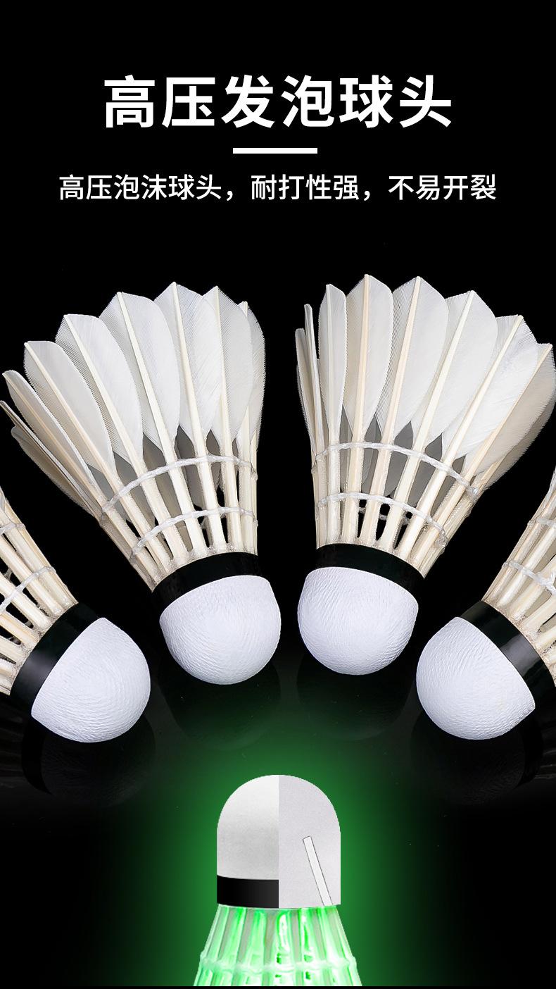 Pluma de ganso luminosa para bádminton, resistente al viento, de nailon y plástico, para entrenamiento al aire libre, fluorescente y nocturna, con luces.