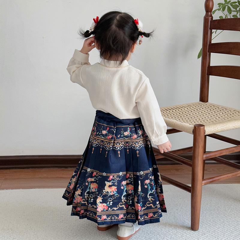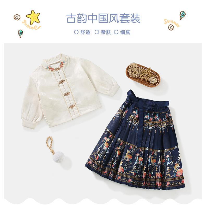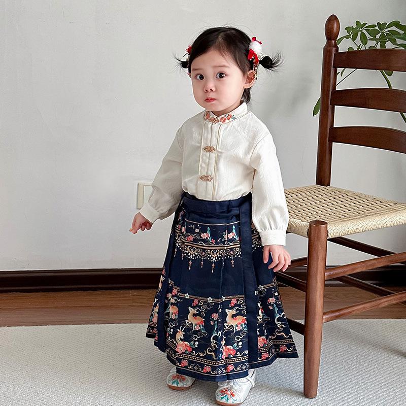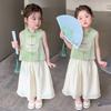 Traje de dos piezas para niños traje de estilo chino camisa de manga larga para bebé de un solo botón chaleco falda ropa para niños