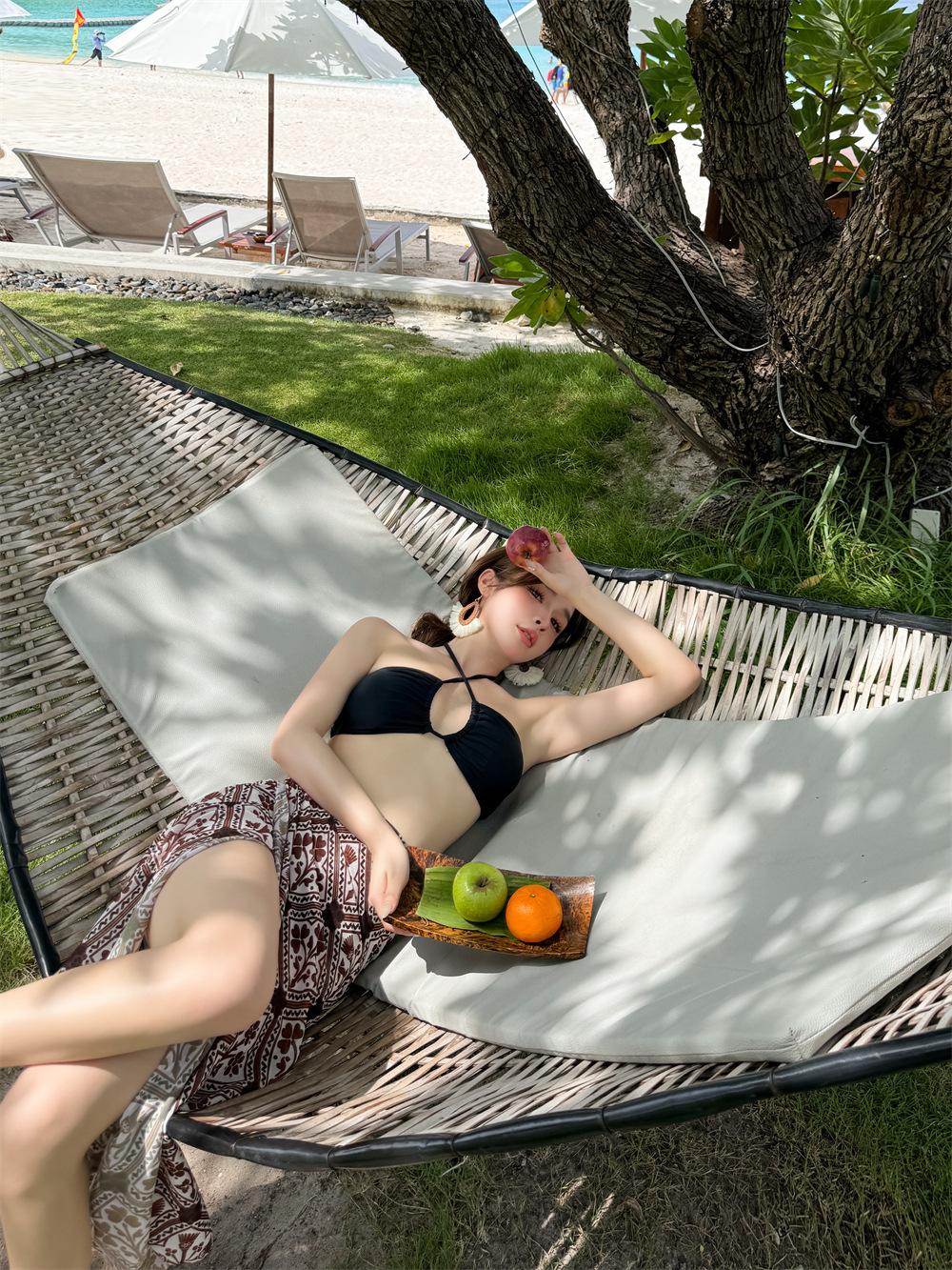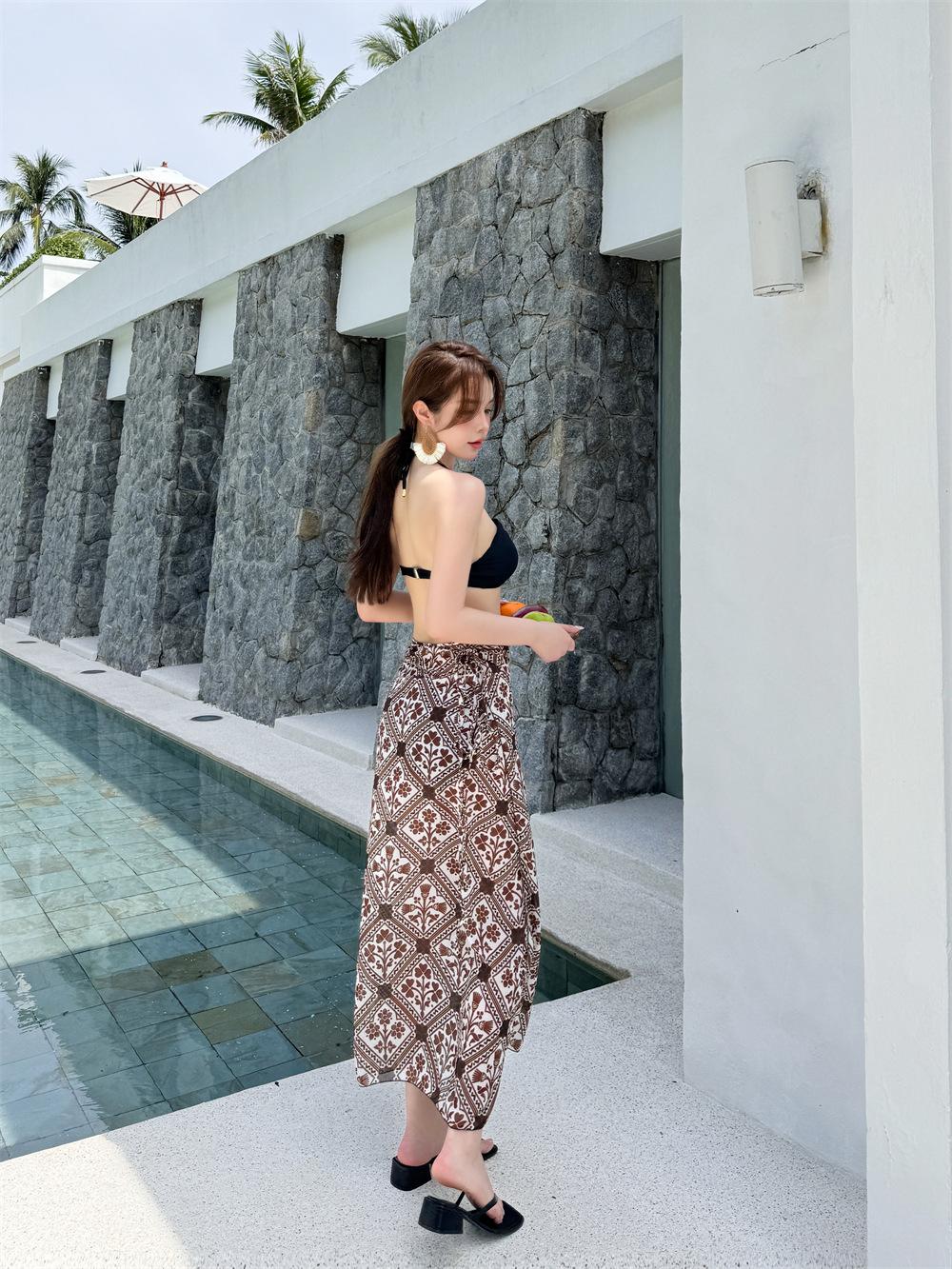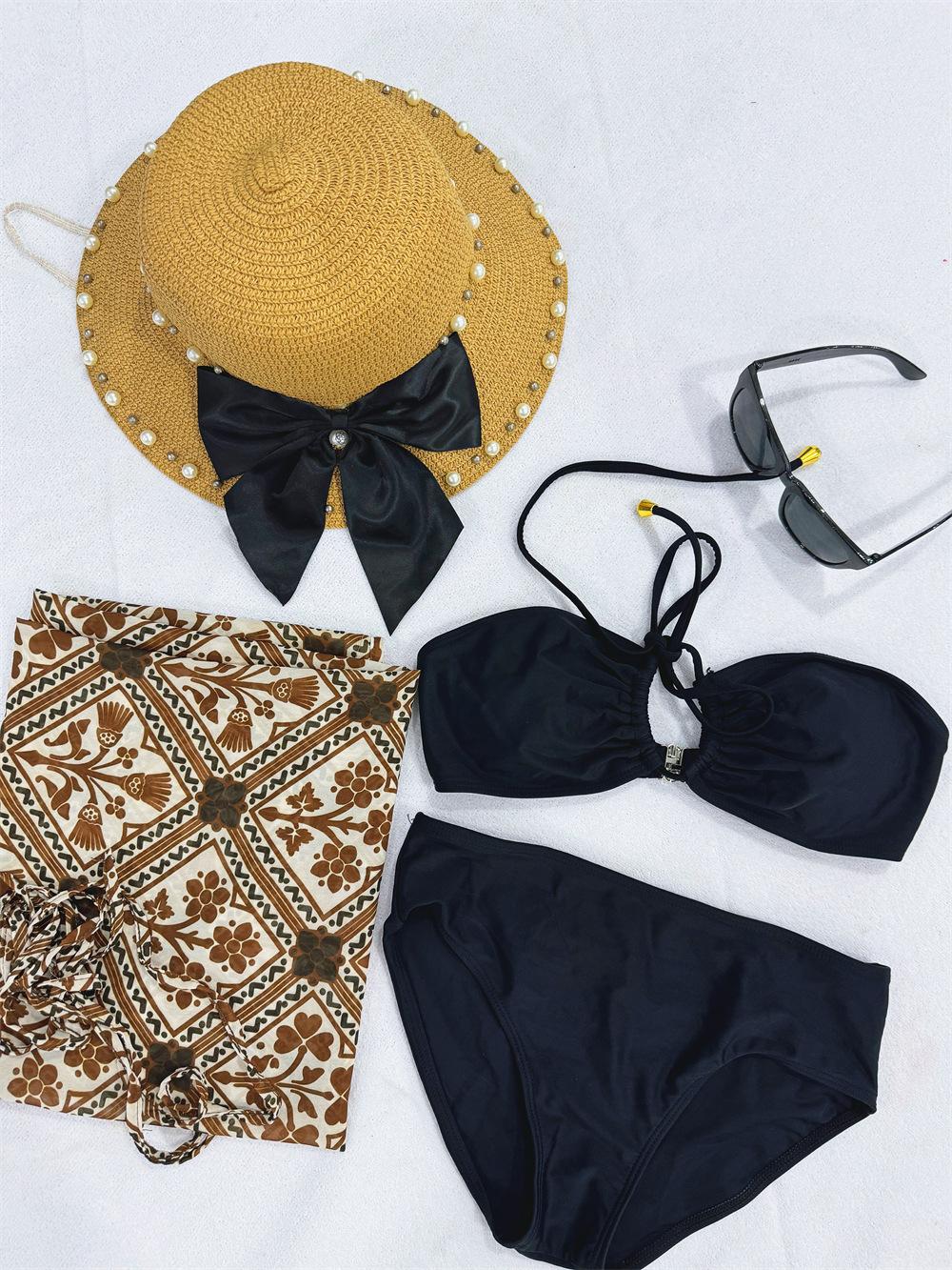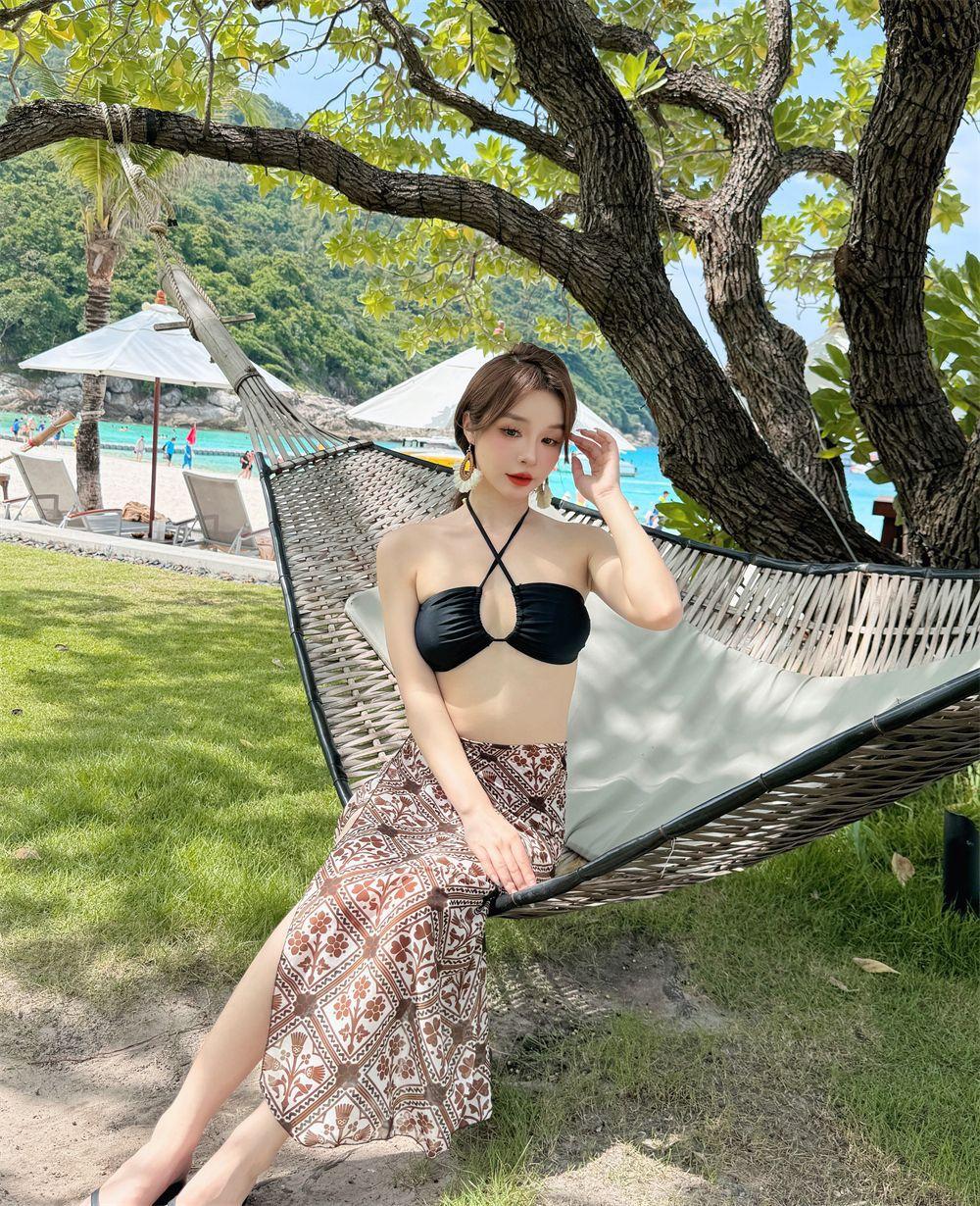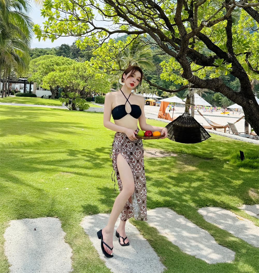 Traje de baño dividido estilo conservador Bikini conjunto de tres piezas Traje de baño suave y fresco para niña Vacaciones en la playa Aguas termales