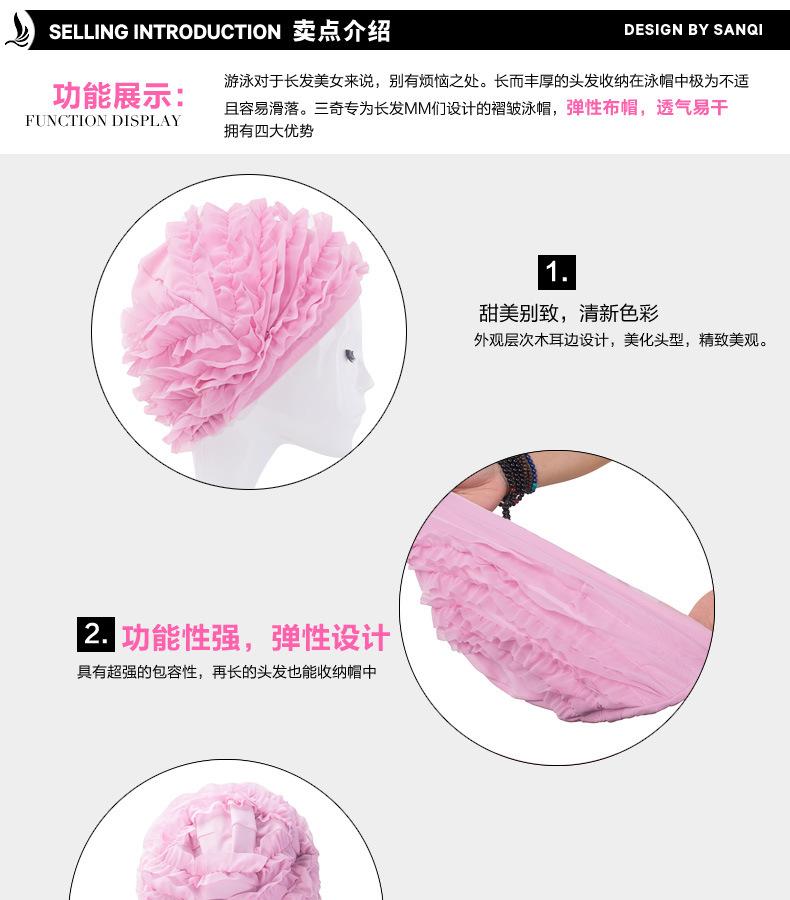 Gorro de Natación Sanqi para Mujer Cabello Largo Coreano Protección para los Oídos Cómodo Moda Nuevo Equipo Deportivo Grande Tela Gorro de Natación para Aguas Termales
