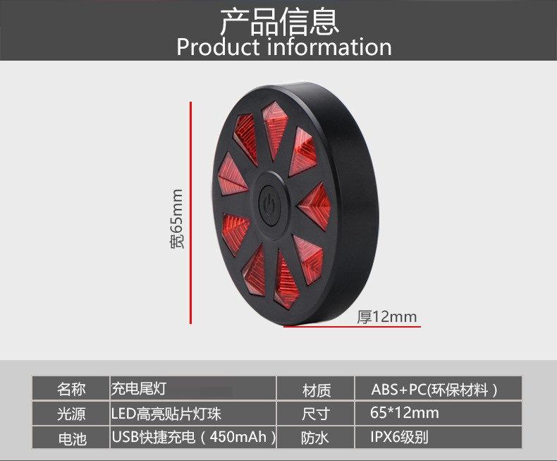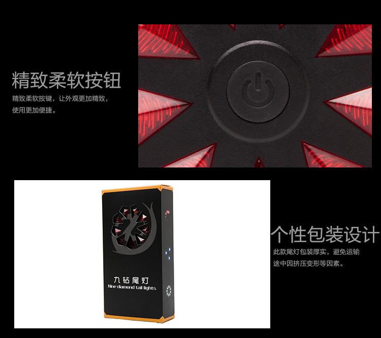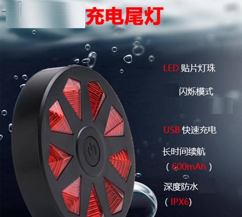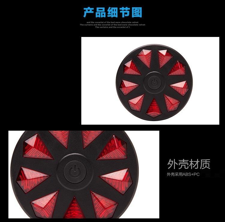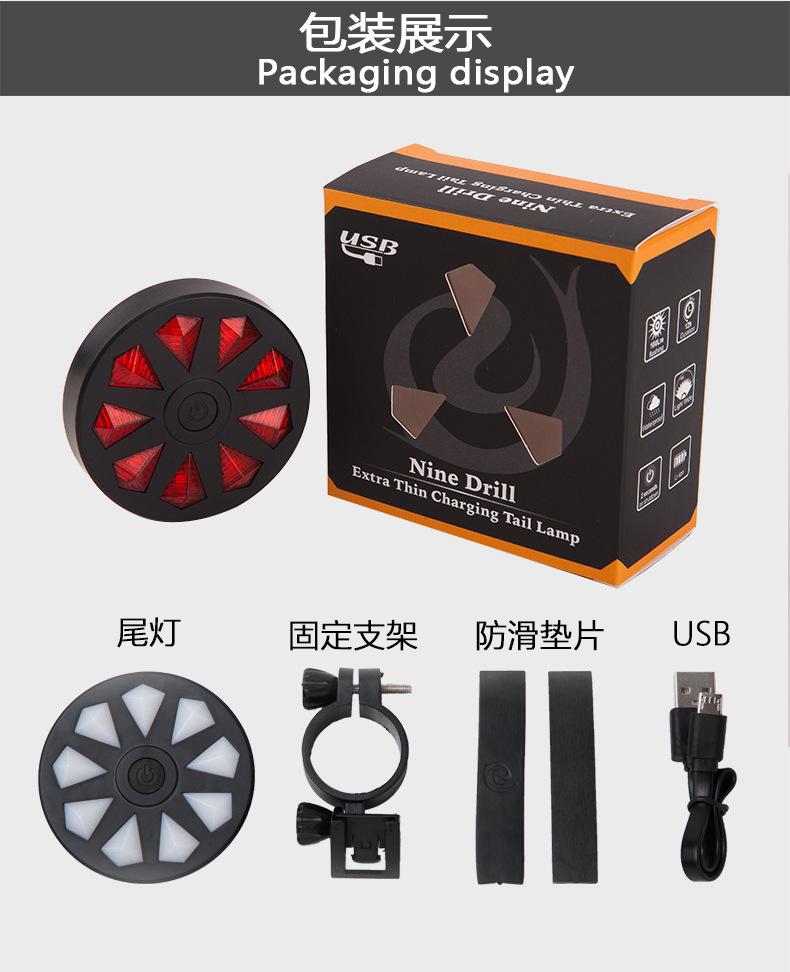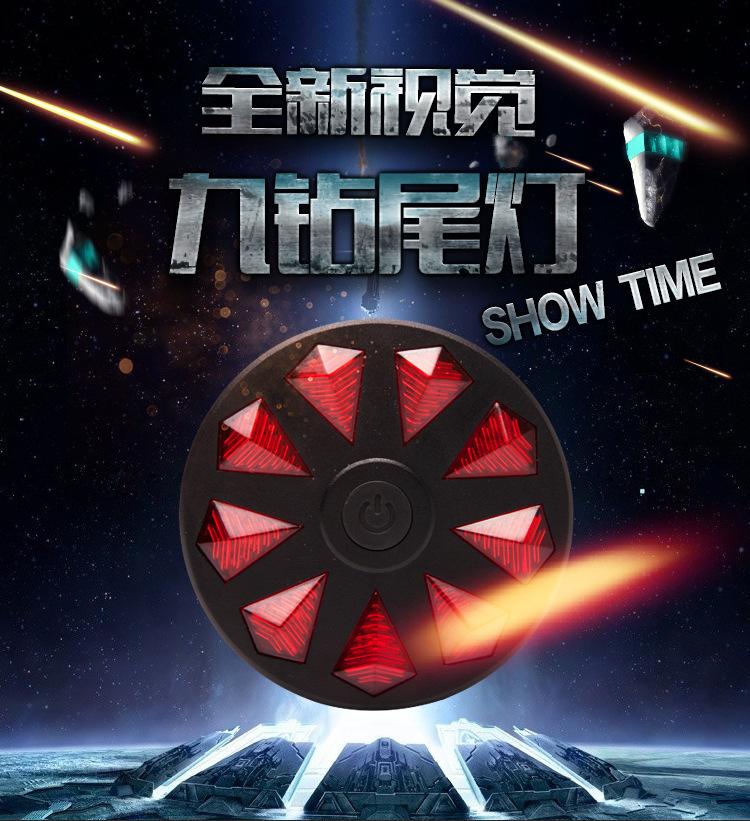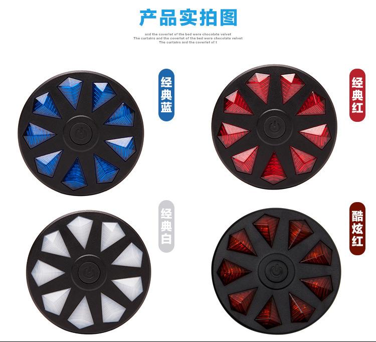 Nueva luz trasera de bicicleta nueve-Diamante recargable por USB luz de advertencia de seguridad LED para paseo nocturno luz redonda
