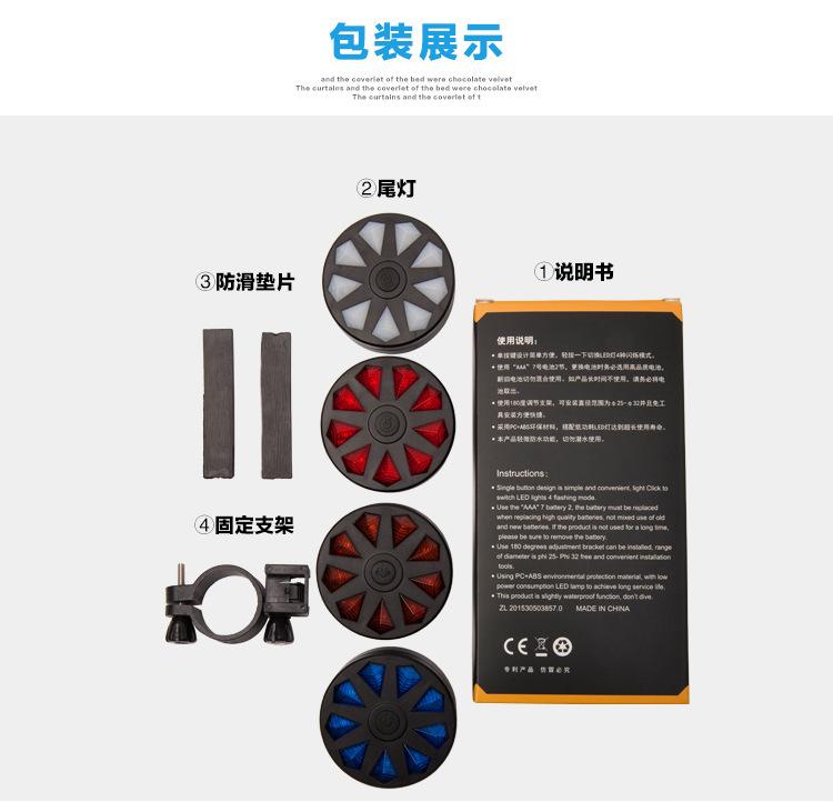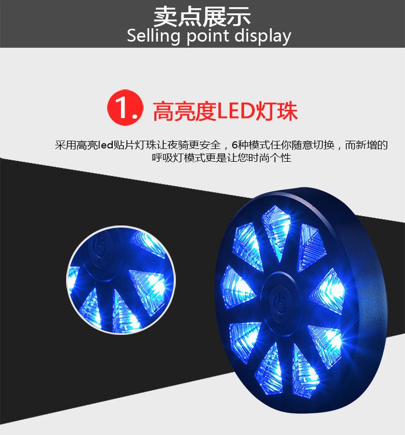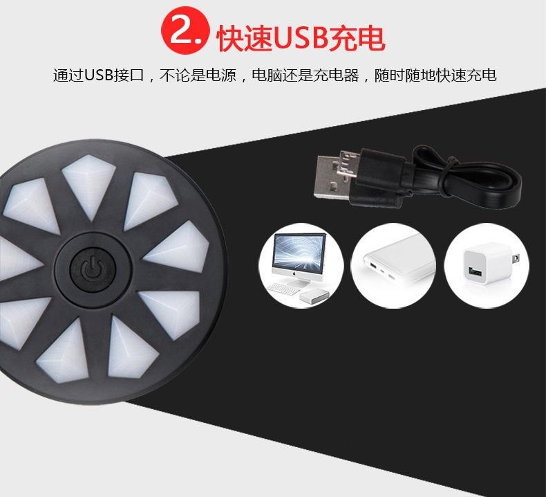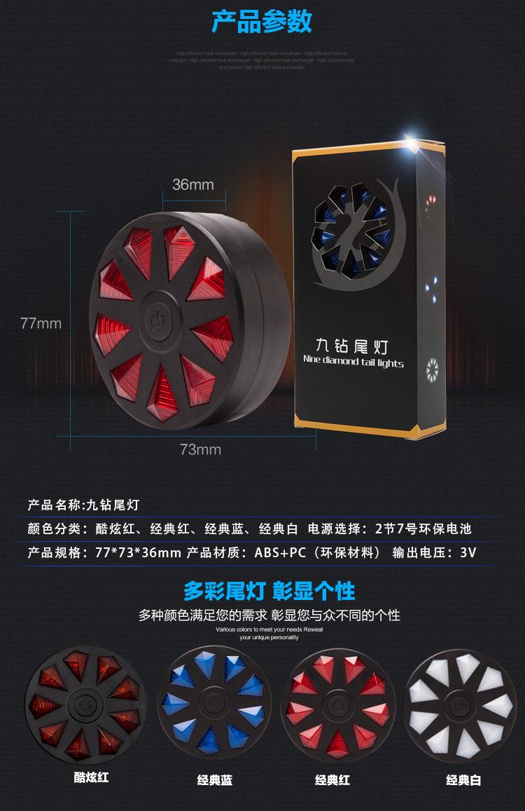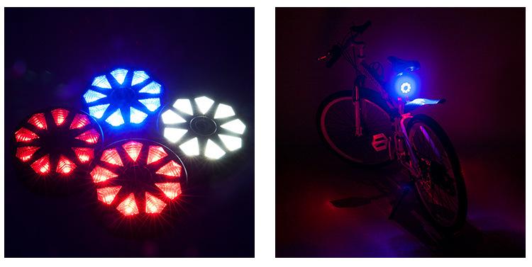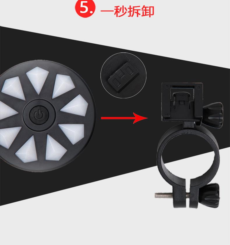 Nueva luz trasera de bicicleta nueve-Diamante recargable por USB luz de advertencia de seguridad LED para paseo nocturno luz redonda