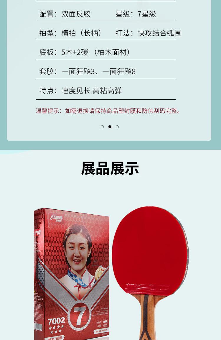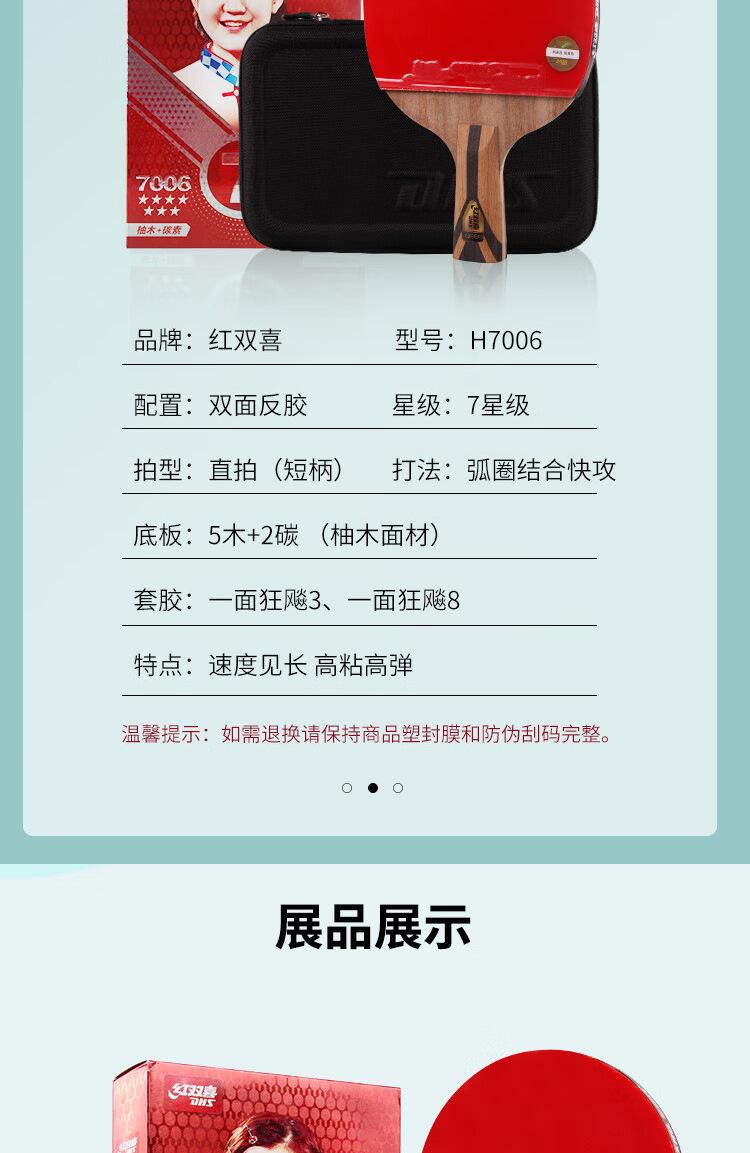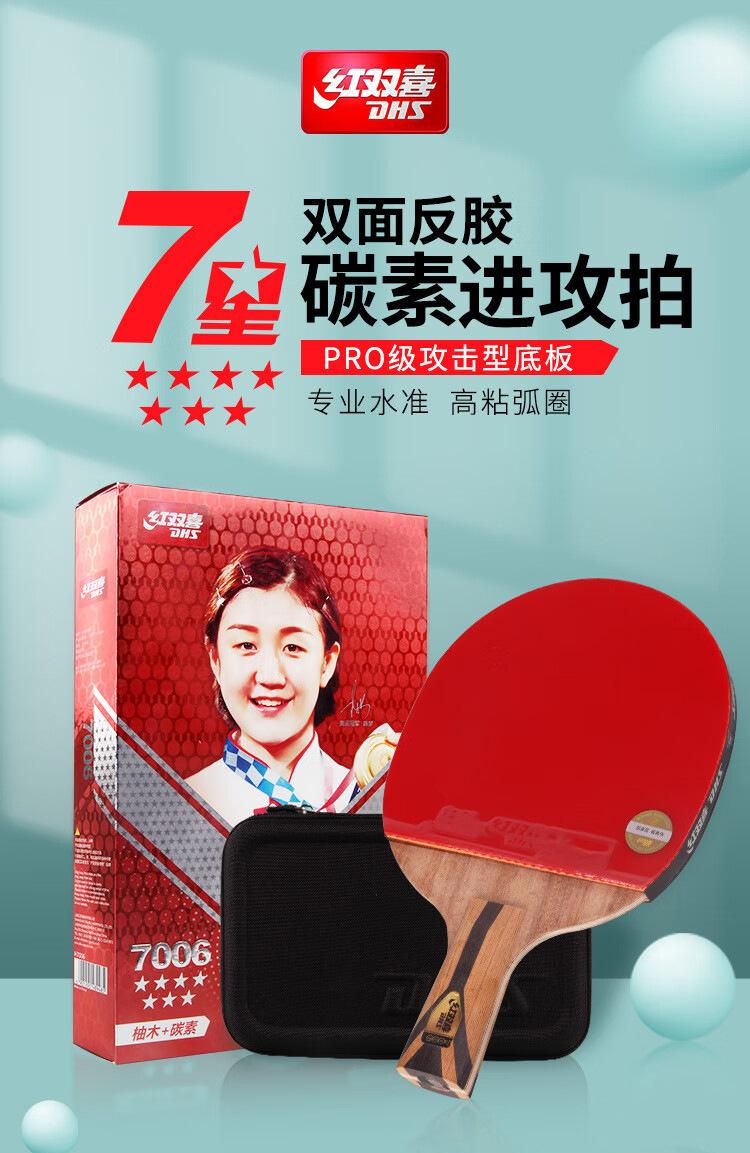 Mayoreo rojo doble felicidad nueva raqueta de tenis de mesa 7 estrellas superficie de teca base de carbono anti-pegamento avanzado H7002 H7006