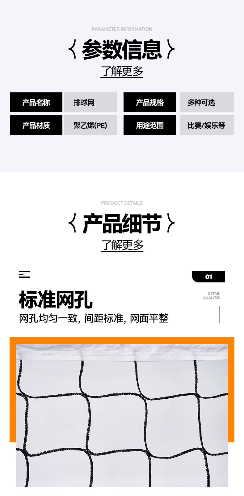 Polyethylene with knotted mesh, Single-edged knottless volleyball net, Four-edged knottless volleyball net
