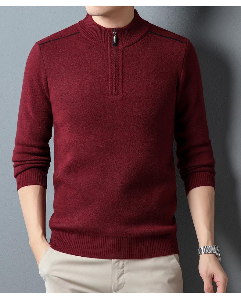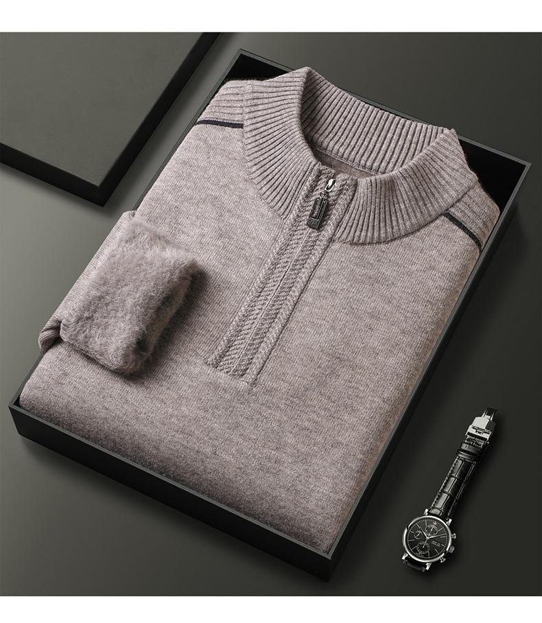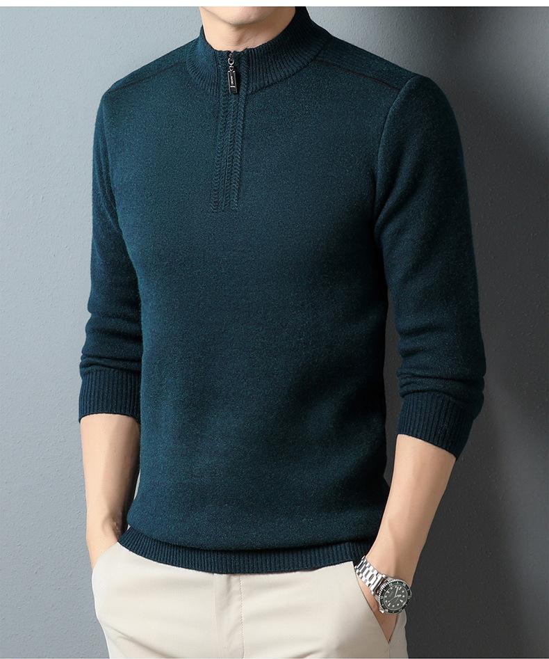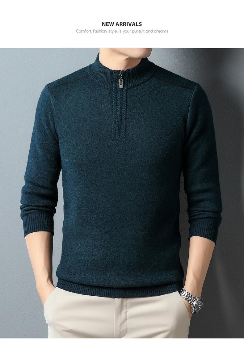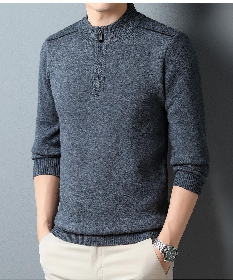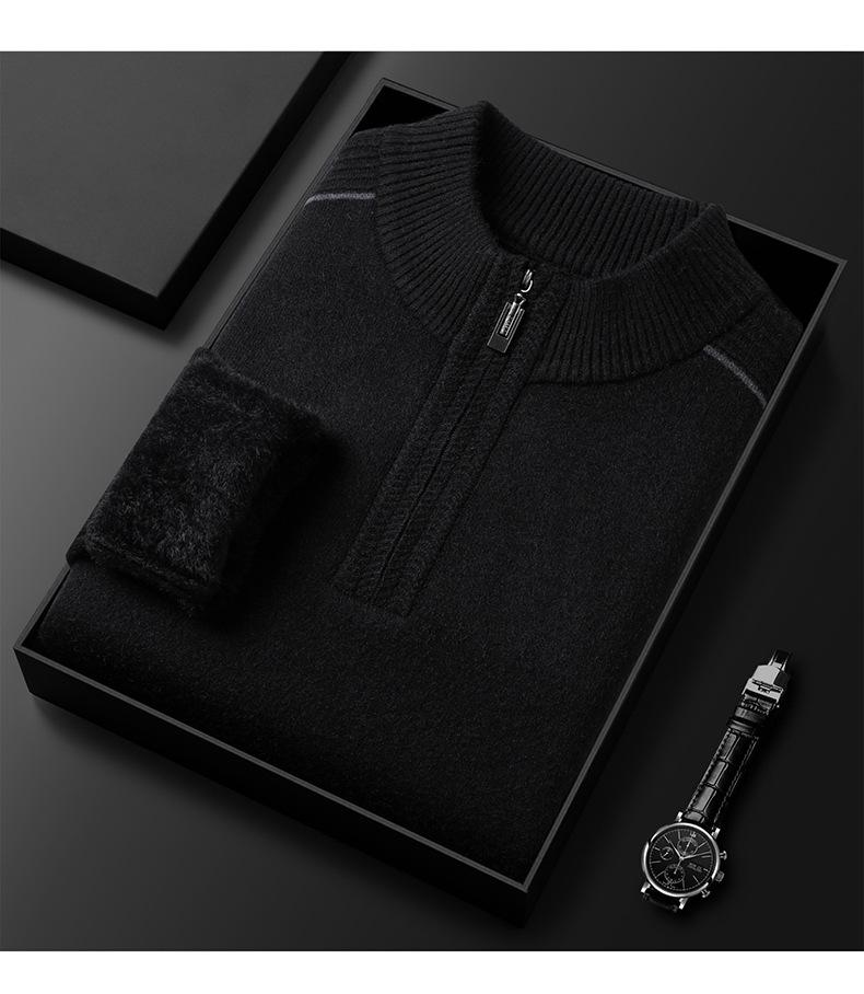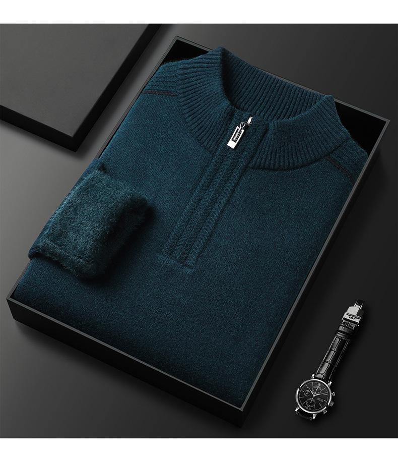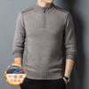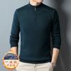 Suéter de terciopelo de una pieza con cremallera y cuello semi alto para hombre, jersey de otoño e invierno, suéter de color sólido, juvenil, cuello redondo, cálida camiseta base