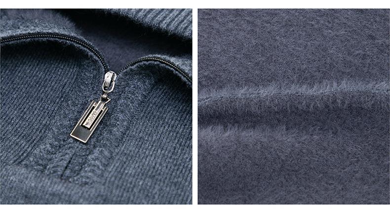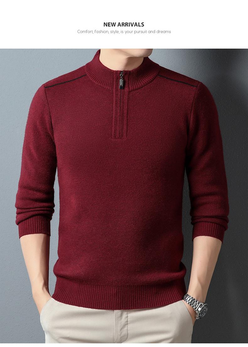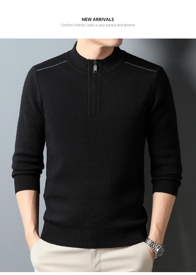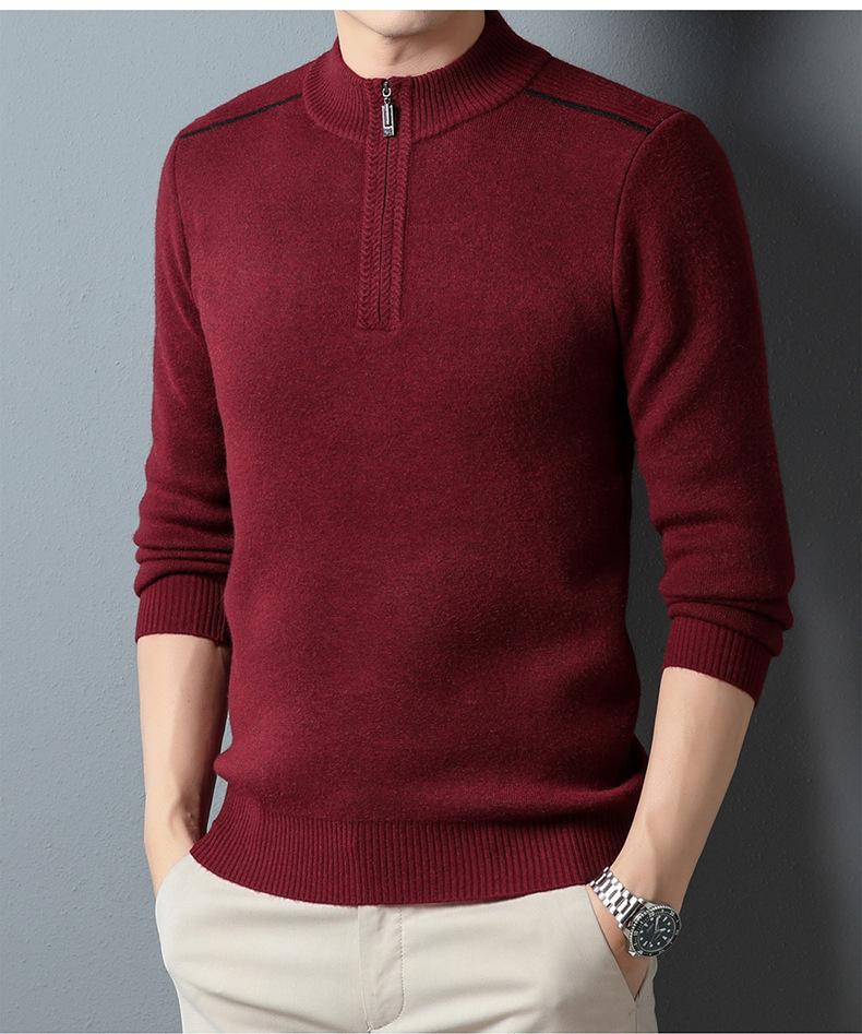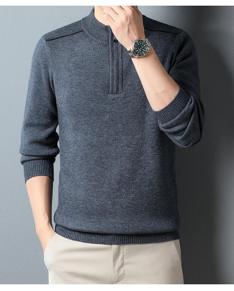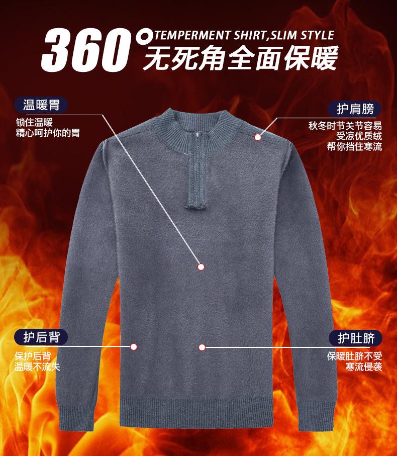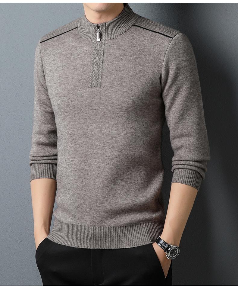Suéter de terciopelo de una pieza con cremallera y cuello semi alto para hombre, jersey de otoño e invierno, suéter de color sólido, juvenil, cuello redondo, cálida camiseta base