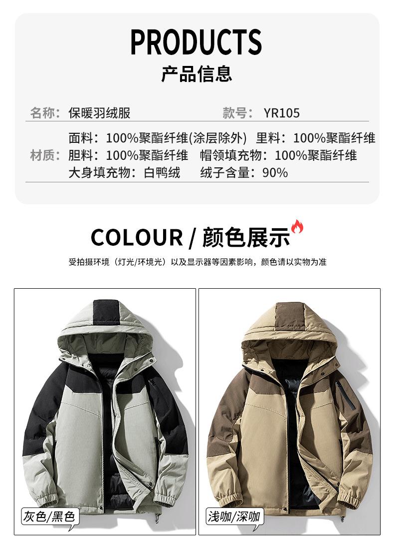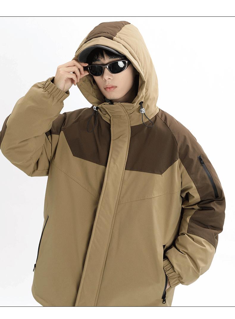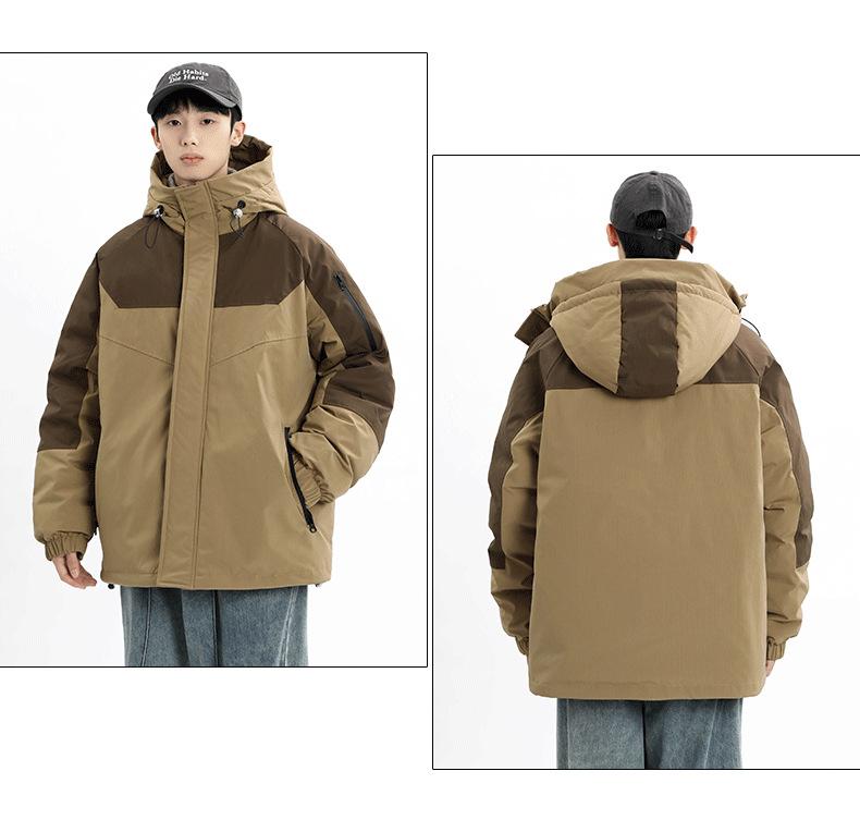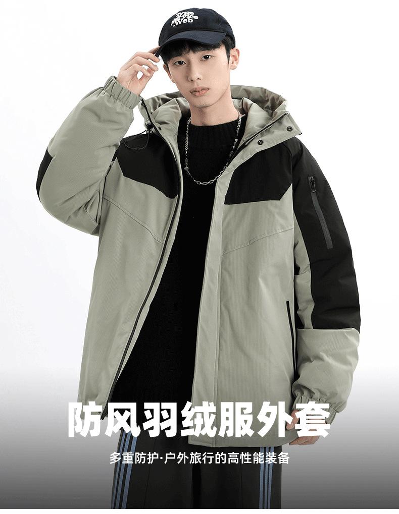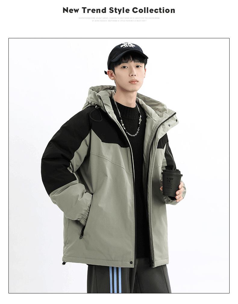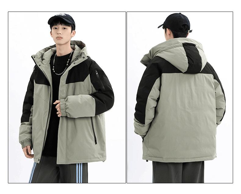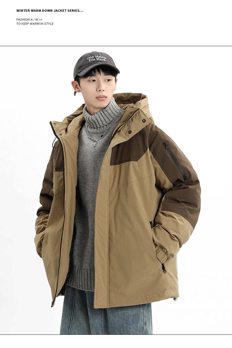 Chaqueta Cálida Gruesa para Invierno para Hombre con Forro Polar, Bloque de Color con Capucha, Ropa Casual de Invierno, Chaqueta de Plumón de Pato Blanco 90