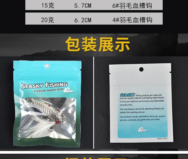 Fábrica al por mayor, cebo Luya, lentejuelas para peces con plumas, anzuelo para agua dulce, pico de pesca, bolsa de cebo falso