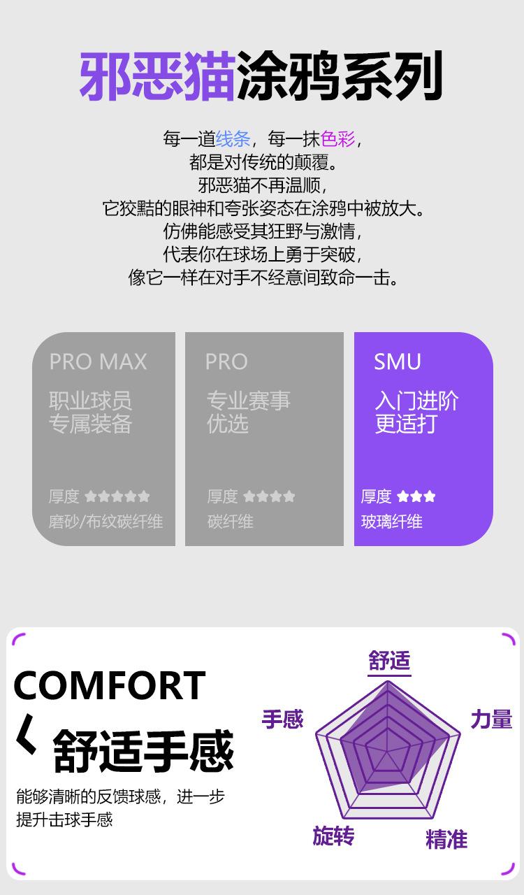 Fiberglass graffiti cat [double racket + storage bag + 4 training balls]
