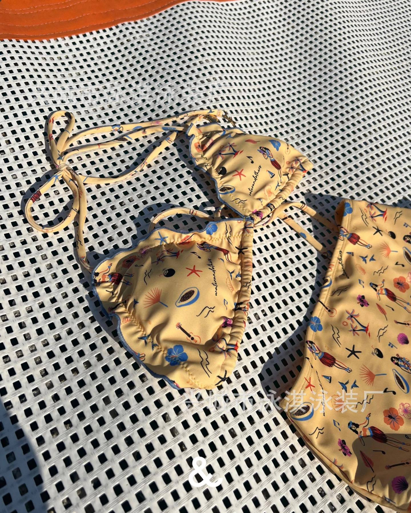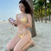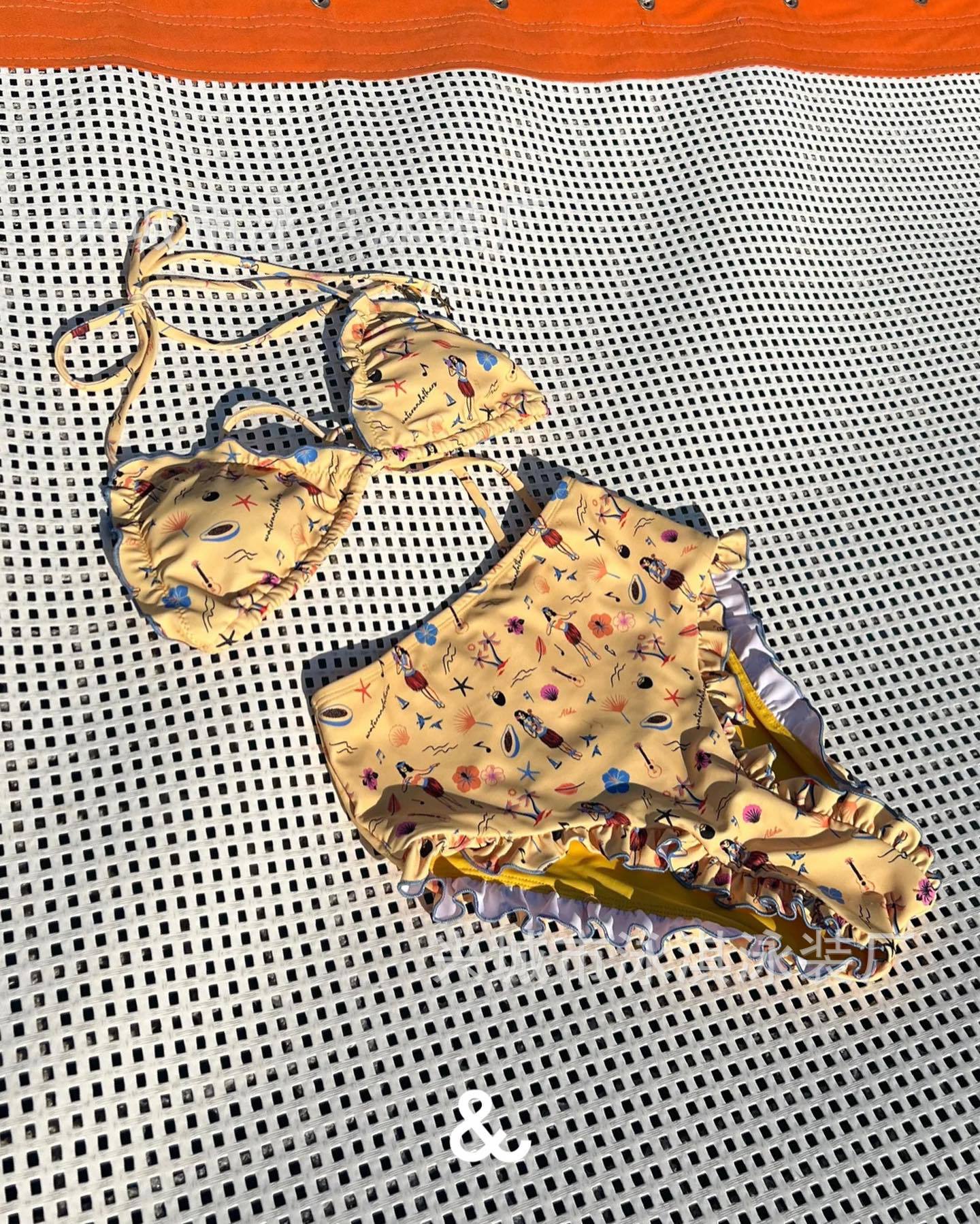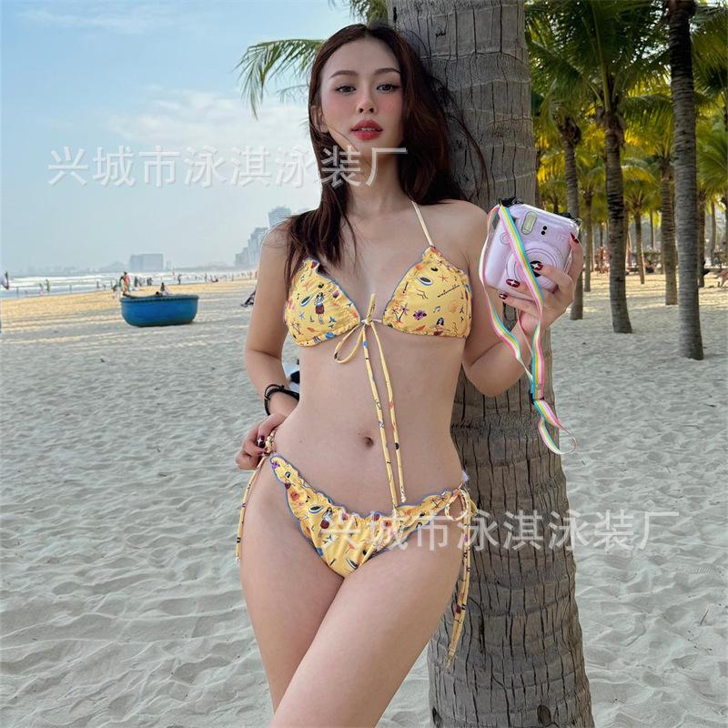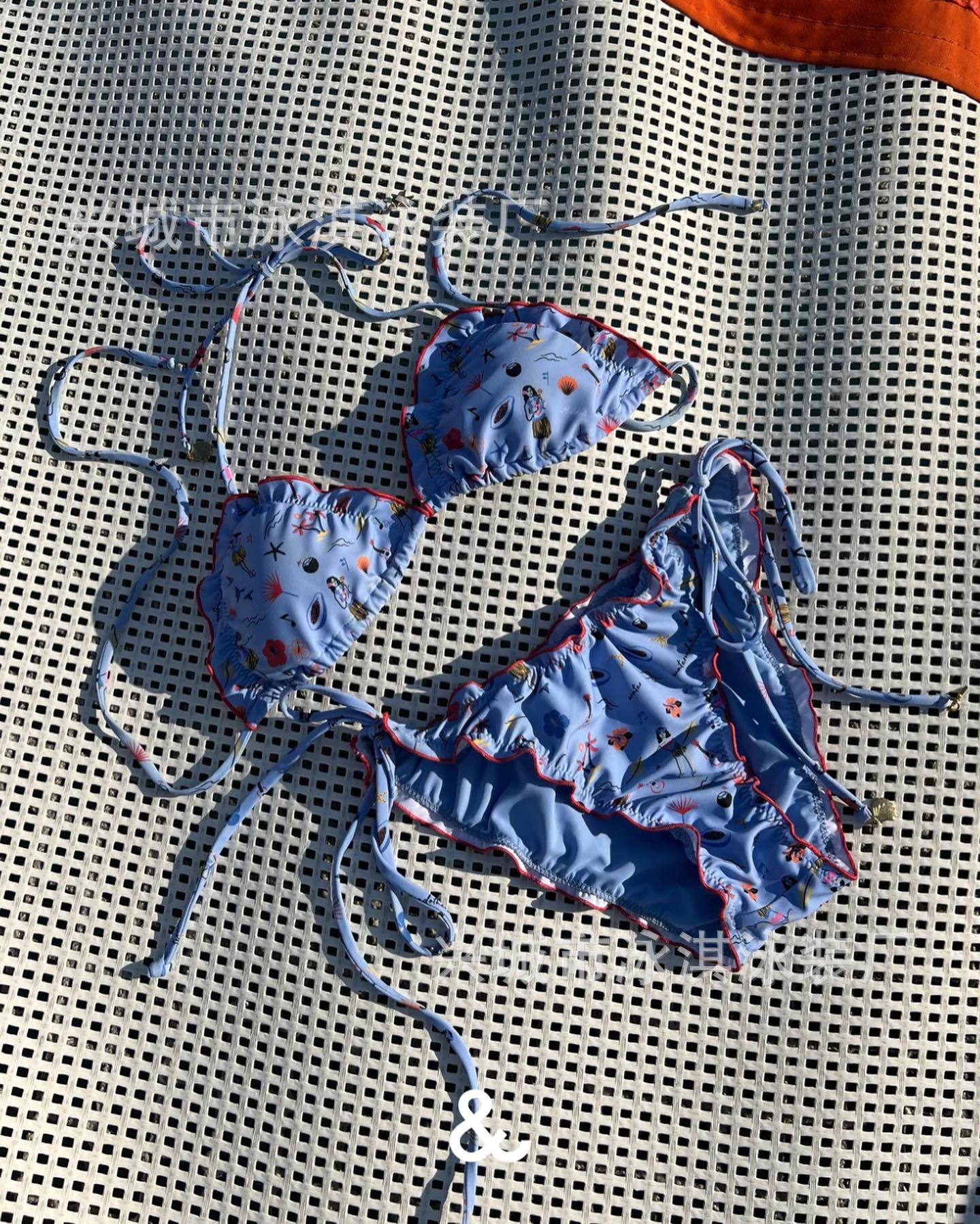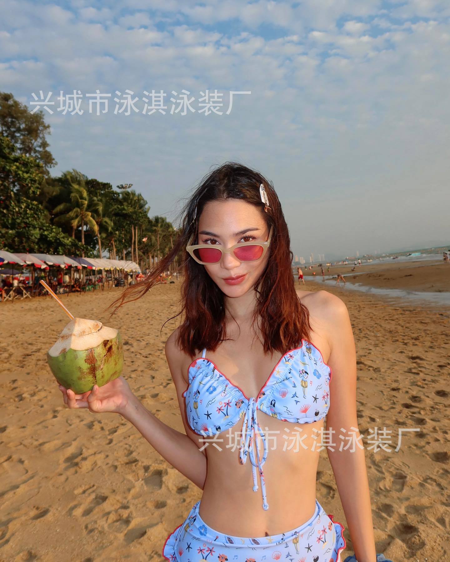 Lindo bikini de tres puntos con borde volador, sencillo y sexy, estilo Spice Girl, traje de baño dividido, traje de baño para mujer