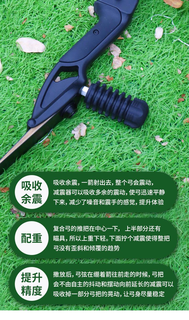 Arco y flecha de fábrica con amortiguador de goma corto, polea compuesta negra, cuerpo del arco, amortiguador de tiro recto, arco recurvo universal