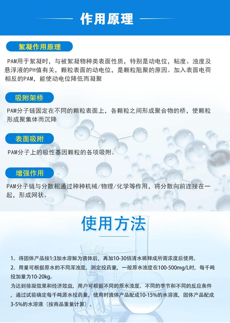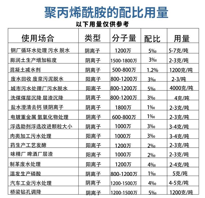 Agente de tratamiento de aguas residuales, precipitante, floculante, aumento del anión catiónico de poliacrilamida PAM, lavado de carbón, lavado de arena